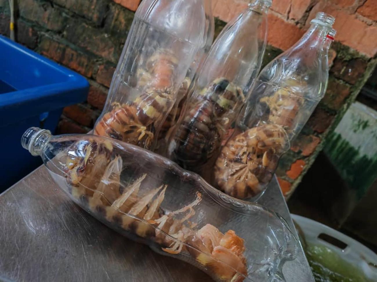 The fish in the plastic container at the reception was asking for clean water and a new tank.