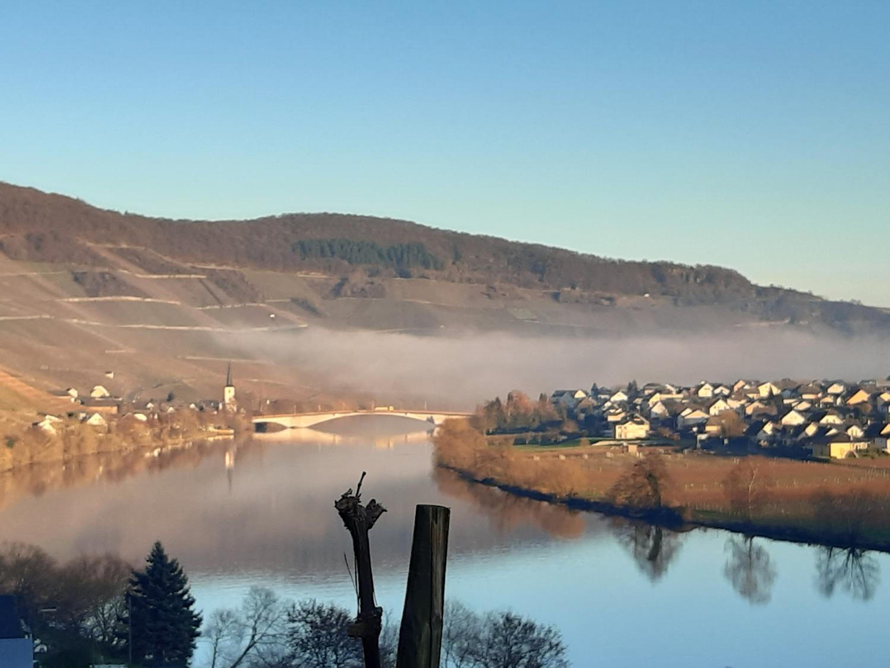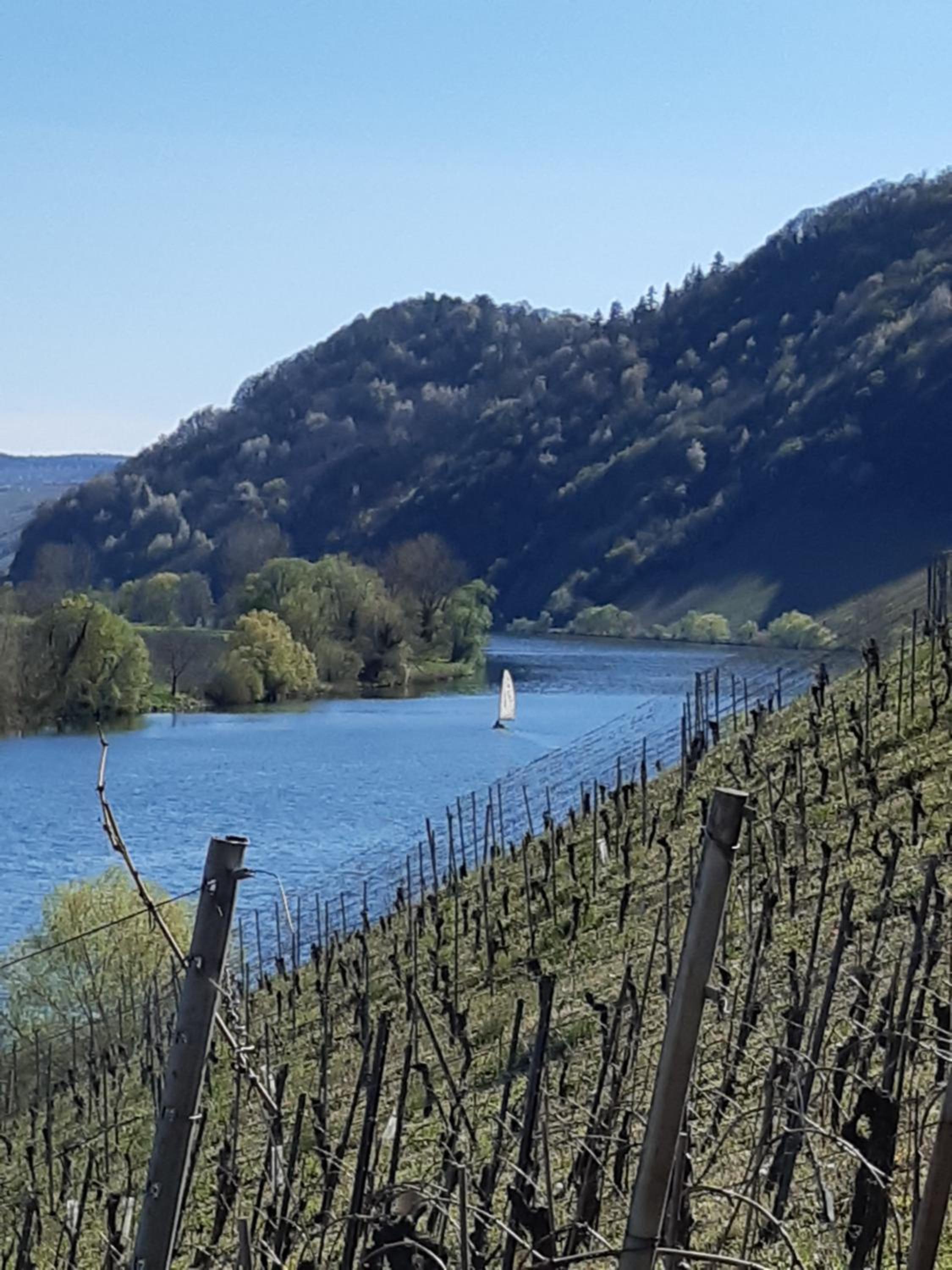 Die Lage sehr schön an der Mosel. Die schöne grosseTerrasse zum Kaffe und Kuchen herrlich