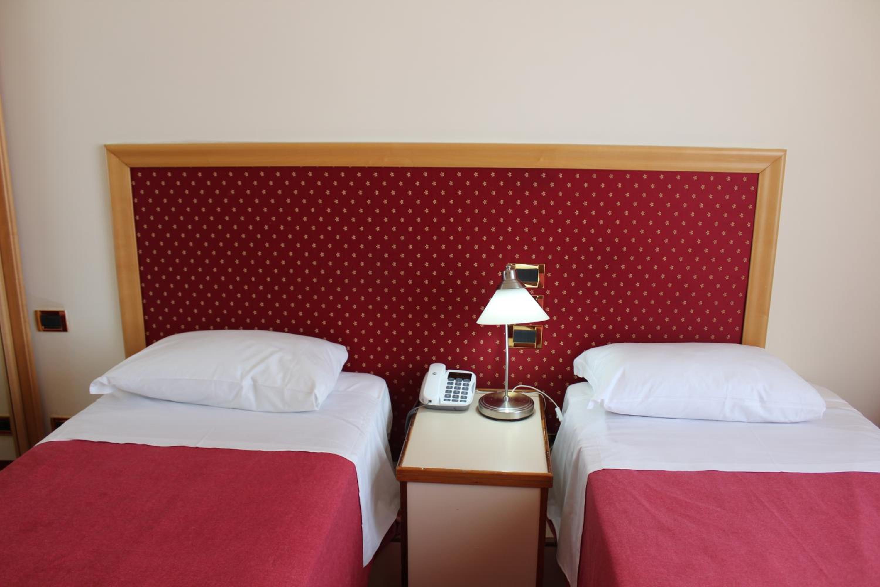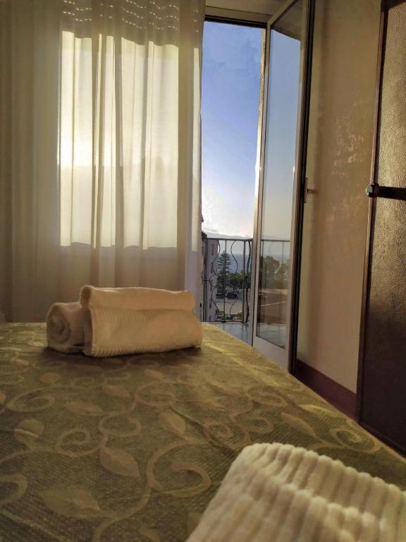 Arredamento anni '60 ma camera comoda, nel ns. caso con vista mare di fronte alla costa siciliana, si scorgeva in lontananza anche l'Etna.