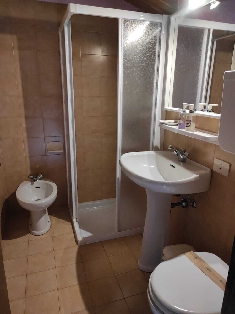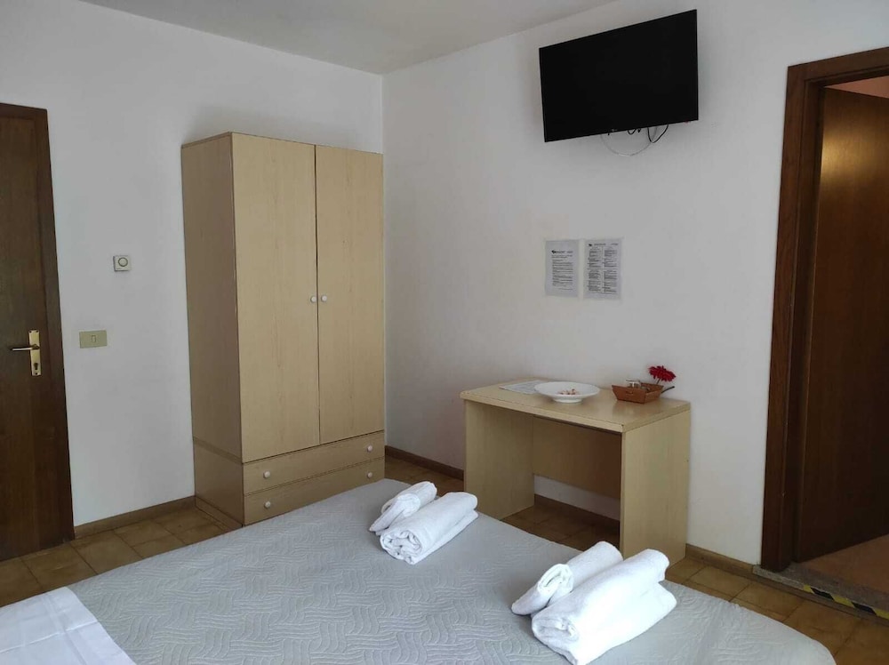Abbiamo passato una notte terribile in questo hotel, l’unica nota positiva è che ci hanno aspettato per il check-in alle 2230 trenta minuti dopo il massimo orario per il resto tutto male : siamo stati accolti da un ragazzo indiano che non parlava italiano in una reception/ristokebab e accompagnati in una camera caldissima priva di ventilatori e zanzariere, mio figlio per il caldo ha dovuto dormire su un materasso posato a terra: il piano alto del letto a castello era troppo caldo, il bagno privo di luci e assenza totale di corrente elettrica, piatto doccia sporco (al tatto visibilità fioca ci è stata fornita una lampada portatile a pile tipo poldina per poter vedere in bagno ); nella notte le porte di accesso dell’albergo vengono chiuse a chiave dall’esterno e c’è una porta di uscita notturna che conduce in un giardino scuro e sporco per rientrare / uscire (anch’esso chiuso a chiave lasciate in dotazione dai gestori insieme a quella della camera). La colazione viene servita sulle trovaglie usate per il ristorante serale quindi sporche !! Bicchieri idem cibo fresco evitato quindi nessun commento in merito.