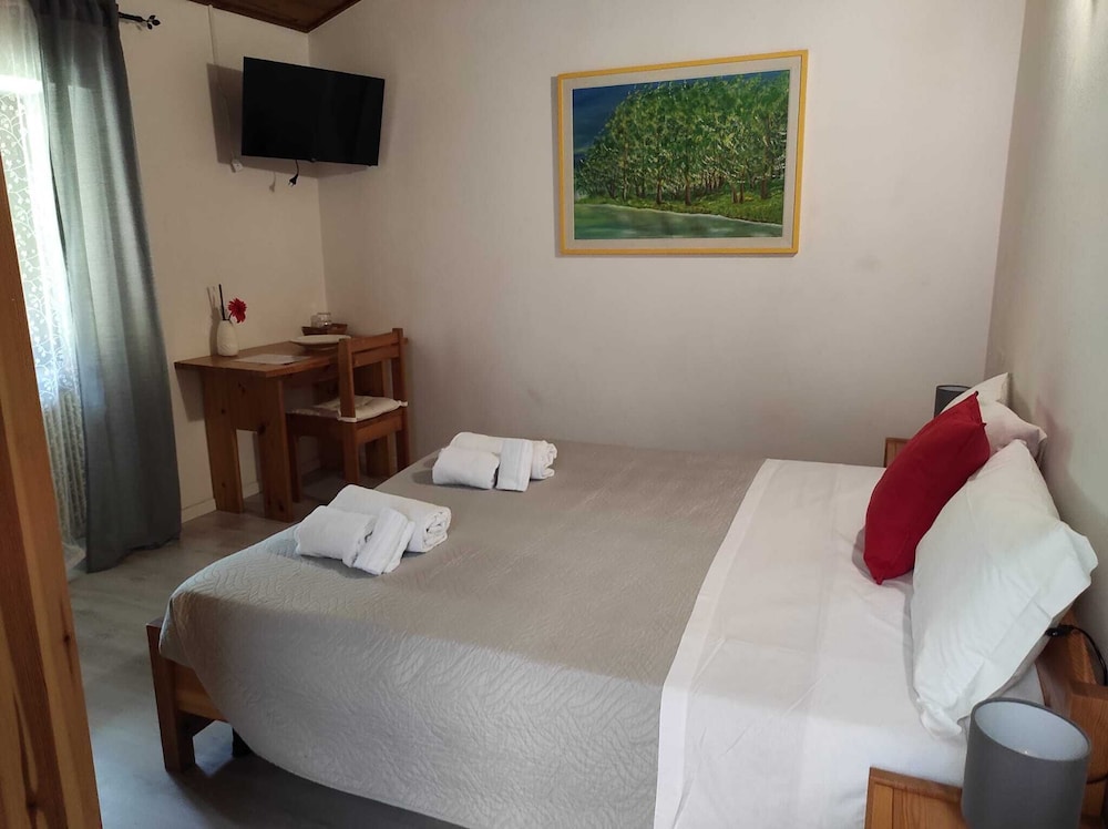 Värden var väldigt tillmötesgående och trevlig, bjöd oss på kall dryck vid incheckningen pga värmen i juli månad. Rummet var som ett vanligt hotellrum, men stor balkong ut mot vägen. Inte en fullt trafikerad väg men under natten kunde man höra bilarna köra förbi då vi sov med öppen balkongdörr pga avsaknad av AC. Dock gav värden oss en stor fläkt. Badrummet har nog inte renoverats på ett tag, men allt fungerade bra. Frukosten var god och det fanns lite allt möjligt att välja mellan. Gratis parkering fanns direkt utanför (trångt om man har större bil) alternativt fanns ett par gratis parkeringsplatser på sidan om hotellet.