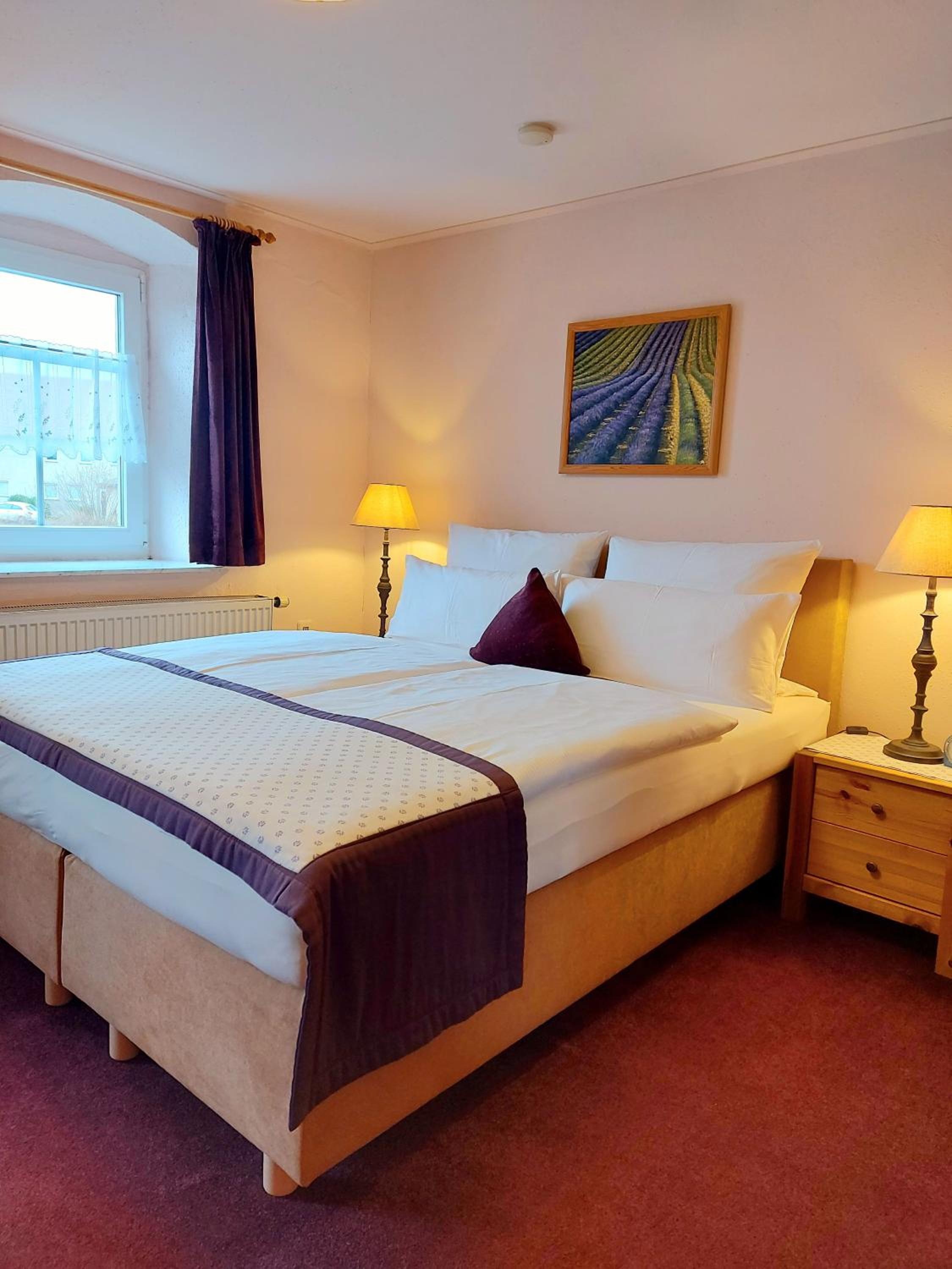 Kostenloser Parkplatz vorhanden, Frühstück wird angeboten, Restaurant vorhanden, das Essen war auch gut. Das Bett sehr bequem.