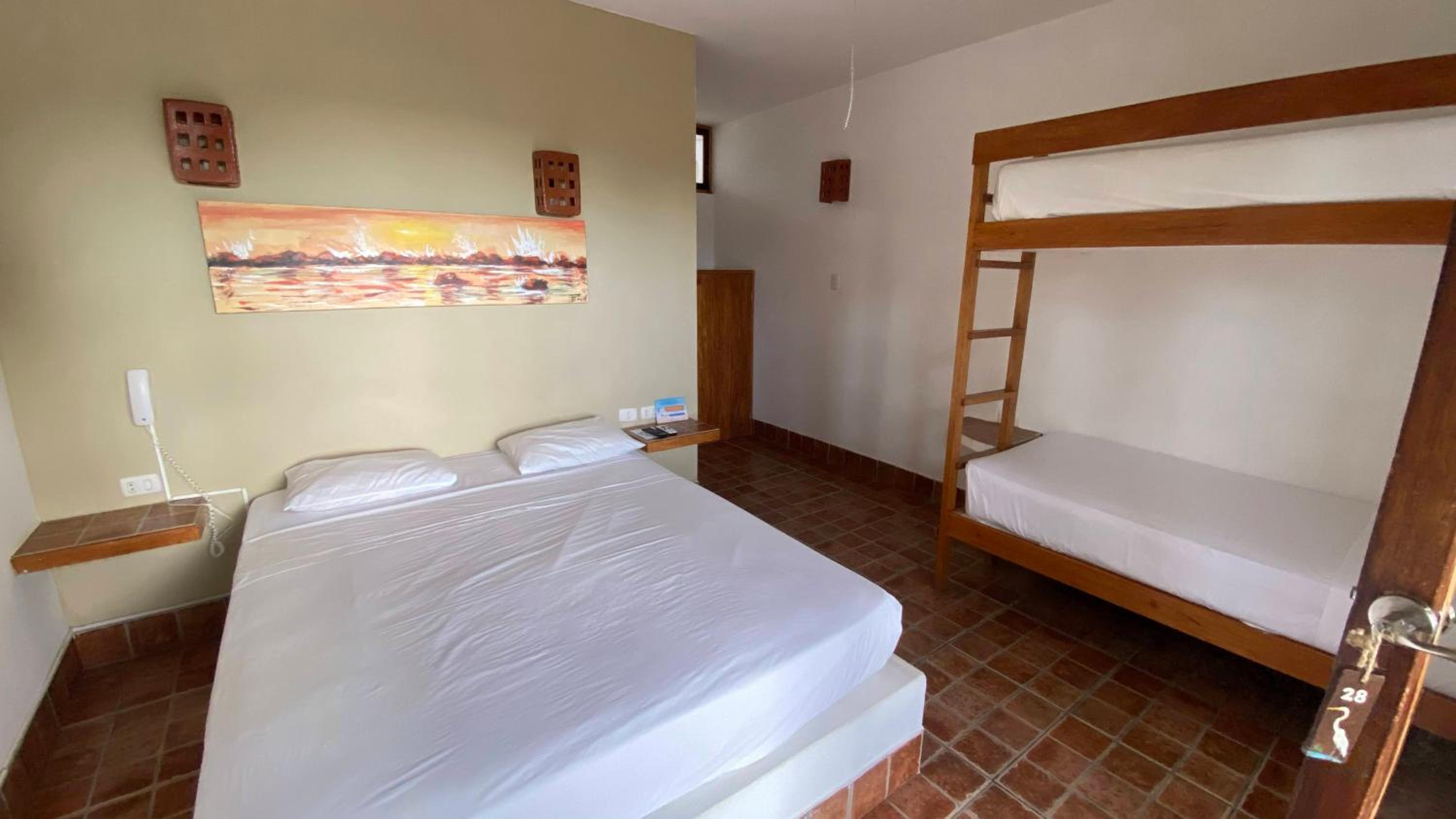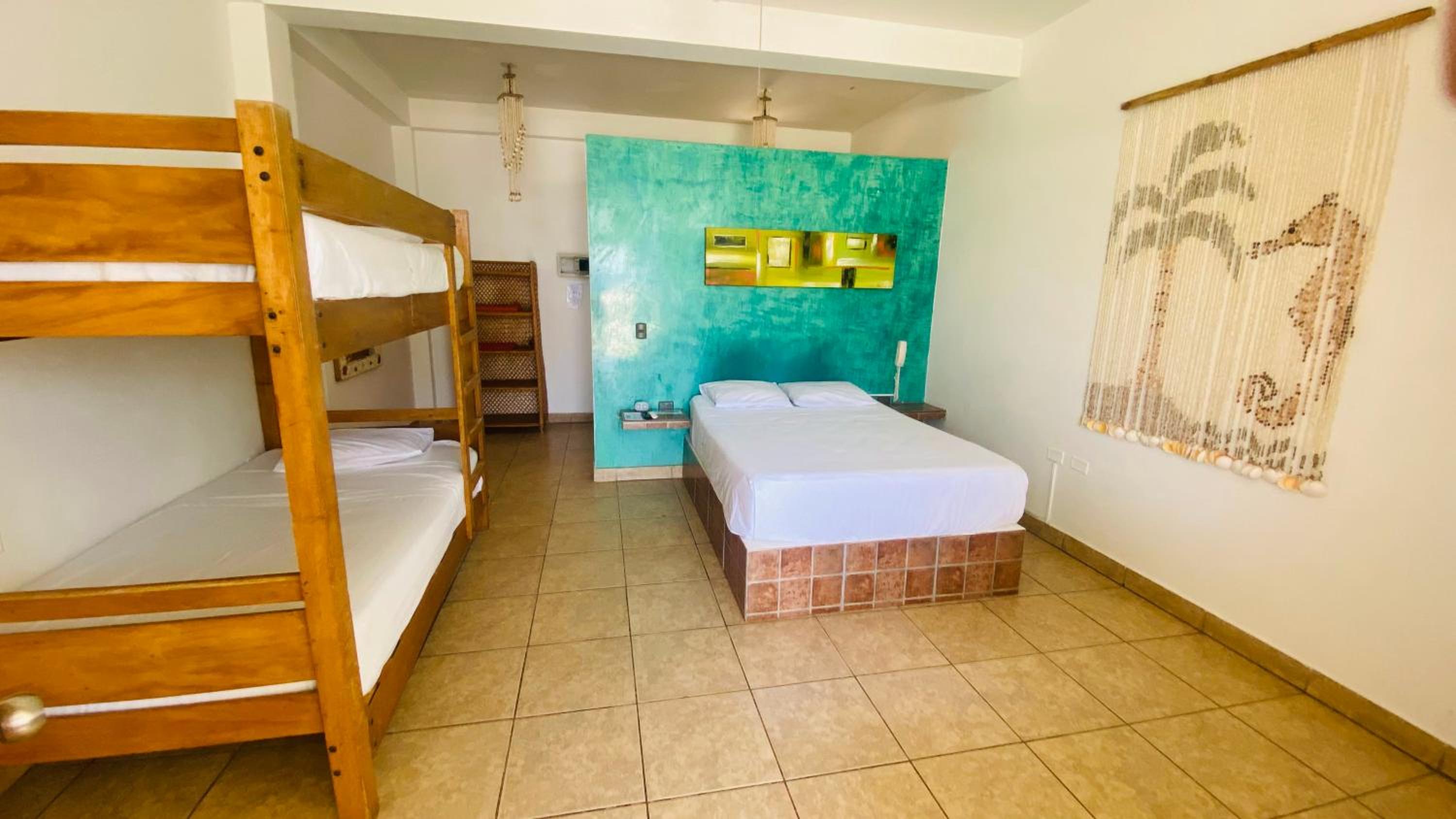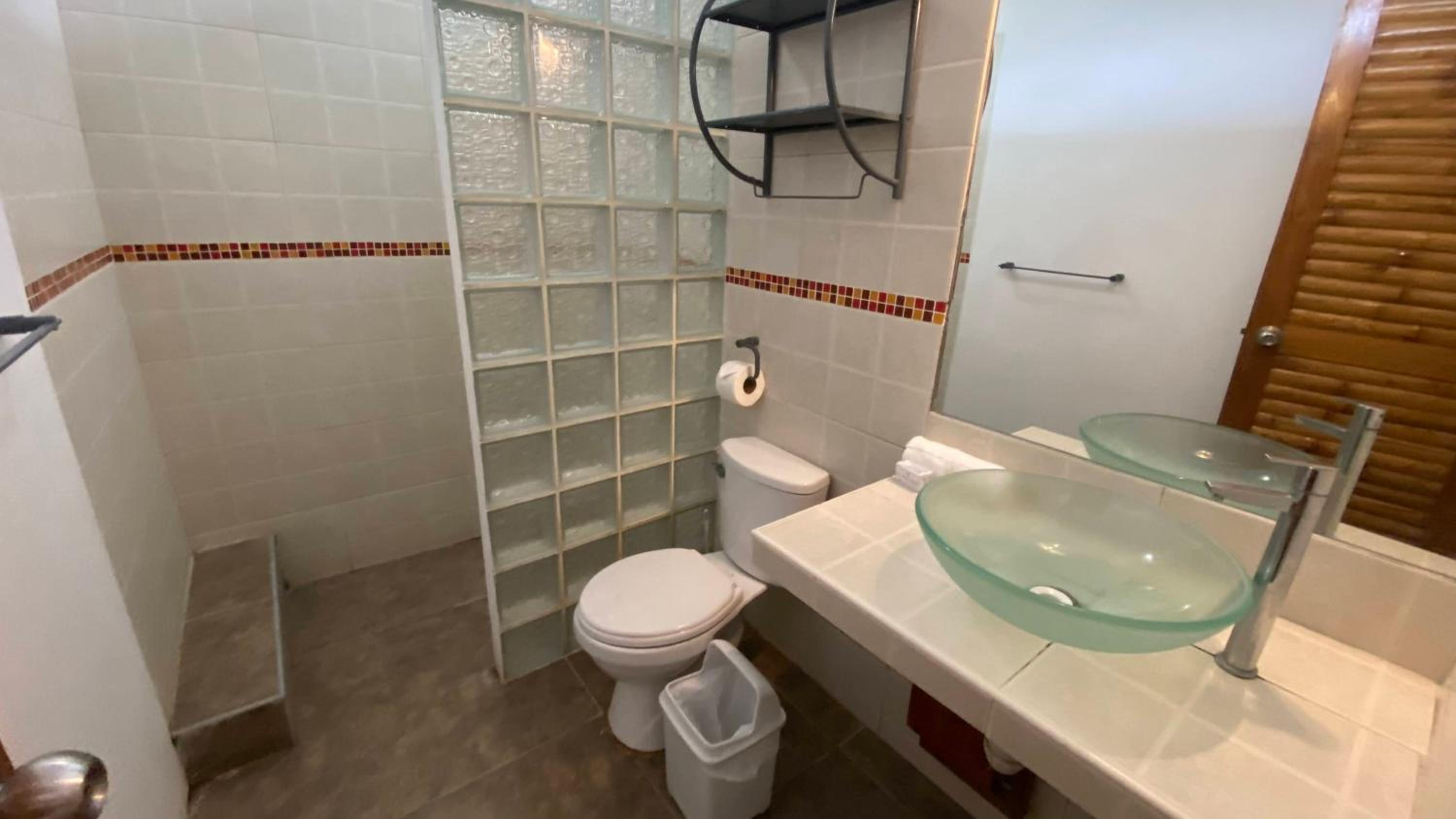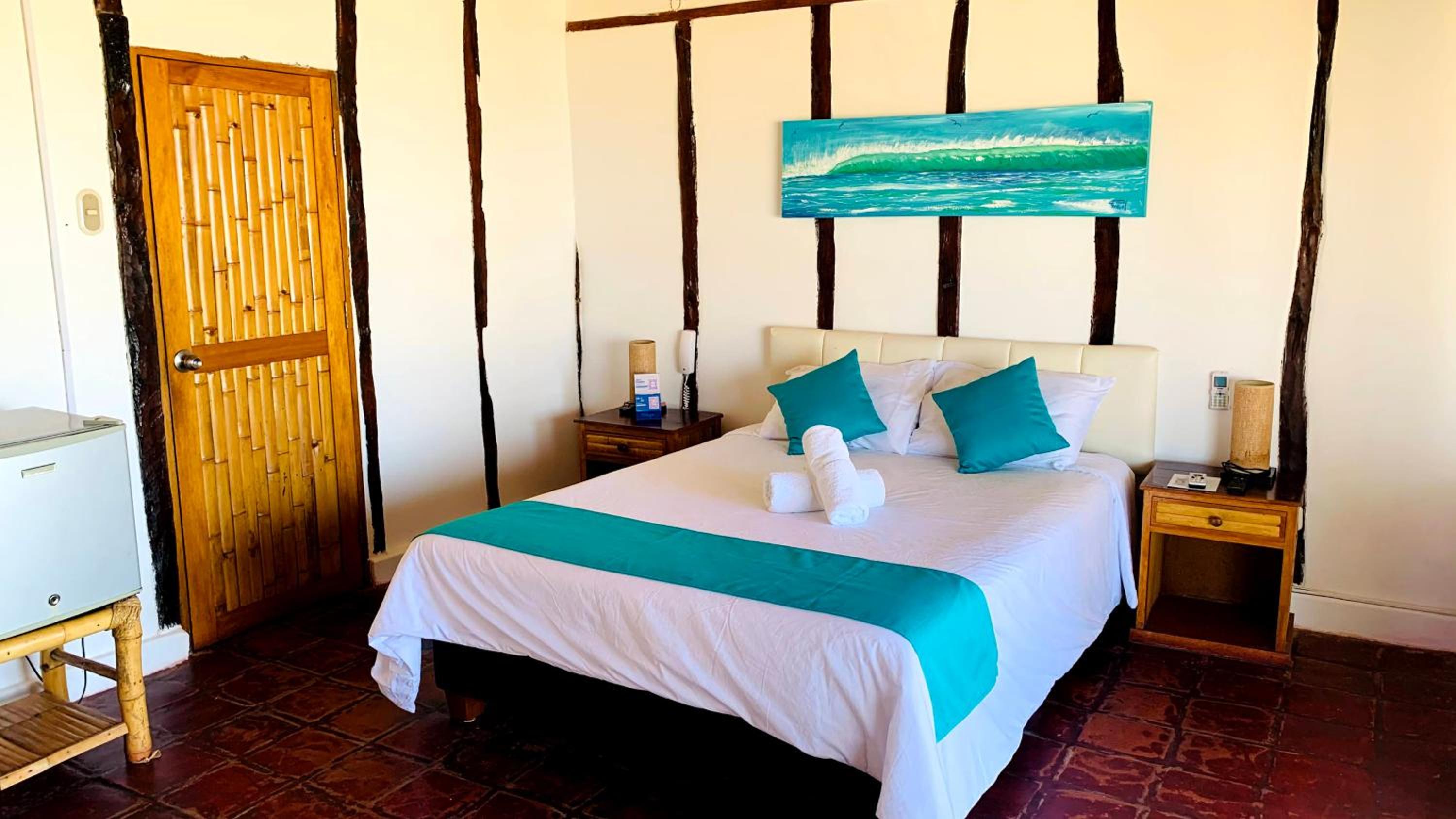 El dormitorio es muy básico en relación al precio, habitación matrimonial con cama 2 plazas, colchón deformado por el uso, respeto al baño es semi cerrado, las paredes no van hasta el techo, la ducha con cortina de baño de plástico atada con varillas al techo, la regadera tapada por el sarro del agua, tacho de basura sin tapa (pedí que lo cambiaran), son cosas que se pueden mejorar