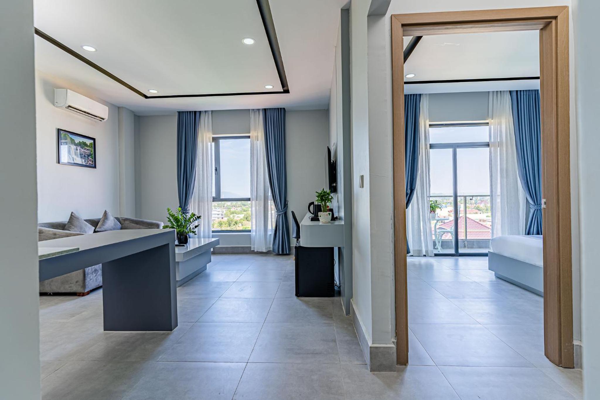 Experience the breathtaking city views and modern comforts at The Square Kampot Hotel. Each room is equipped with air conditioning, a flat-screen TV, and a private bathroom, ensuring a luxurious stay for every guest.
