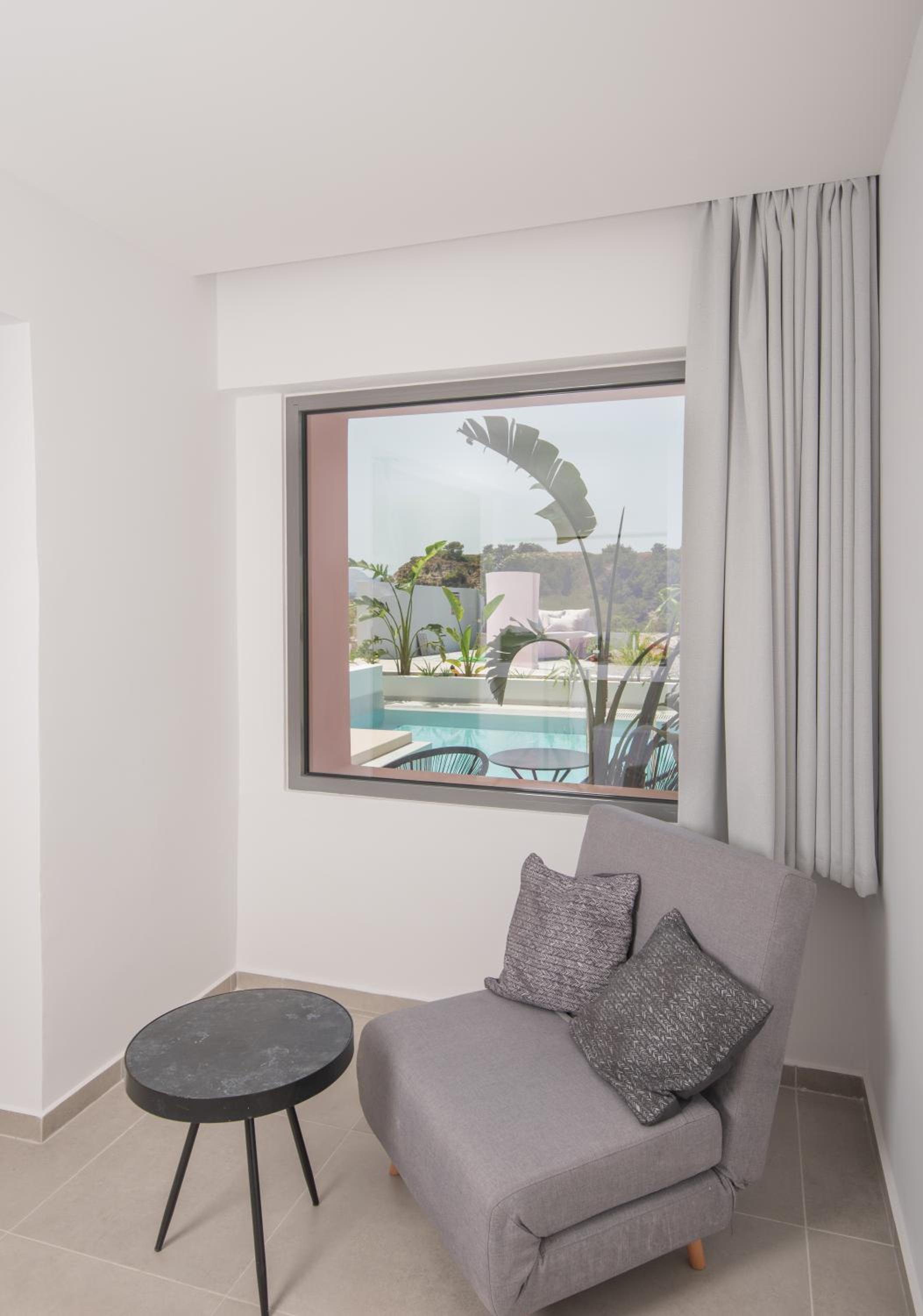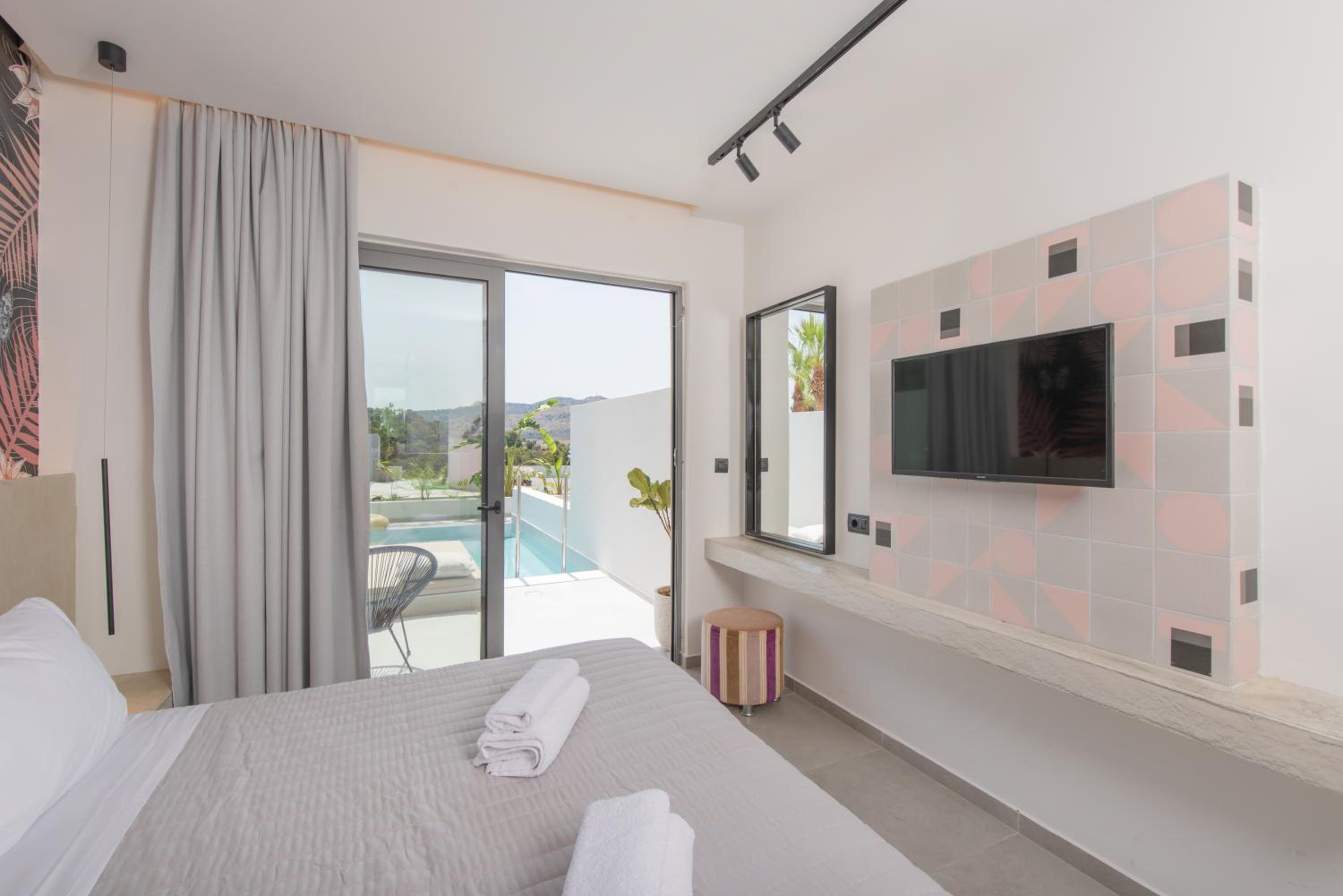 Les infrastructures ainsi que la piscine privée sont très appréciables. La vue imprenable ainsi que la piscine à débordement. C’est un établissement qui est un peu éloigné de faliraki quelques minutes en voiture par contre très proche de la Baie.