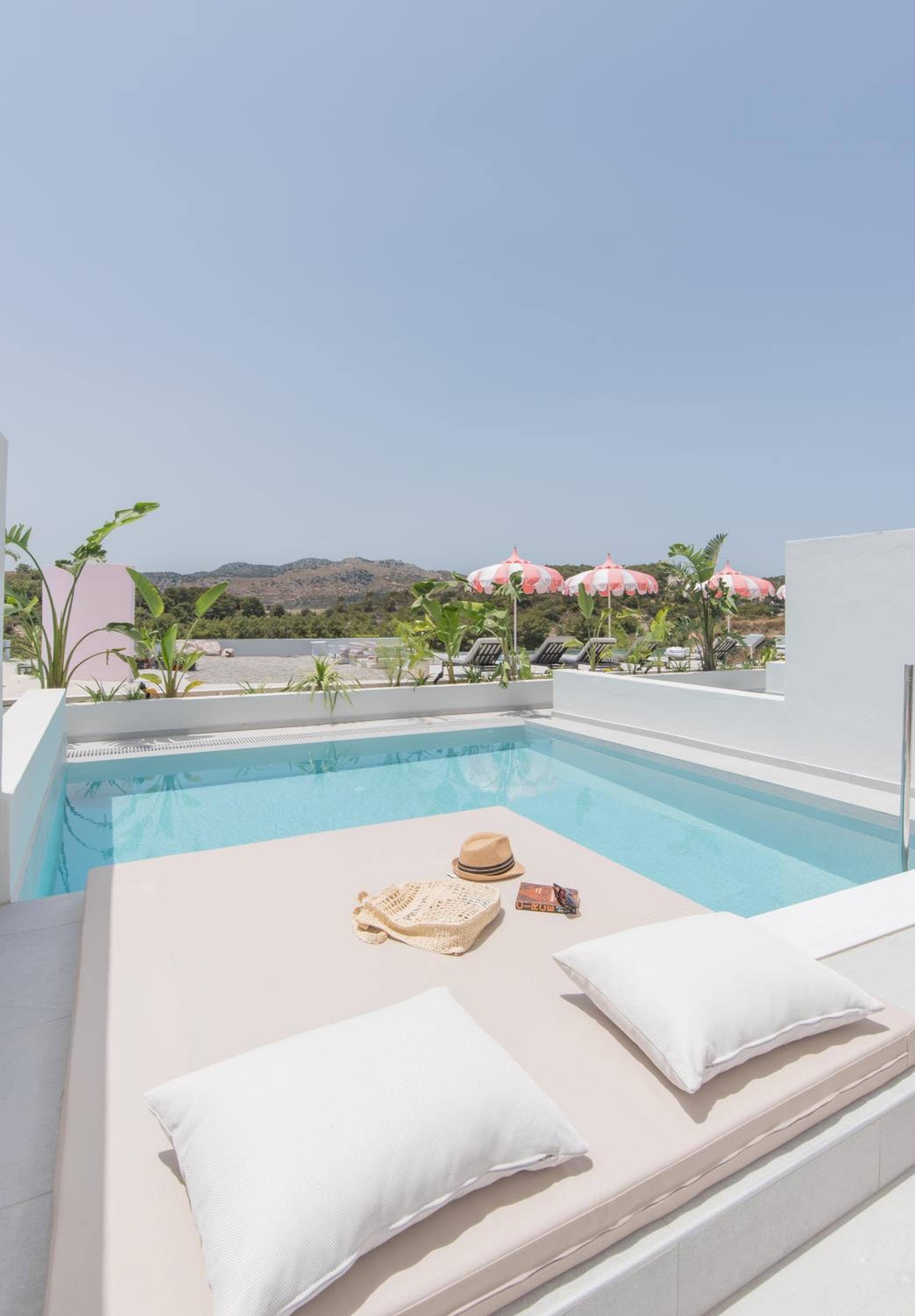 The Palms Concept Hotel, located in beautiful Faliraki, offers a range of luxurious amenities for guests to enjoy, including a seasonal outdoor pool, hot tub, and free bikes for exploring the area.