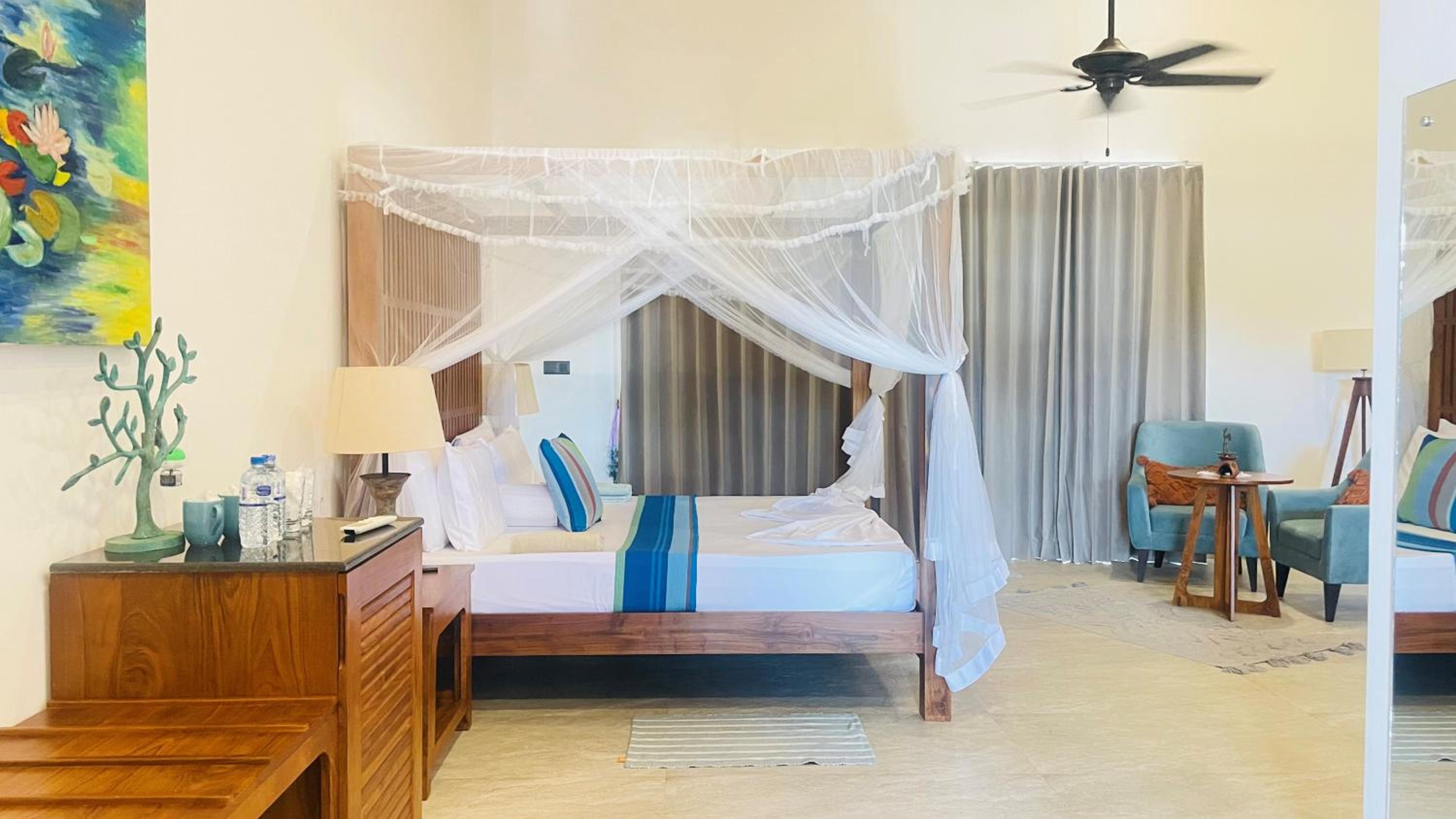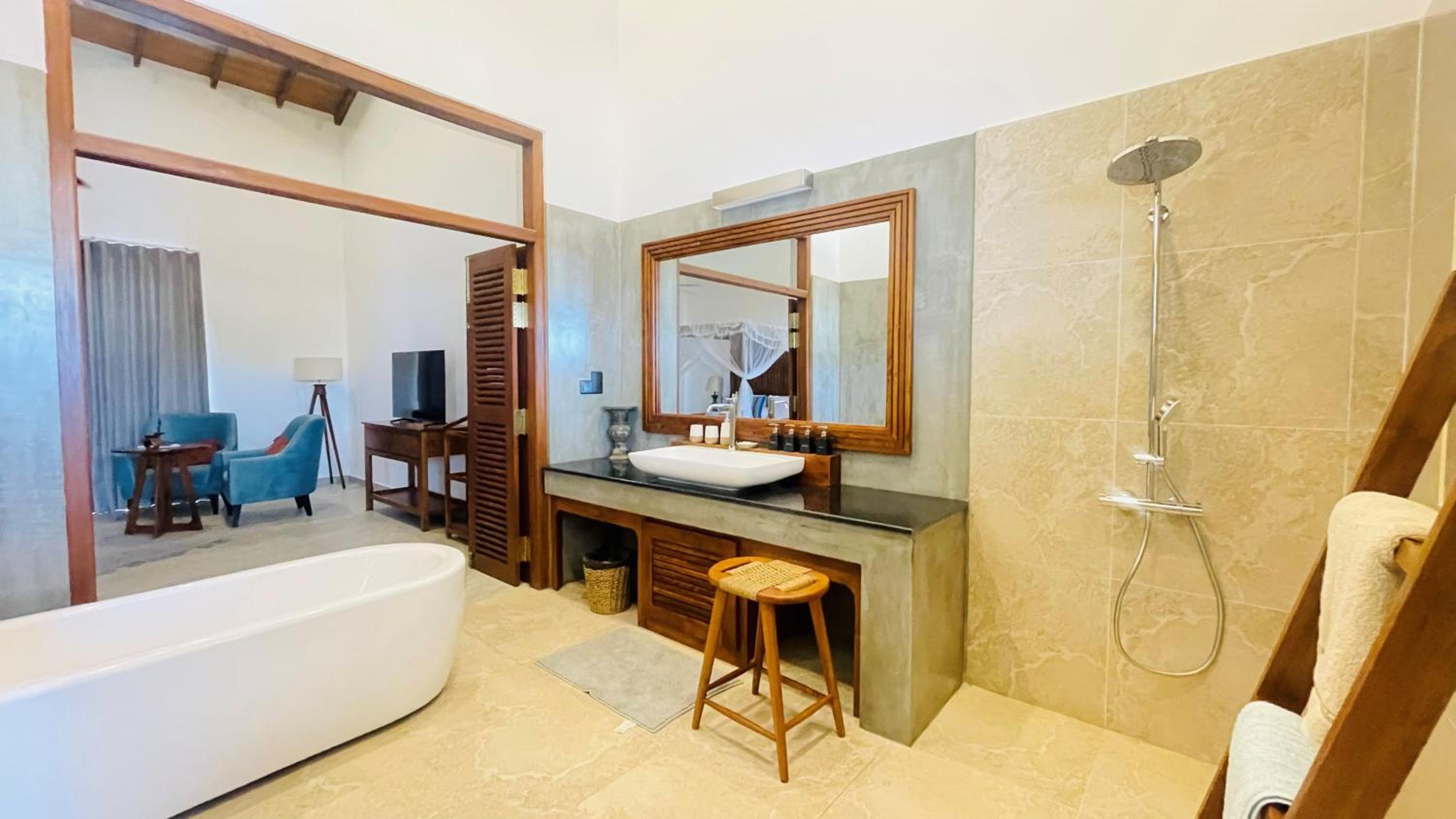 Beautiful comfortable room with a fantastic view. Pool lovely and the beach is stunning and quiet. Great snorkelling and there are restaurants walking distance along the beach. Can easily get a tuk tuk into Hikkaduwa which v cheap. Delicious breakfast and great coffee. Staff were friendly and helpful.