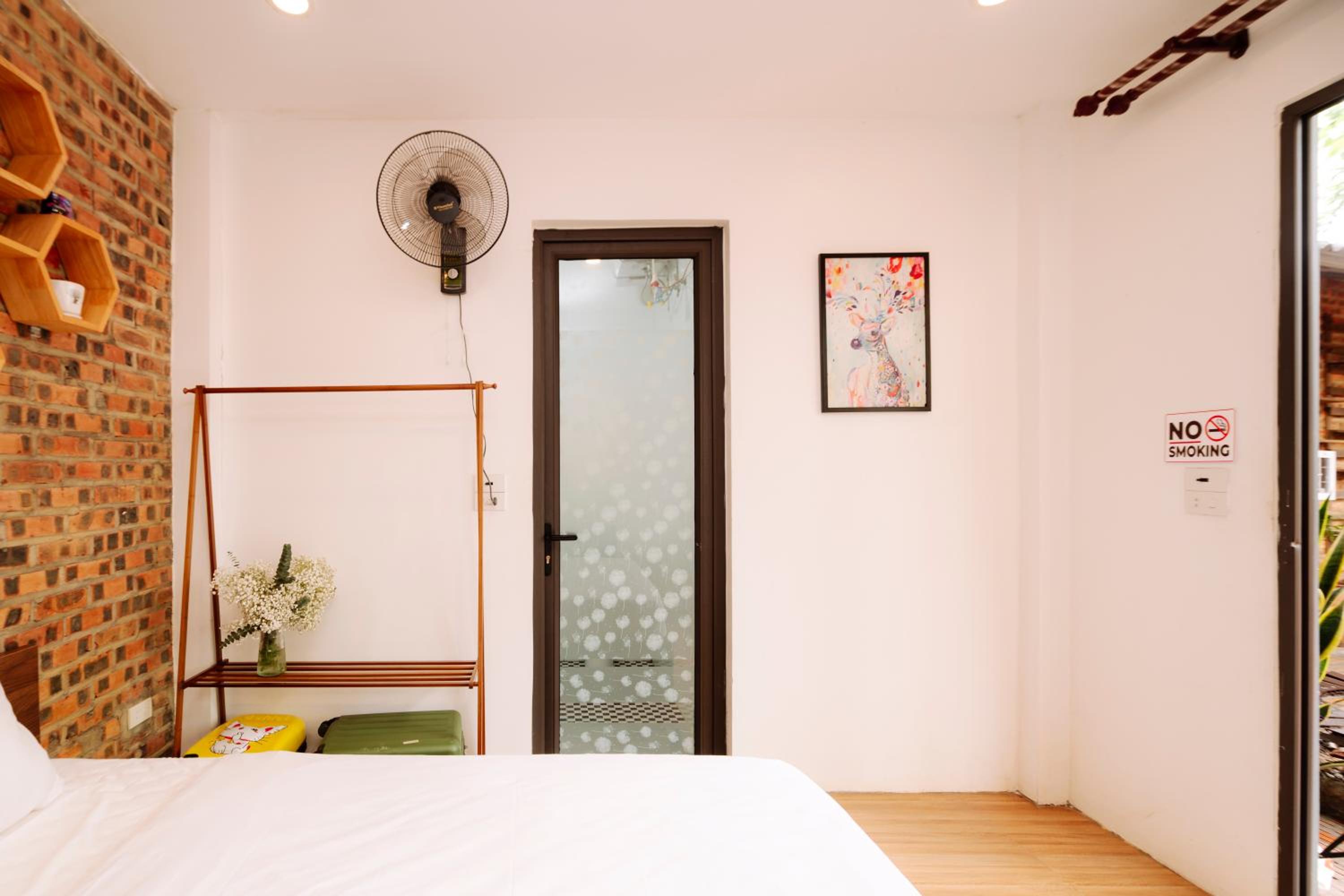 The dorm room is too cramped. Especially considering the guests from the room next door need to go through the room to exit. Bathrooms are outside. The location is a bit far from everything, tho not too far from the bus station at least