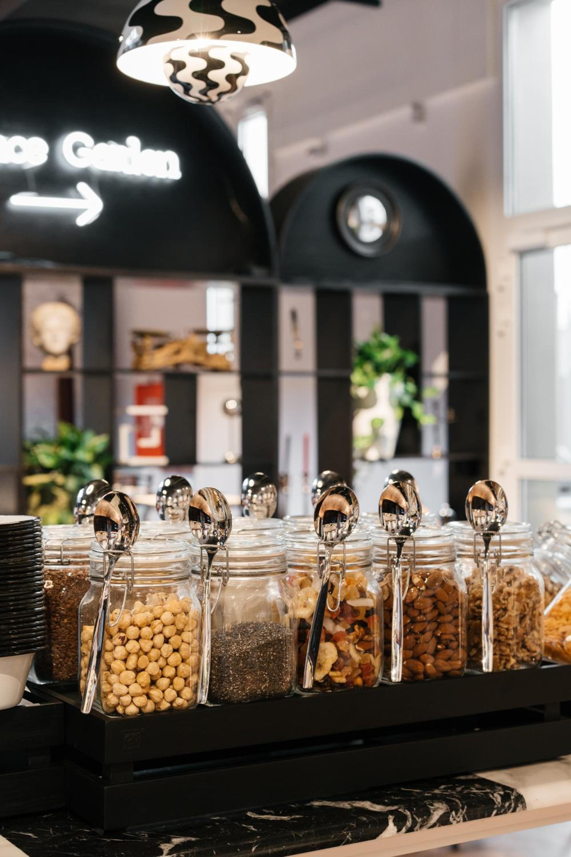 Modern, schöne Einrichtung, sehr gutes Frühstück und leckerer Kaffe. Sehr nettes Personal.