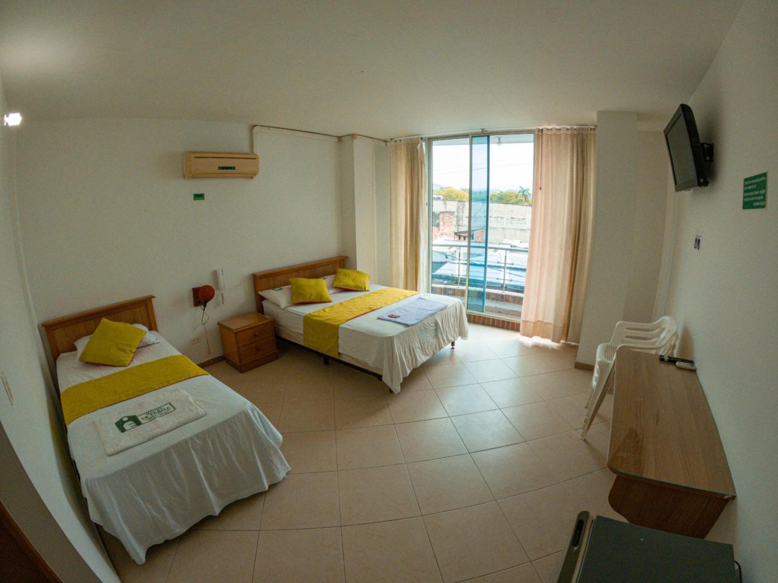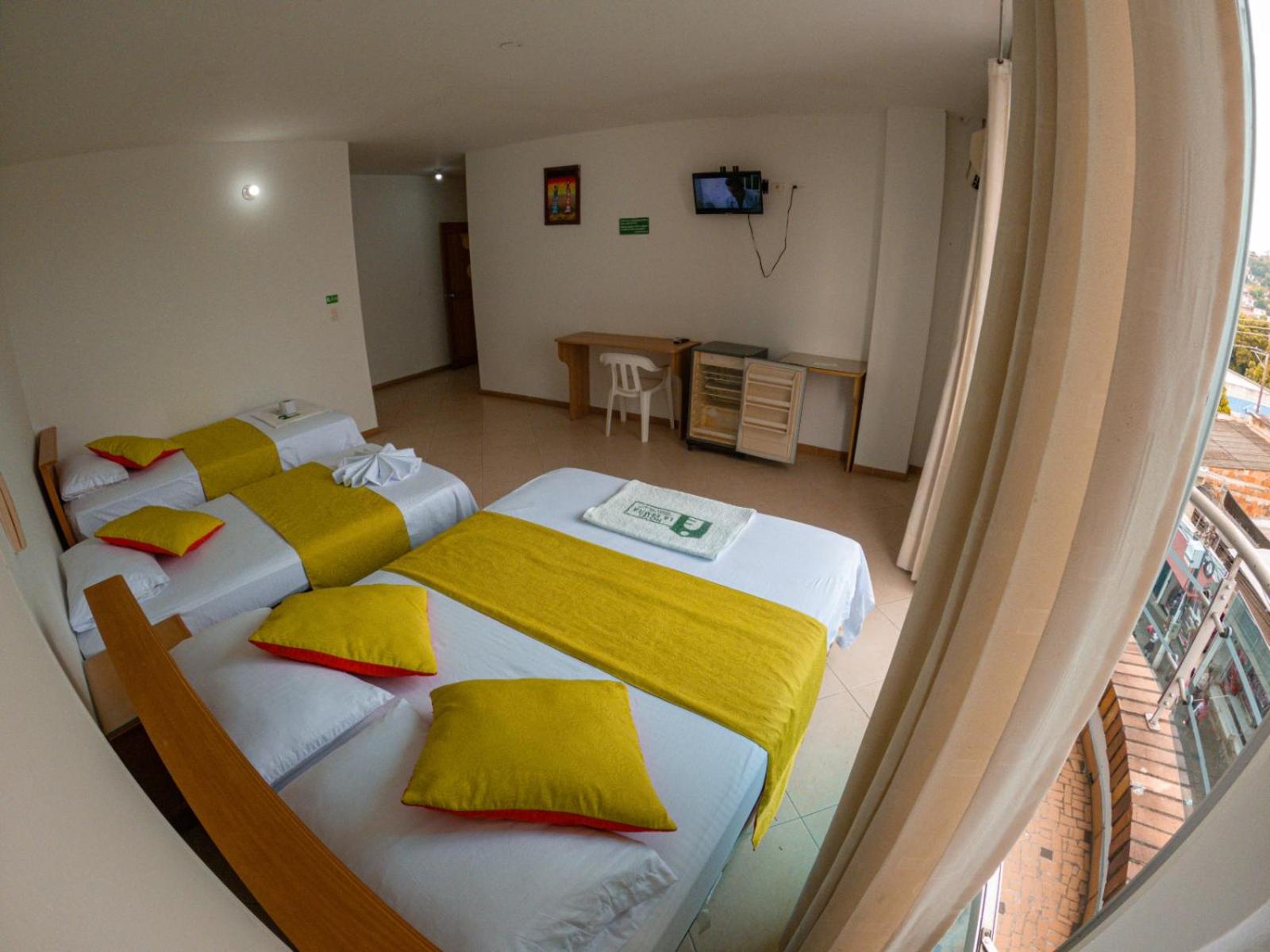 El TV parece que fuera de juguete, el sanitario de la habitación no funcionaba, teníamos que vaciar con un balde, , el ventanal de la habitación (qué estaba malo, no corría) daba justo a la calle y el ruido de la música en la calle era insoportable, definitivamente descansar fue imposible.