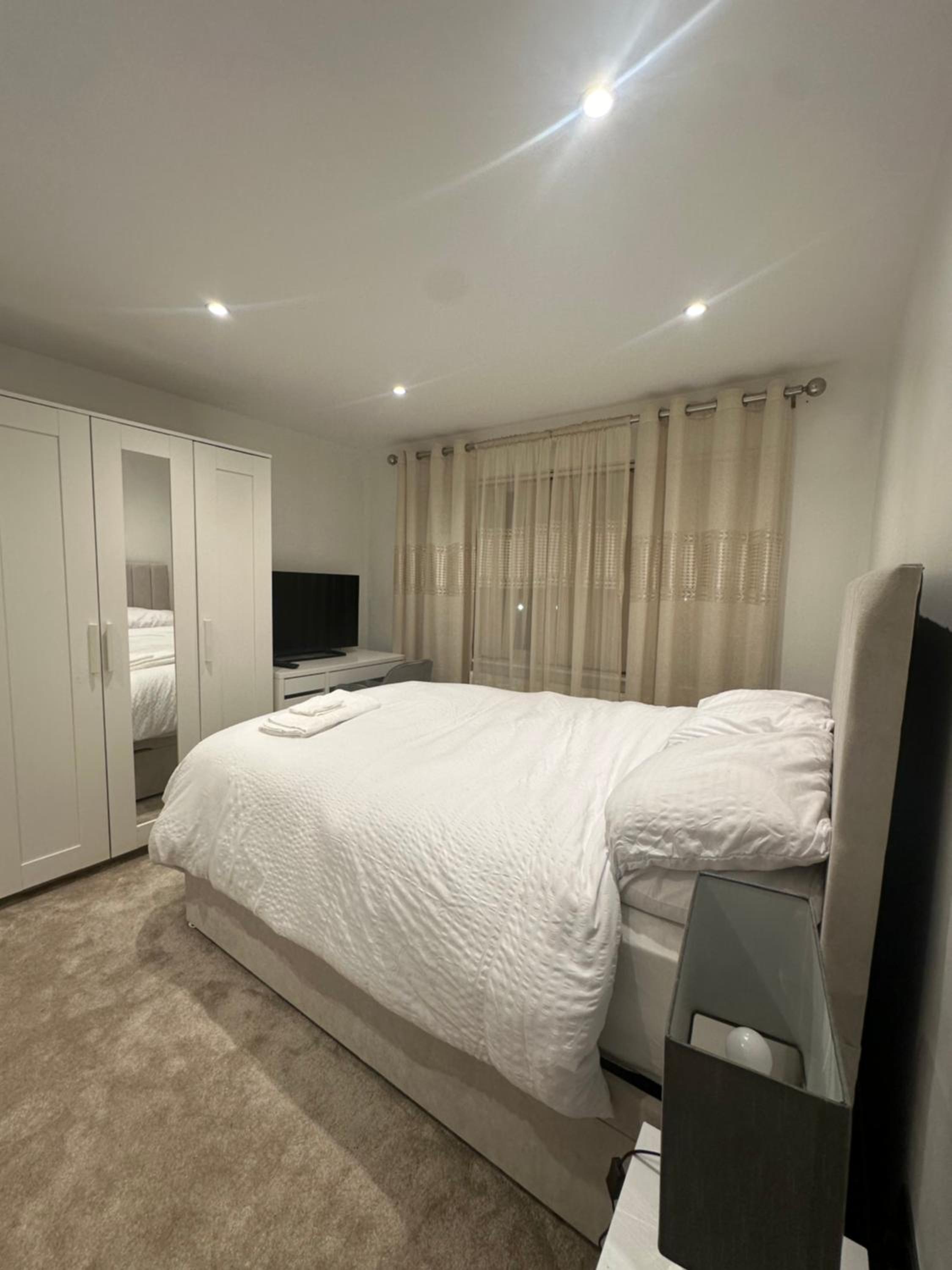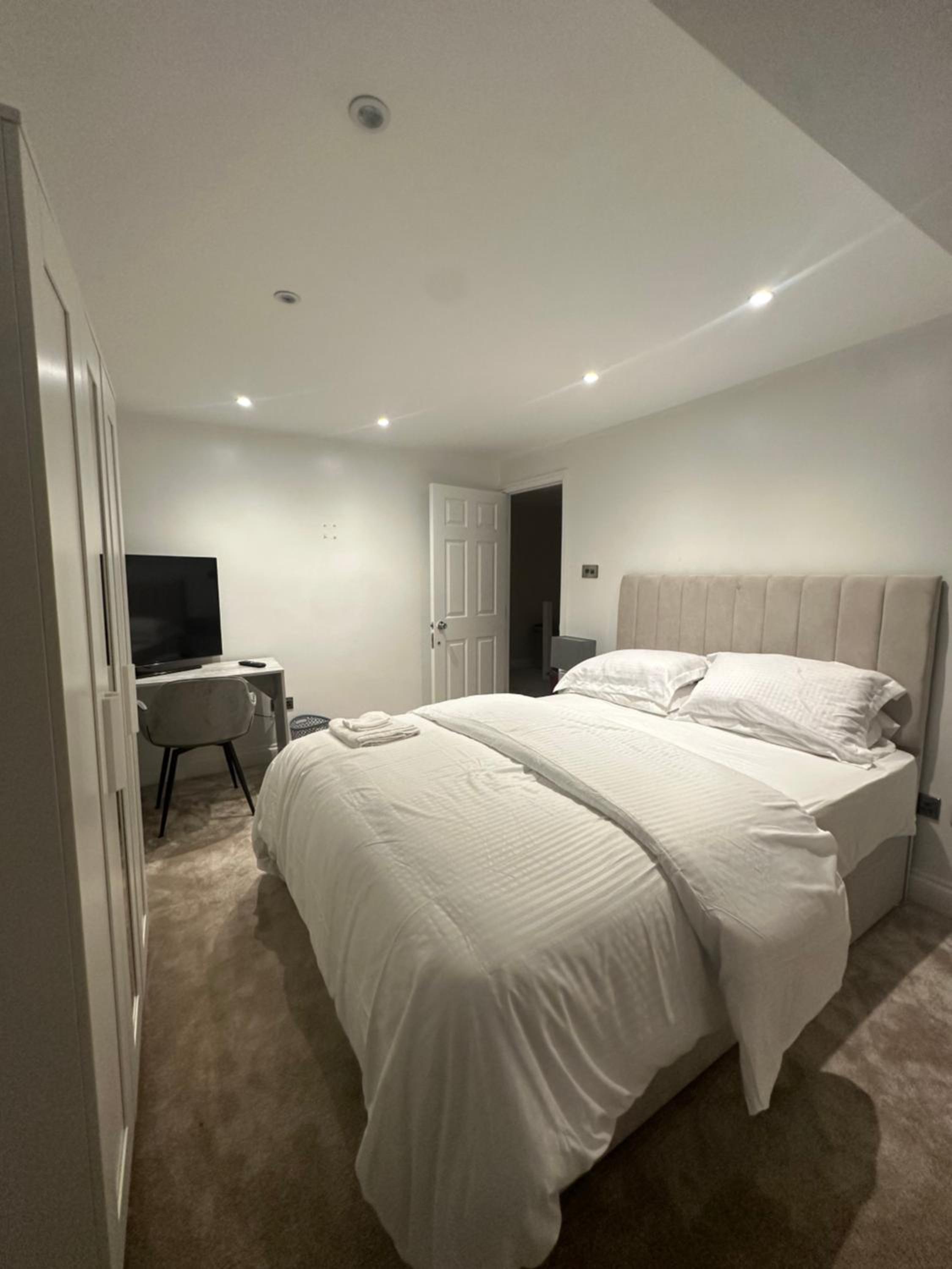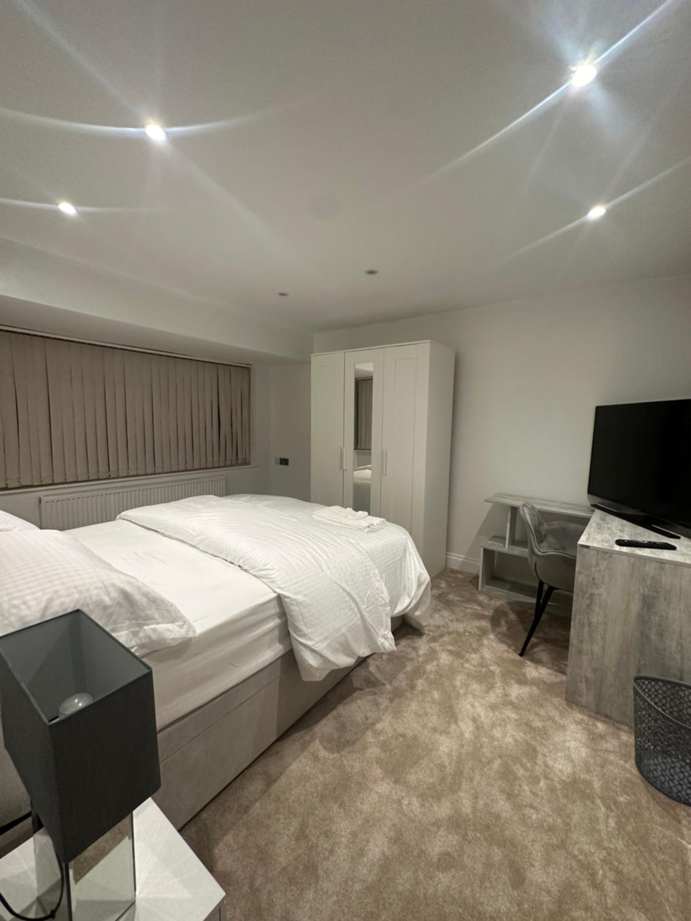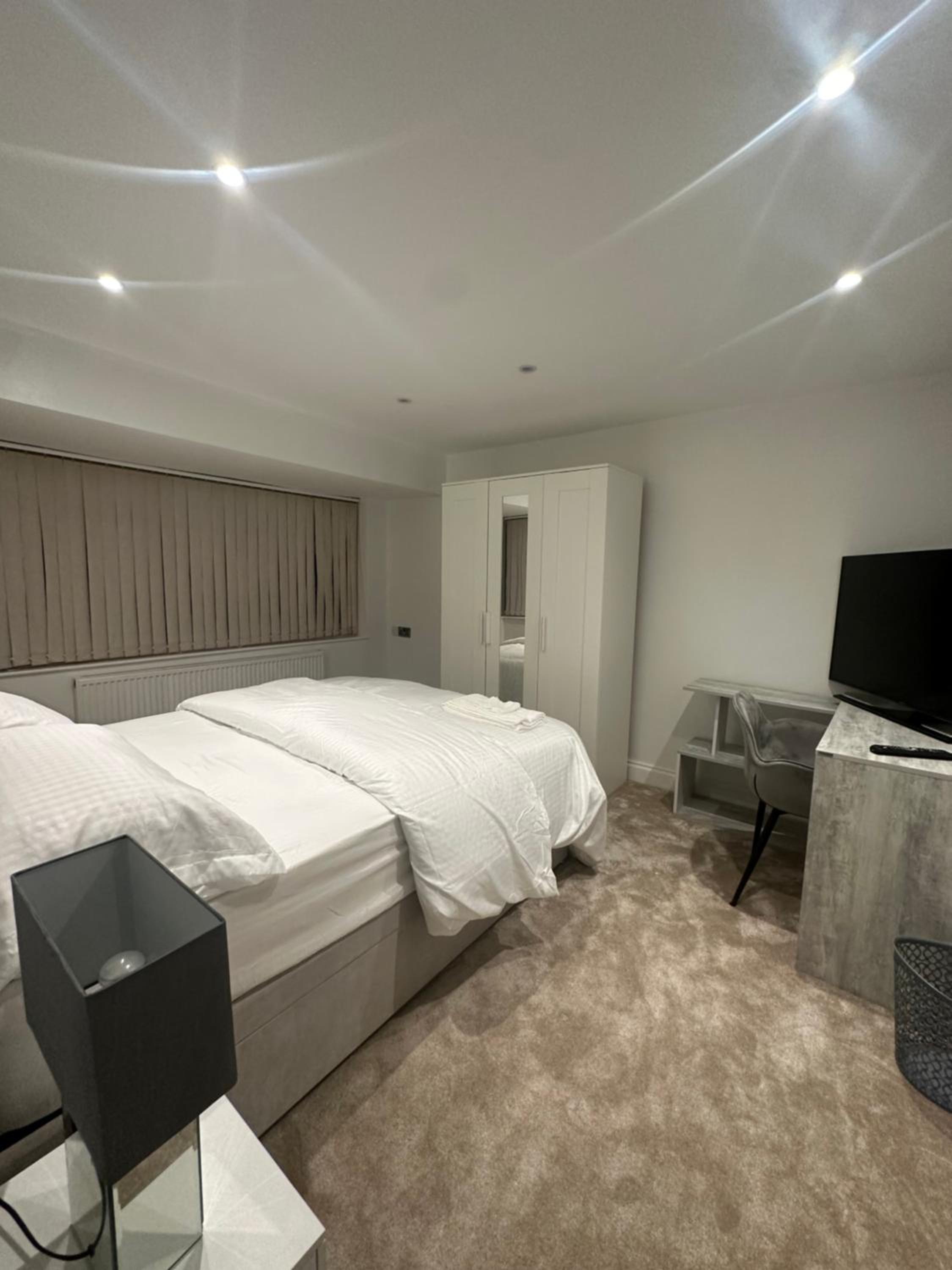 Escape to comfort and tranquility at Modern Room in Cheshunt, offering serene garden views and convenient amenities.