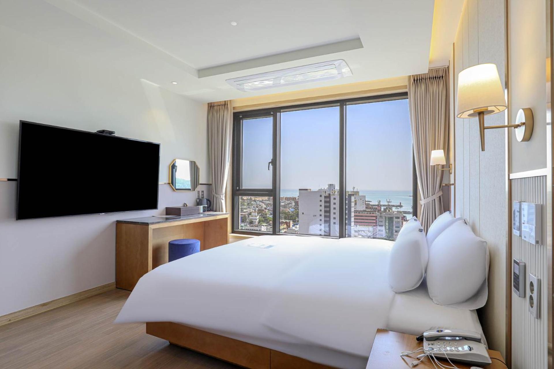 호텔 전망이 너무 좋구 바다가 보여서 좋았습니다 바로 앞에 공원도 있고 호텔 방도 넓고 깨끗하고 침대도 너무 편했습니다 앞으로 부산 가면 해운대 보다 이곳을 이용할 예정입니다 조용하고 편안한 아주 좋은 호텔 이있습니다 아침에 제공되는 식사도 좋았습니다 다만 빵을 먹을때 샐러드가 있음 더 좋았을듯 합니다 야채가 간단히 있으면 아침 빵 식사에 아주 좋을듯 합니다 ^^