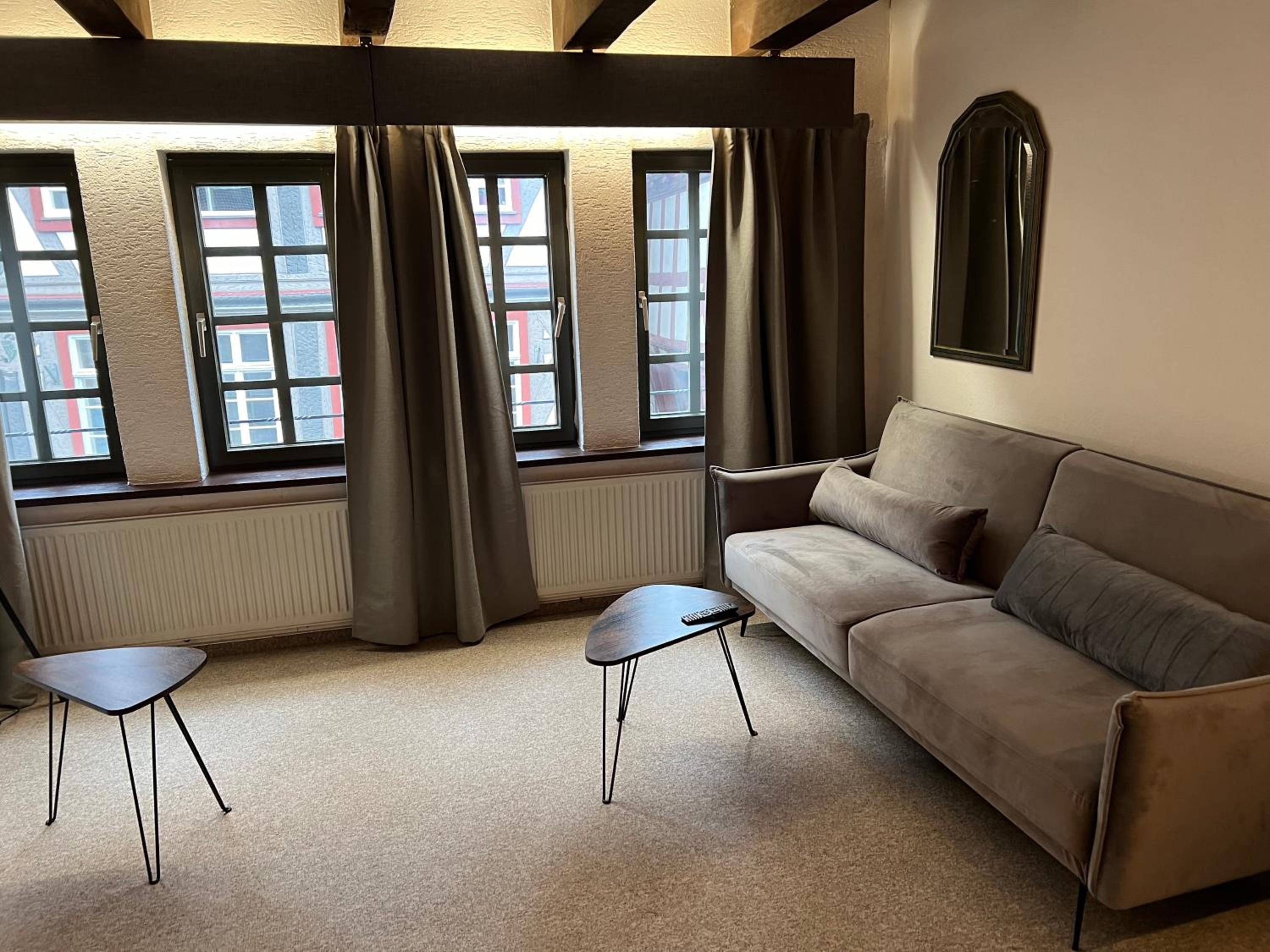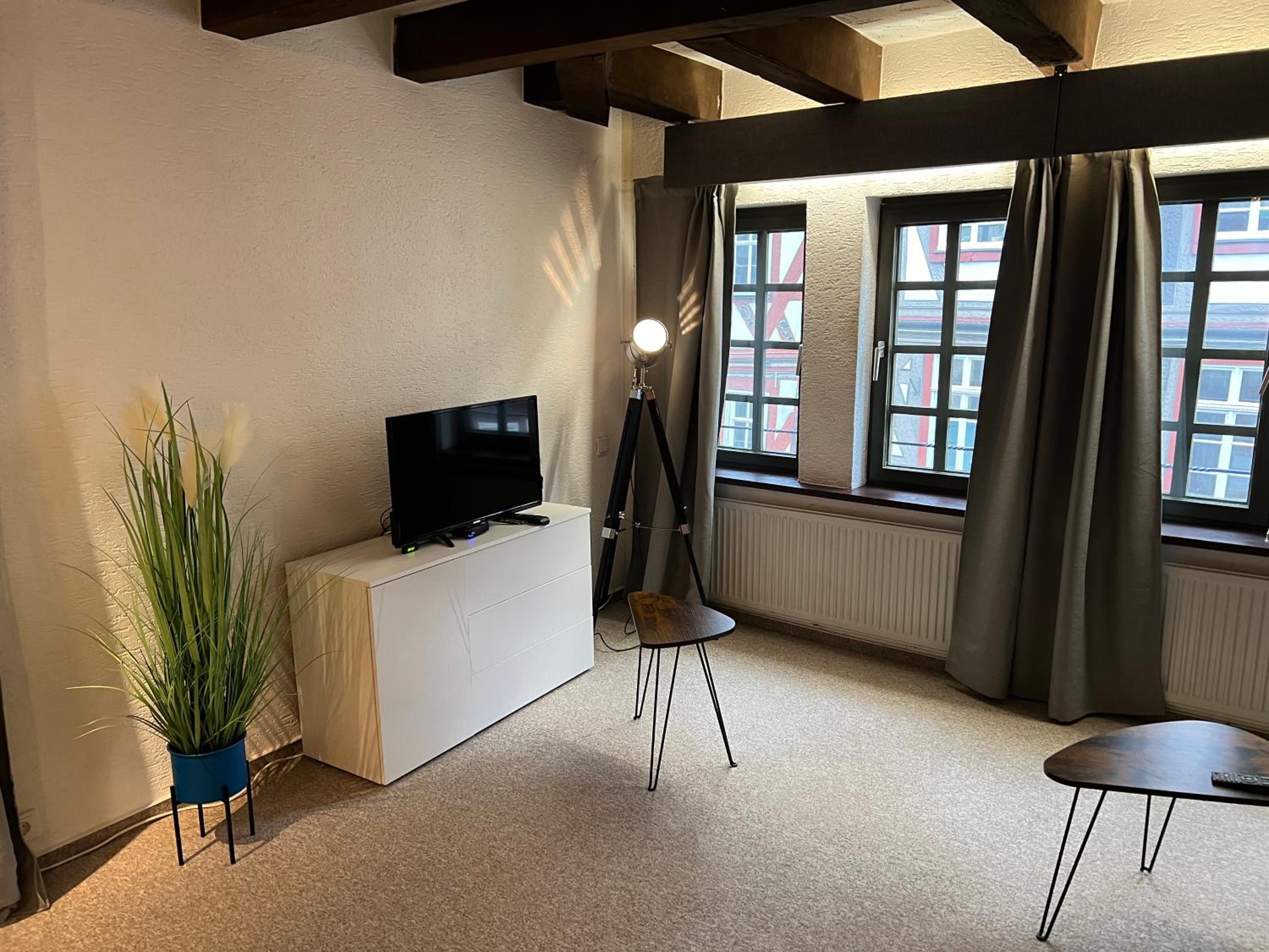Schönes, großzügiges Zimmer in einem historischen Fachwerkhaus.