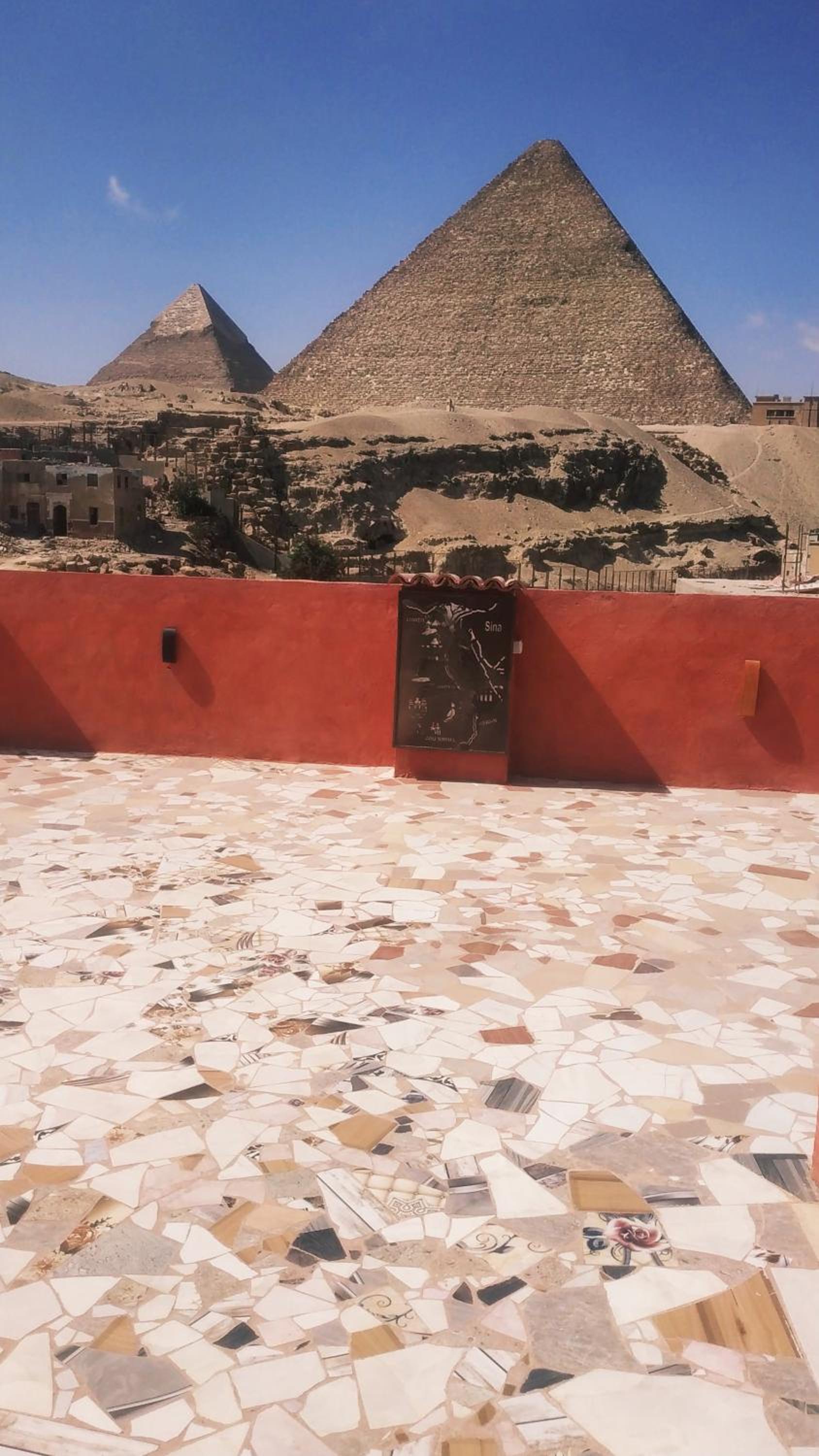 The hotel is nice, clean and well maintained. It is really in a walking distance from the pyramids and the Sphinx. From the room window and from the terrace also you can see the pyramids. The landlord is very friendly, helpful and caring.