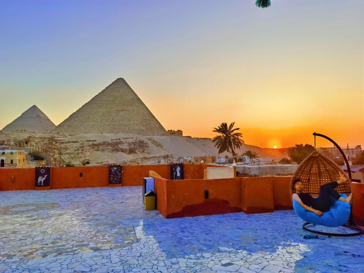 The place is very cozy and has warm vibes ! Our room has the view of the Pyramids. The rooftop seating area with the Pyramids view in the morning and at night are out of this world !