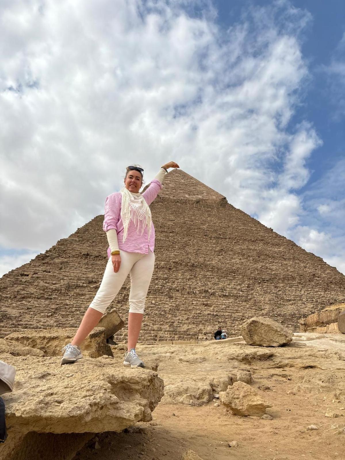 O Hotel fica a 200 Mts da Queops com Banheira e em primeiro lugar a ajuda do Anfitrião Gabriel que fala Portunhol perfeitamente e programa passeios com guia e precinho bom e justo pra onde Vc quiser Ex Rio Nilo, Museu Egípcio, Centro do Cairo, Mar Vermelho, Deserto Saara , Alexandria, Luxor e ETC ...