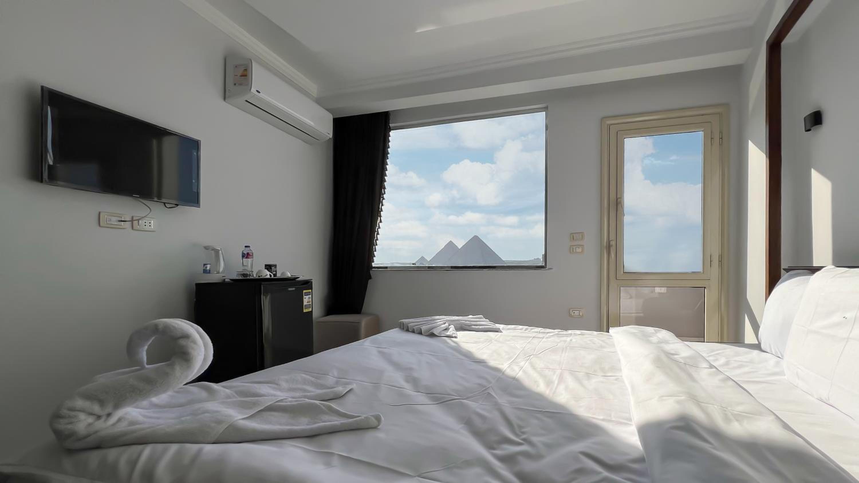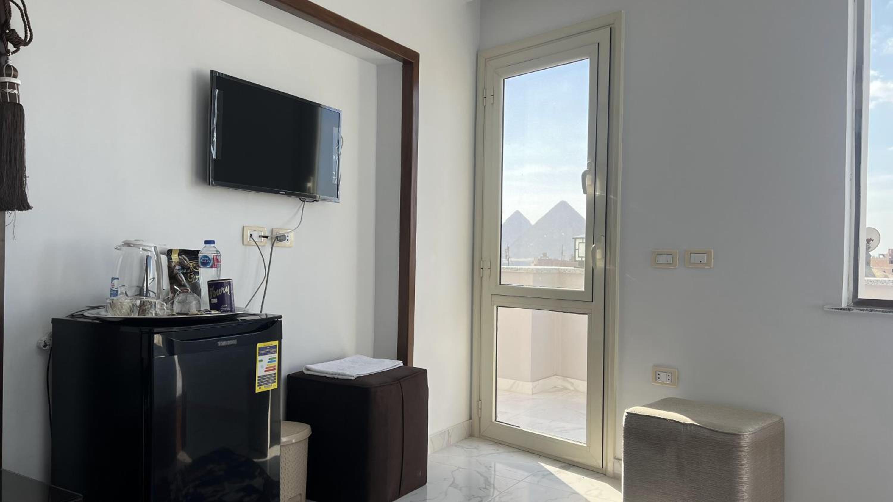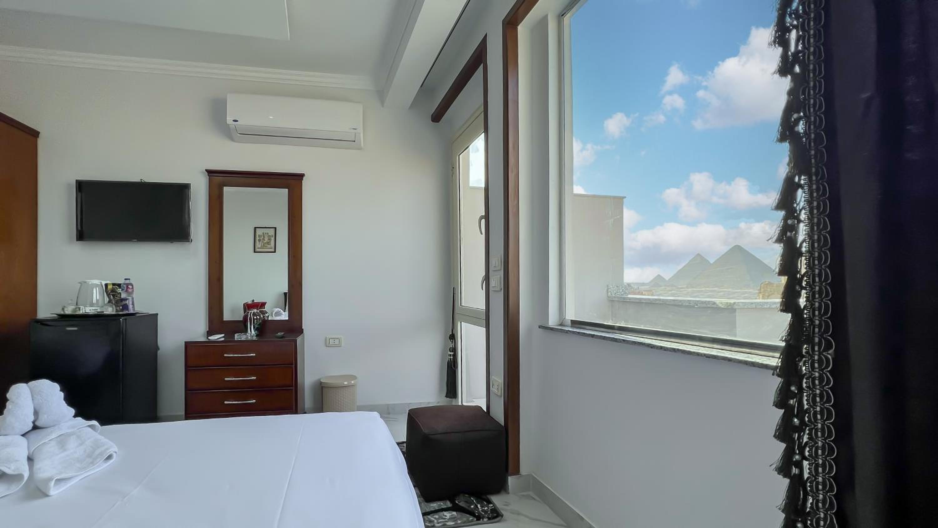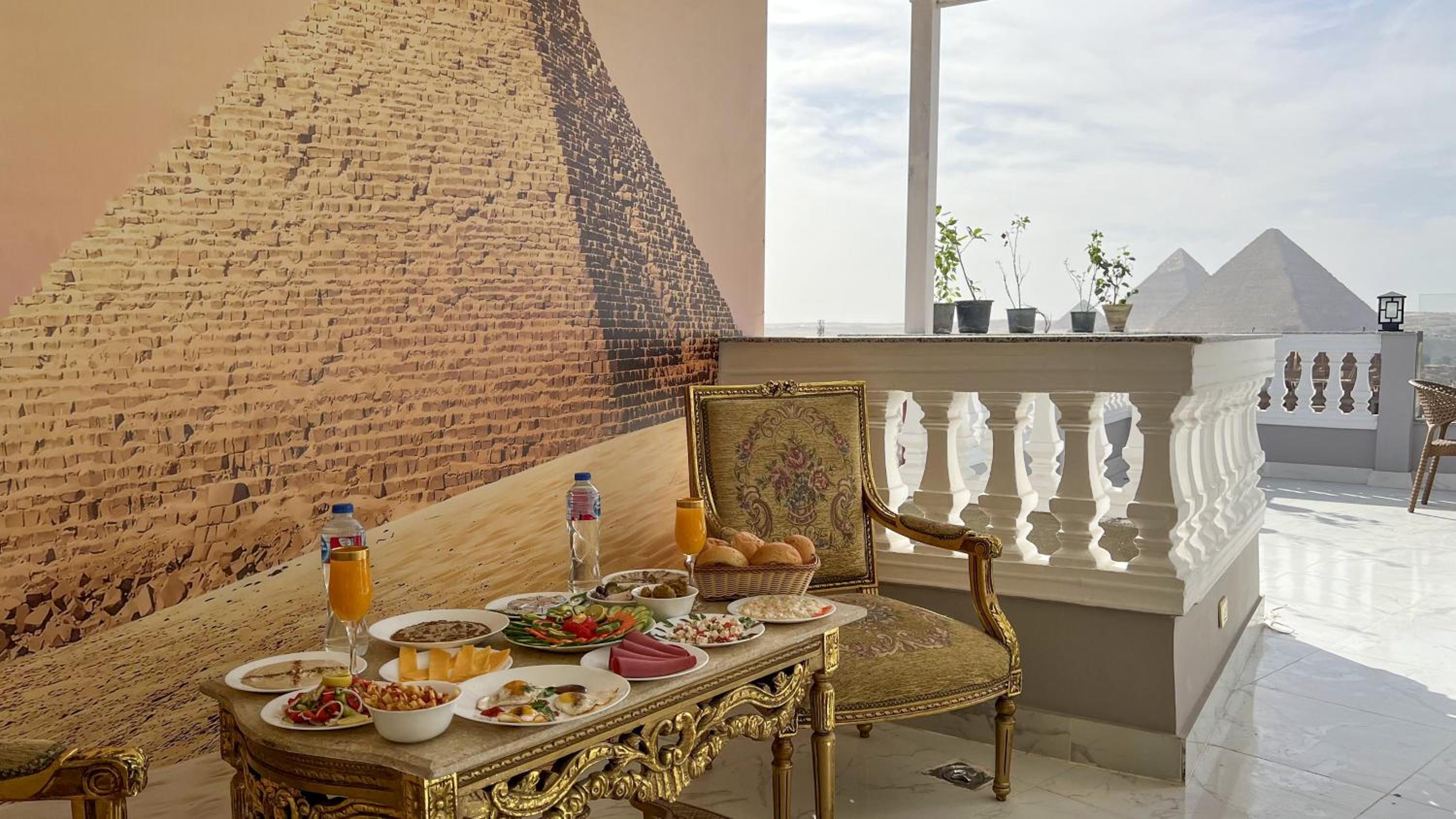 The view from the breakfast terrace was stunning,all the pyramids in front of you. The staff was very attentive.Reda was really looking after us. The owner Mohamed was very nice, we had early check in upon our request without extra charge and he invited us for breakfast.