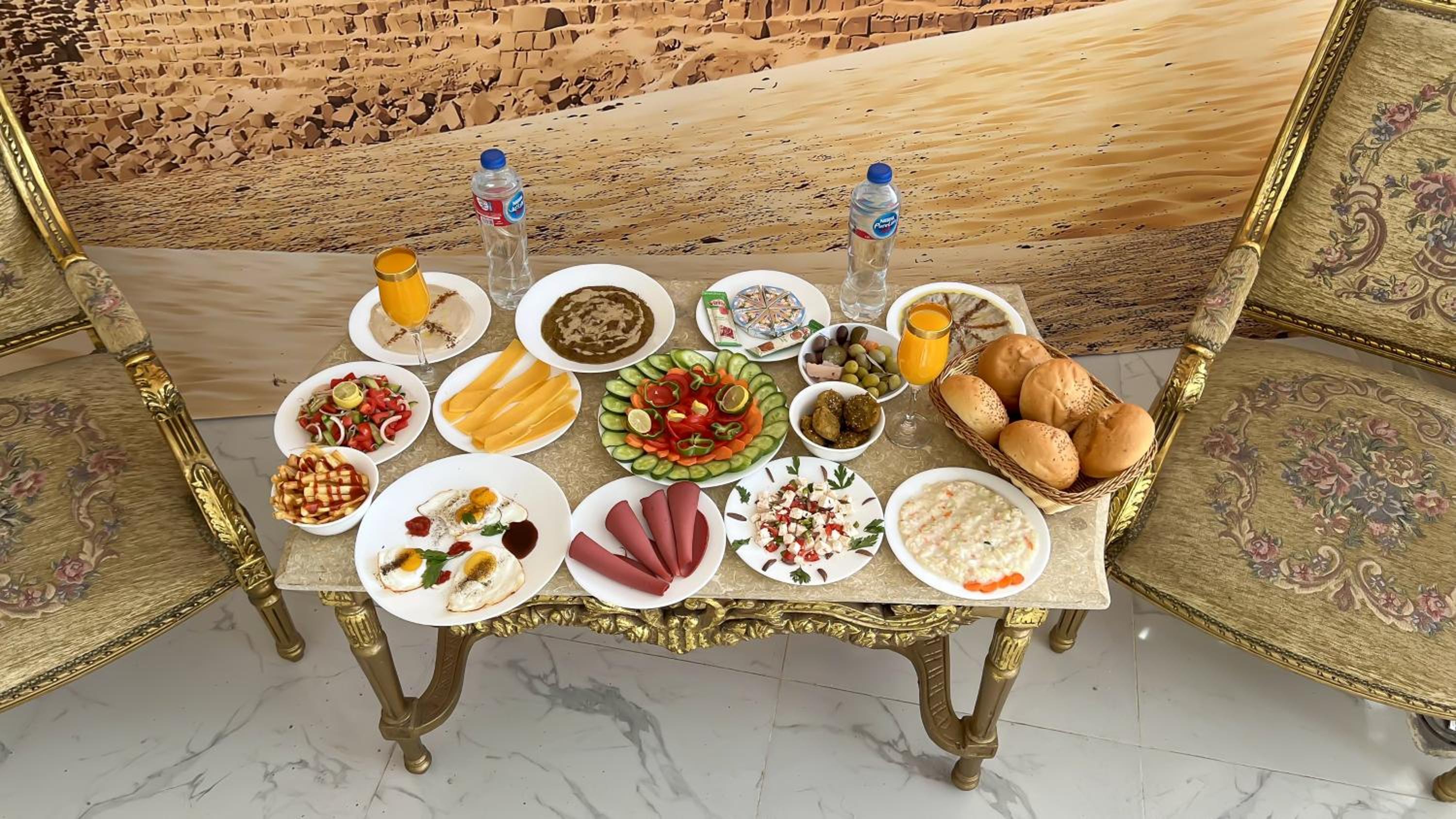 Mohamed et Reda nous ont merveilleusement bien accueillis dans leur hôtel, nous nous sommes sentis comme chez nous. Nous étions avec 2 enfants de 8 ans et 3 ans et la chambre familiale deluxe était parfaite pour nous héberger. L’emplacement est proche des pyramides de Gizeh. Le petit déjeuner est très copieux et très bon avec notamment ses falafels.