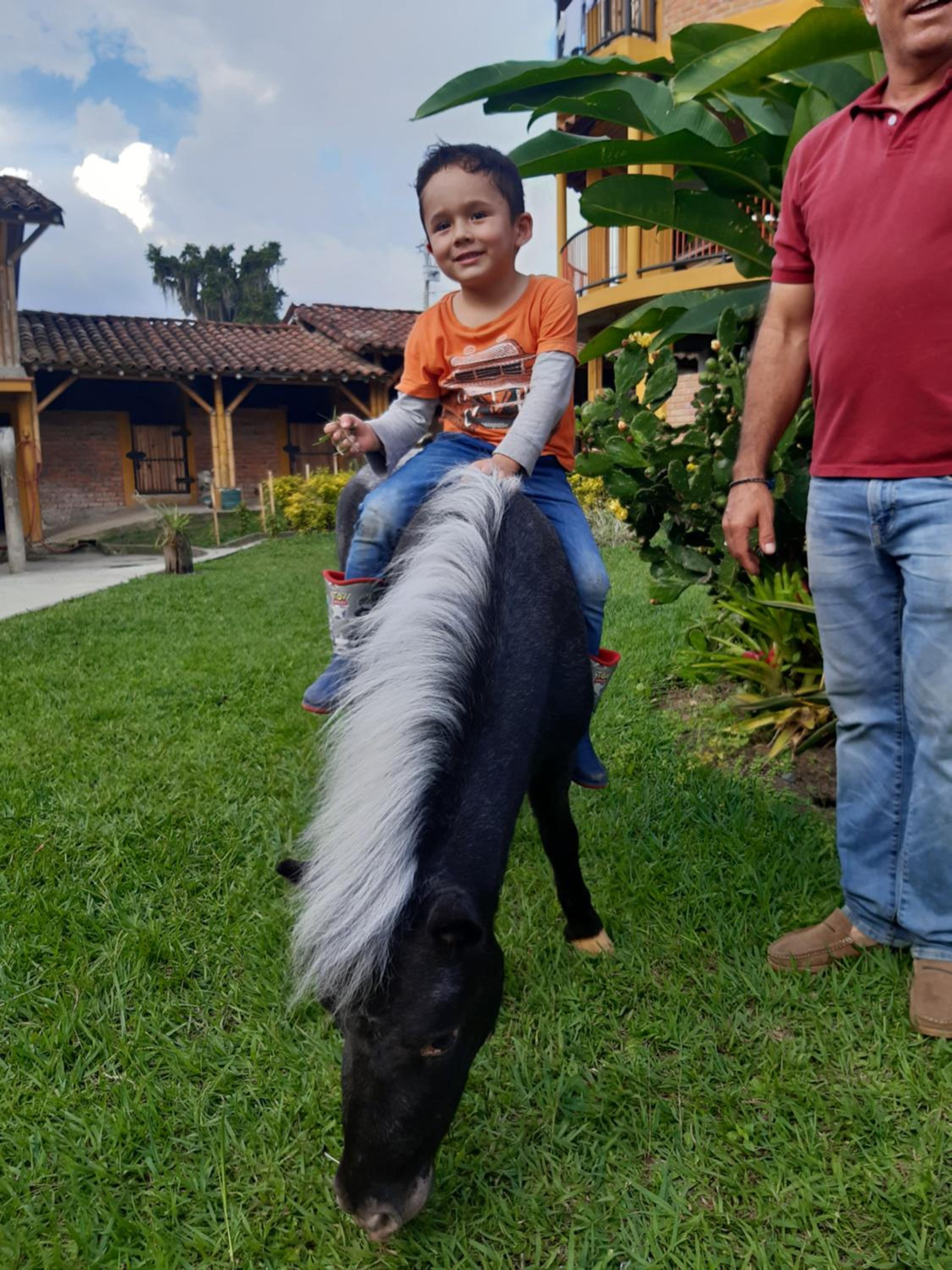 Jorge y su esposa muy atentos, nos concintieron con cafesito, nos mostraron los animales que tienen en la finca, me encantó el burrito (Rayo), el pavo real (Kevin), los ponys, etc...