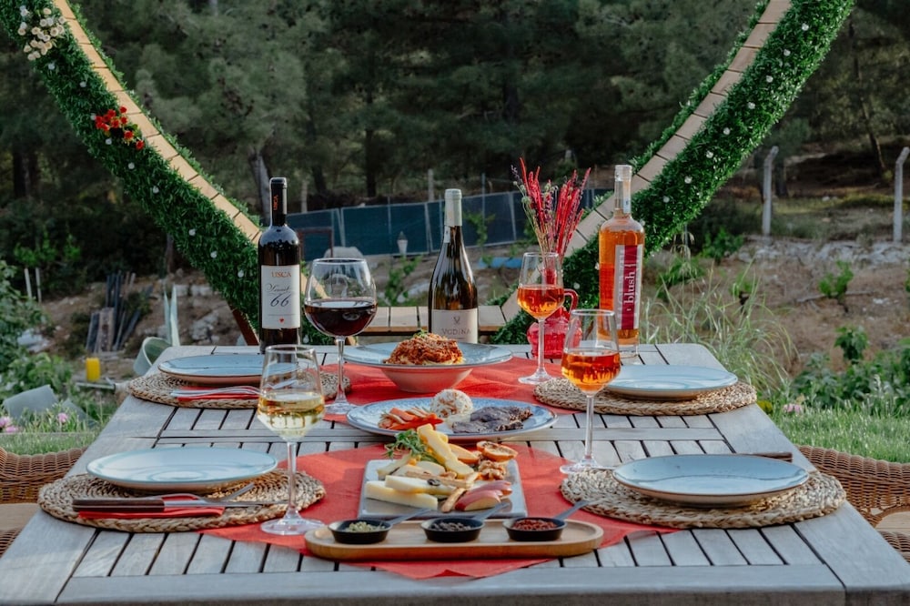 Doğayla iç içe bir ortam. Sessizlik ve huzur dolu bir seyahatti. Konumu bağ yoluna ve plajlara yakın. Hayvan dostu bir aile işletmesi.