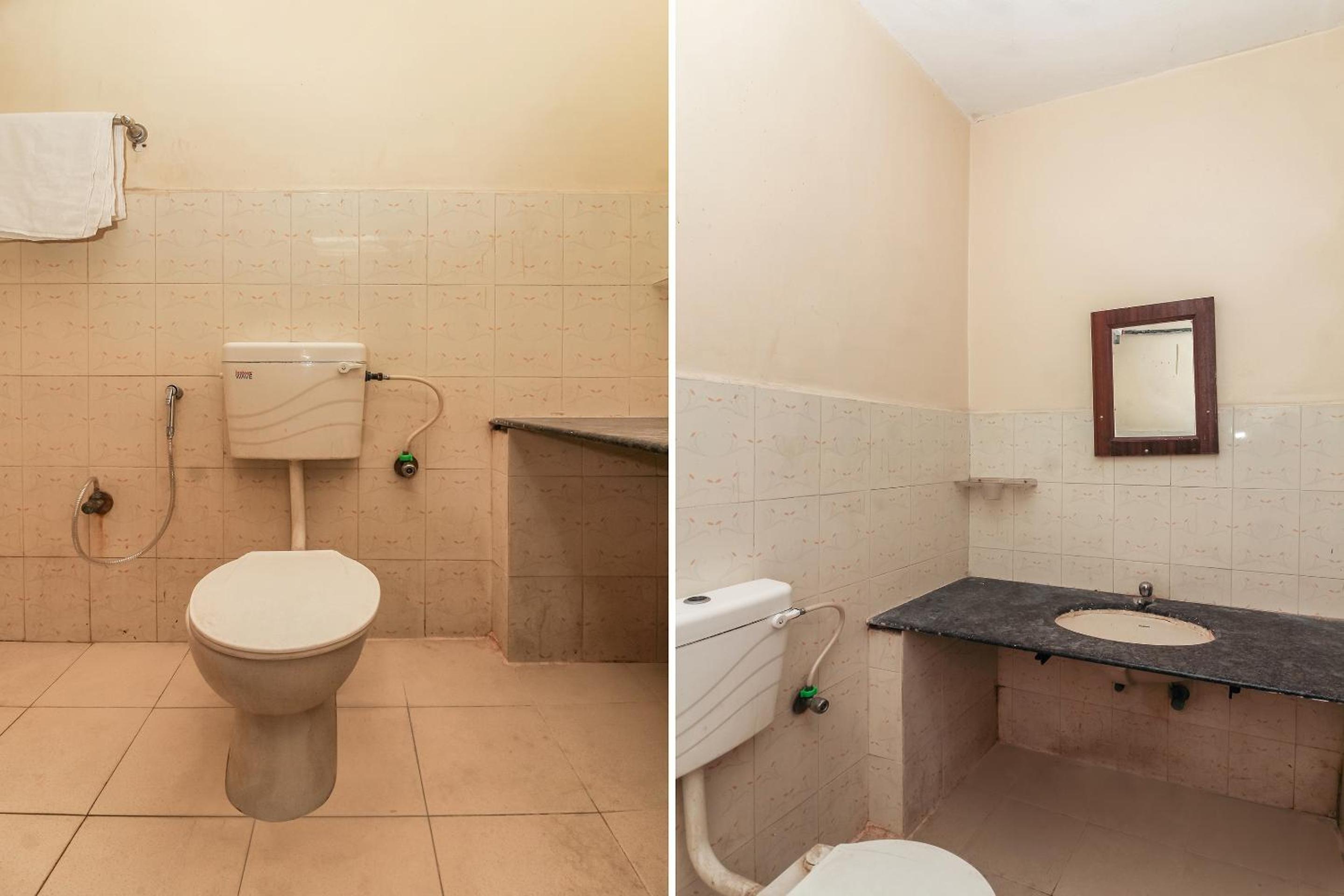 Nobody was around in the reception for check in. The the AC was leaking very badly. The toilet was literally worse than a public toilet. Worse than a train toilet. The shower head was rusted and broken. The commode so bad it did not even have a push button to flush. The surroundings were like municipal dumping yard. It does not have lift. I had to climb all the floor to reach. The tiles in the room were broken. I never had an experience worse than this