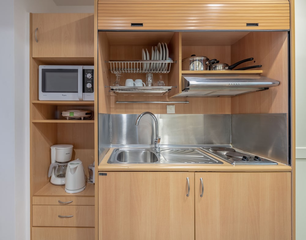 La habitación tenía una pequeña cocina que es bastante útil para quedarse algunos días. La decoración de la habitación era bastante pobre pero todo estaba en un estado razonable. El bufet de desayuno no era muy básico.