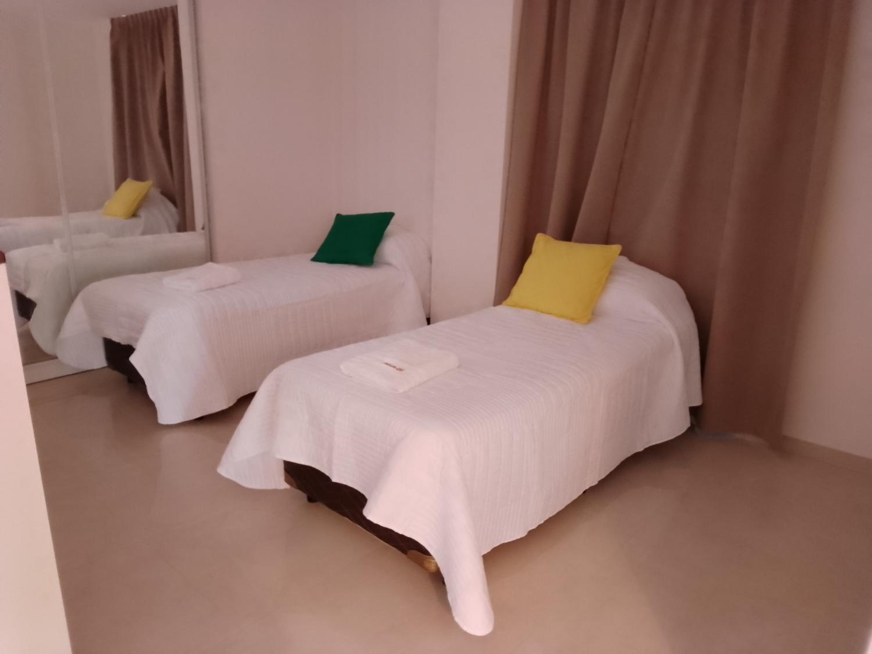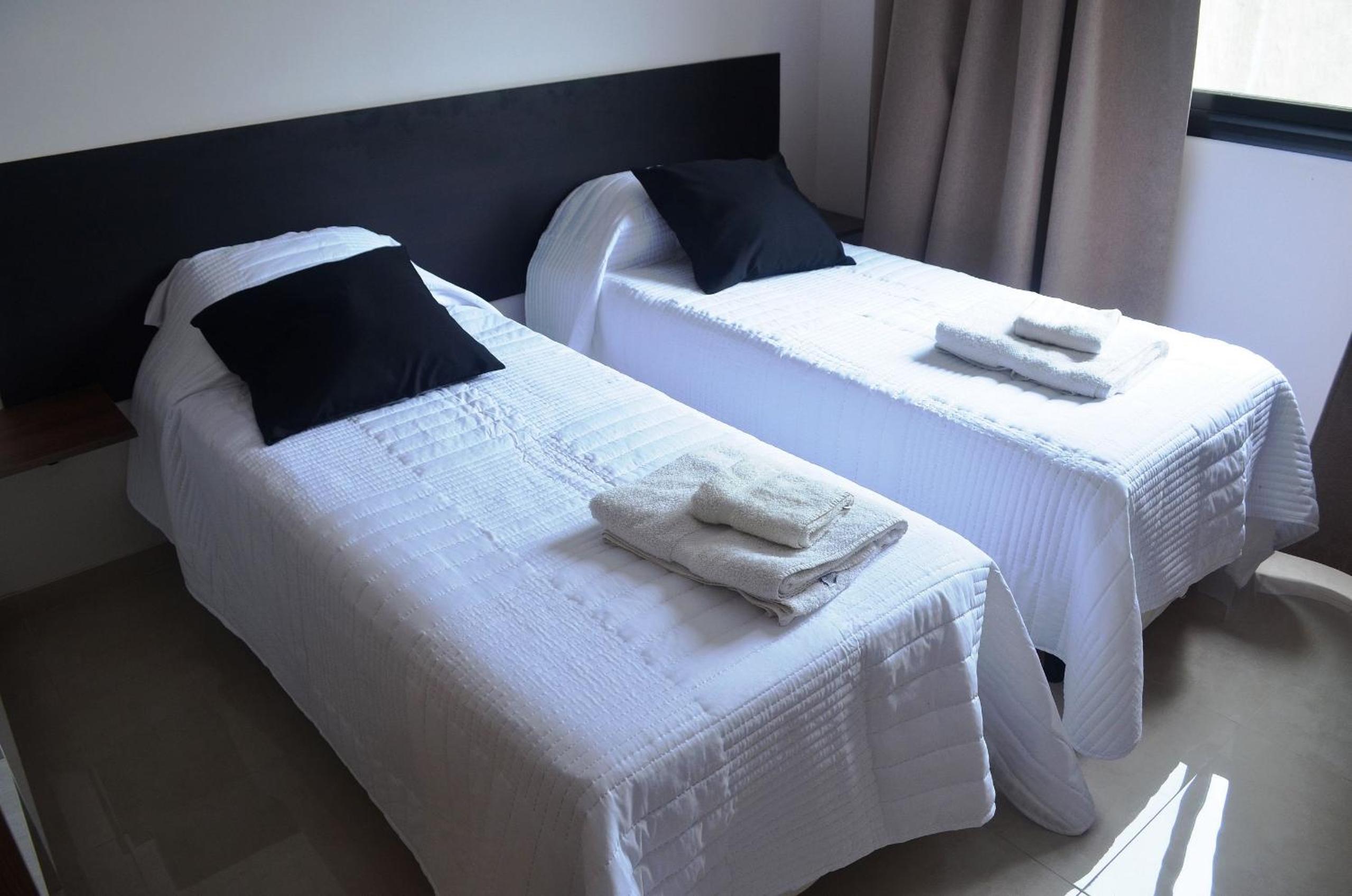 Una de las toallas que estaban sobre las camas de 1 plaza estaba rota