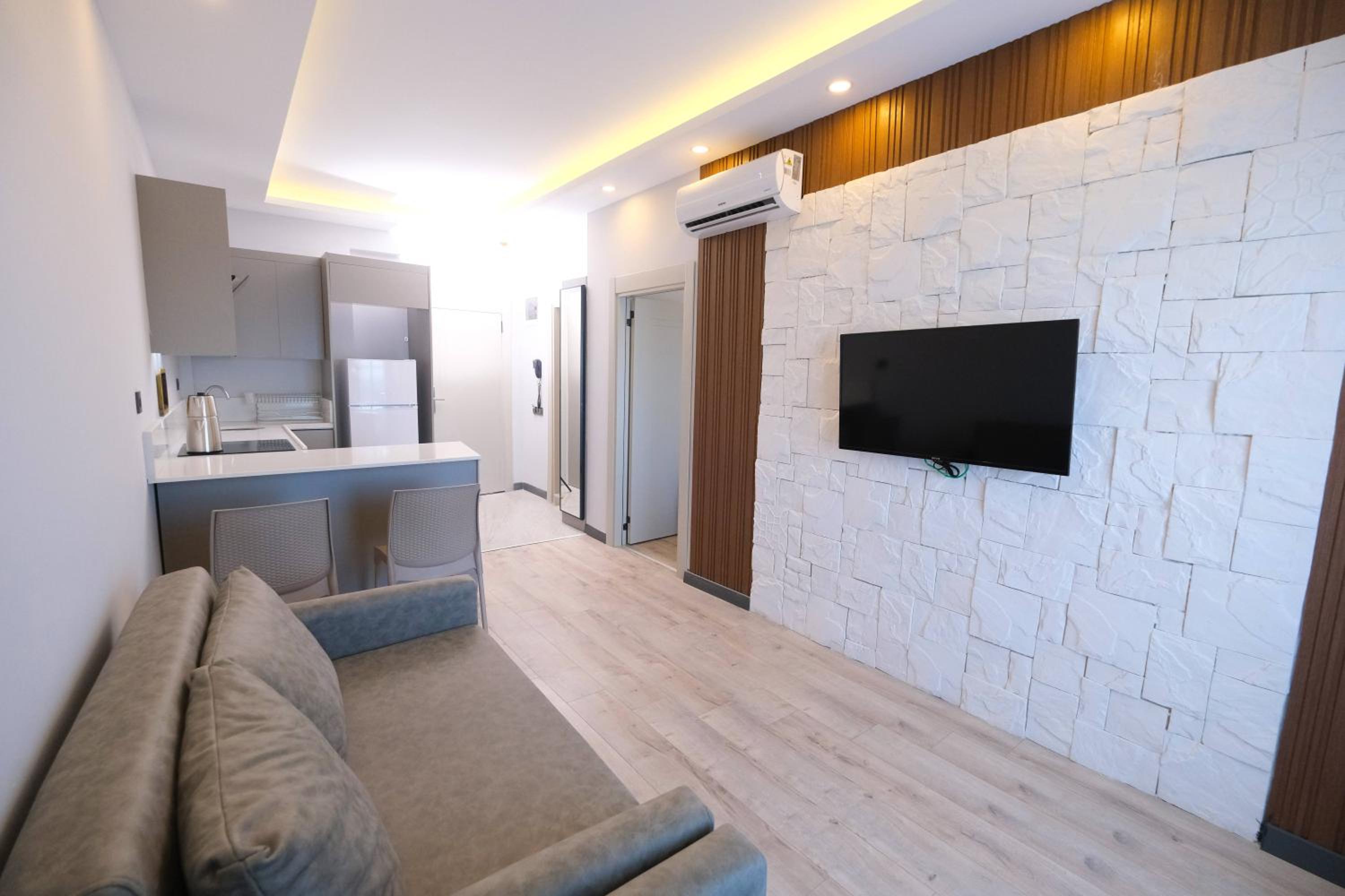 Enjoy modern amenities such as air conditioning, a fully equipped kitchen, and sea views from your balcony during your stay at Class Premium Suit Otel.
