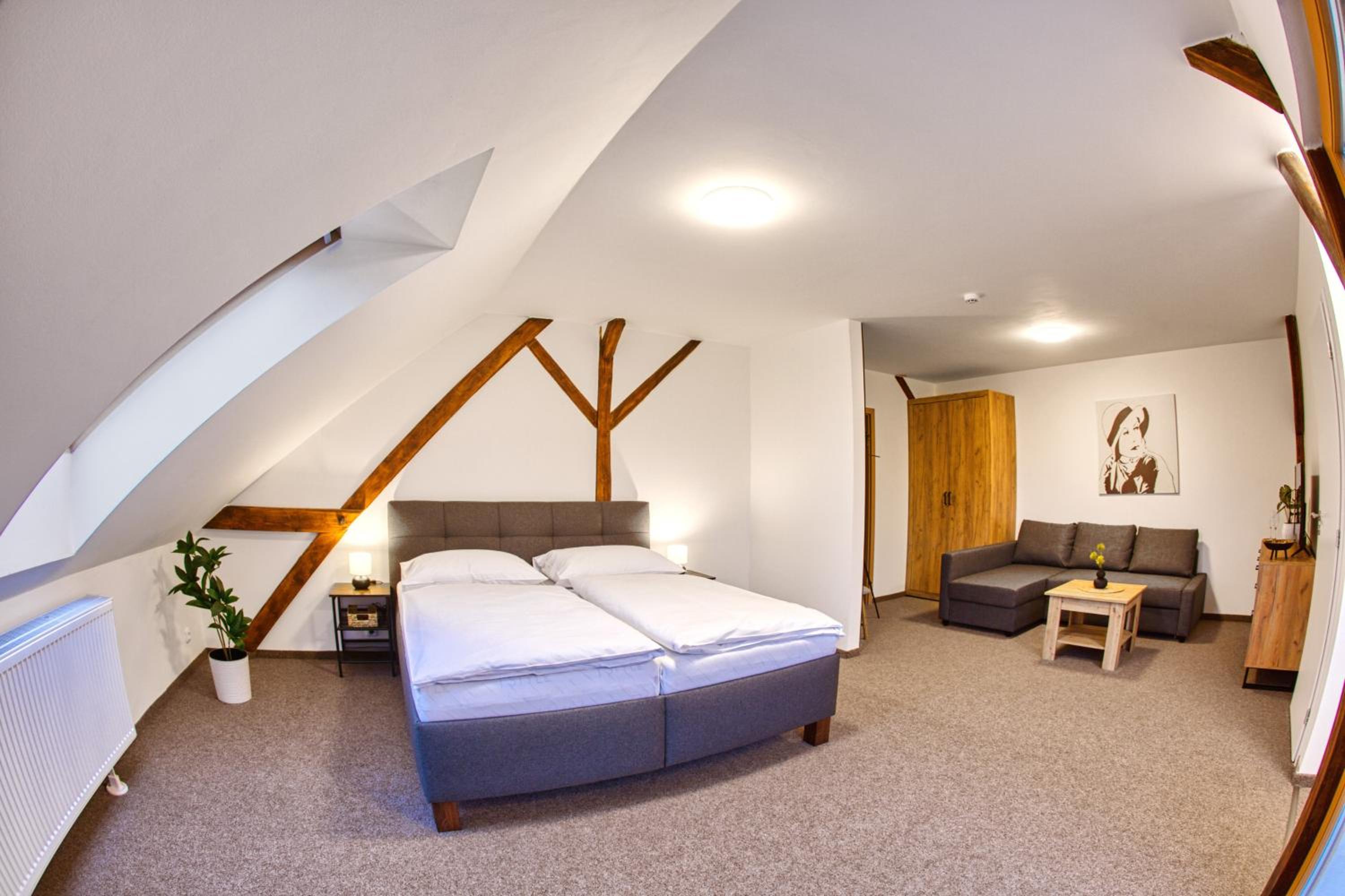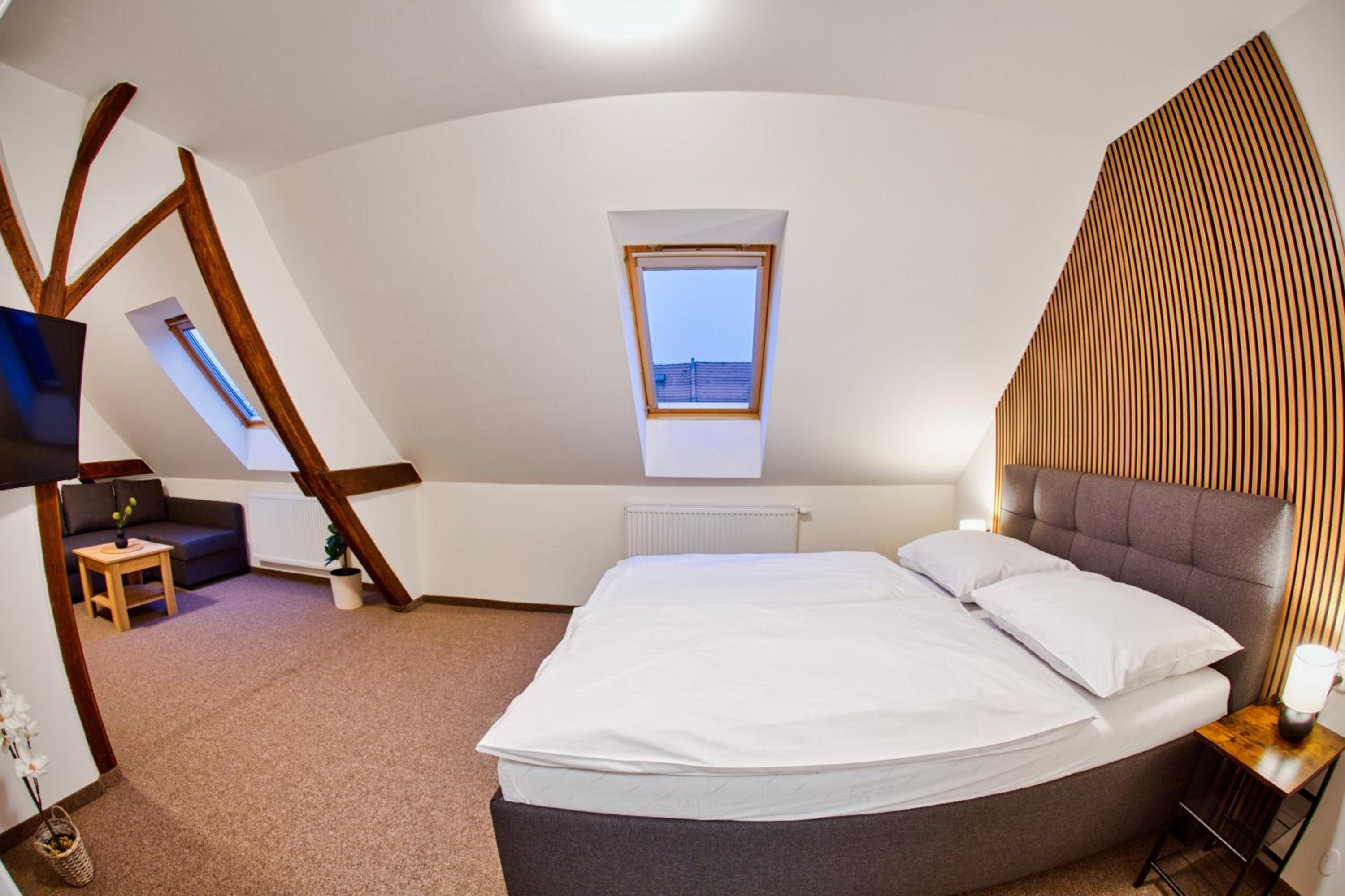 Located in Podbořany, Hotel a Restaurace Růže offers family rooms and is just 50 km from Church of St. Mary Magdalene.