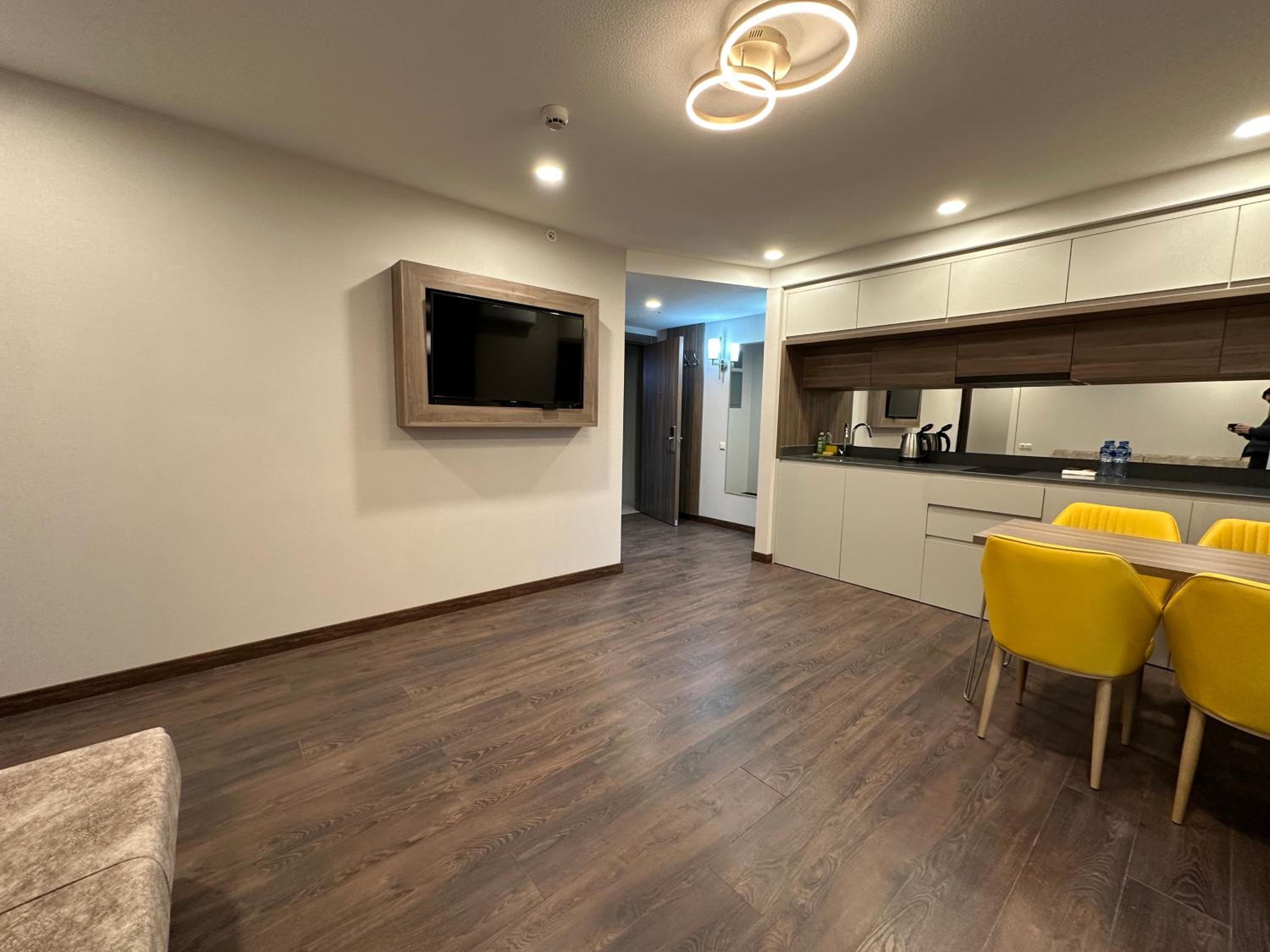 Each apartment is equipped with air conditioning, a fully equipped kitchen, flat-screen TV, and a private bathroom with luxurious amenities like slippers and a bidet. Feel at home with a balcony offering mountain views.