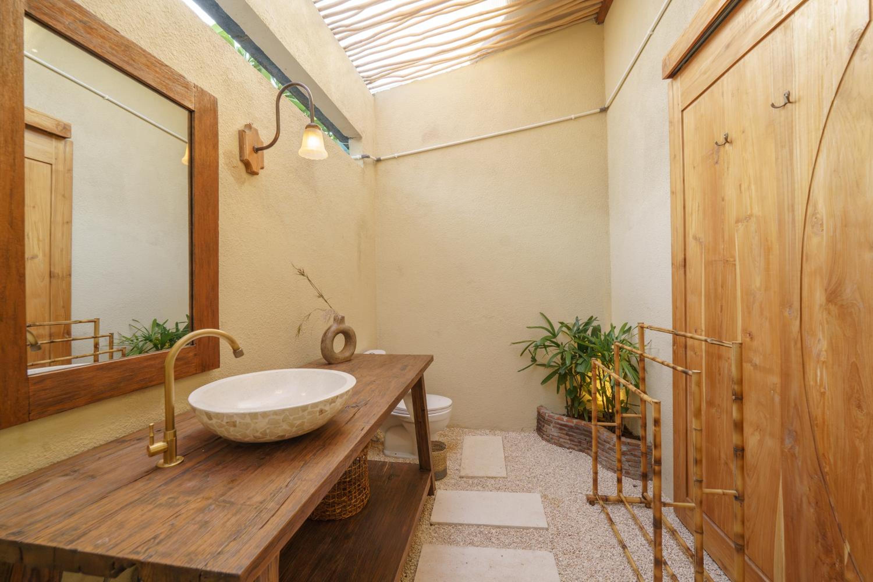 Newly built, cozy hotel. Very clean. Super spacious outdoor cute bathroom. Loved it.