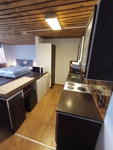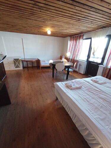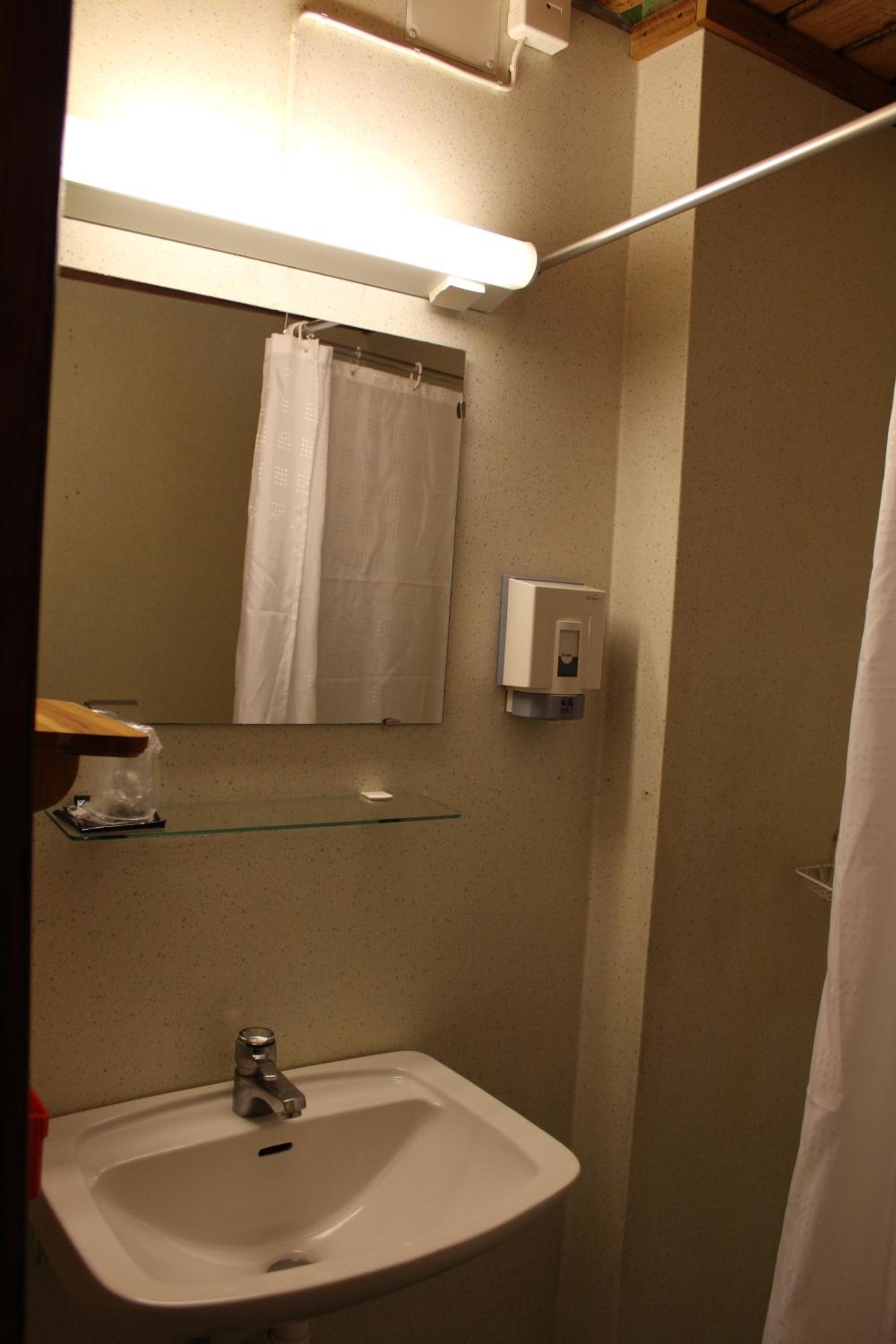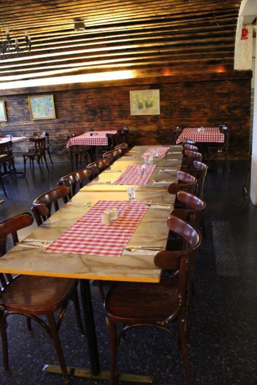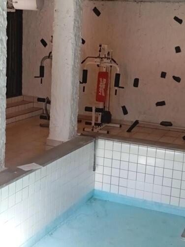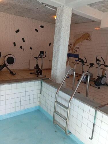 the room was cold. the bathroom smelt bad. the "pool" was an empty concrete tank and the sauna derelict. the bar and restaurant side of the hotel was locked up when not serving food. there was nowhere to get even a cup of coffee ( kettle in the room, but no cups ...or coffee)