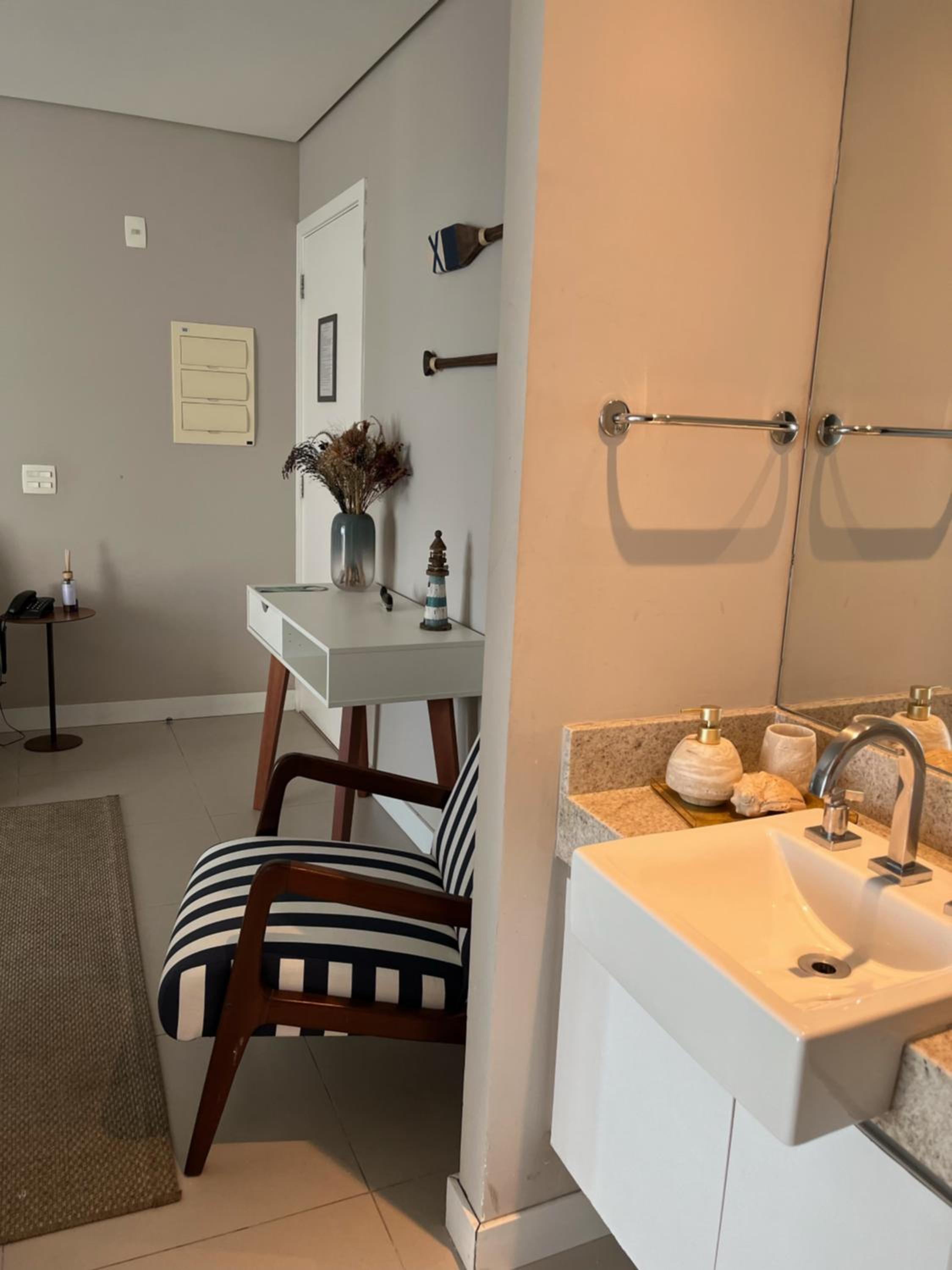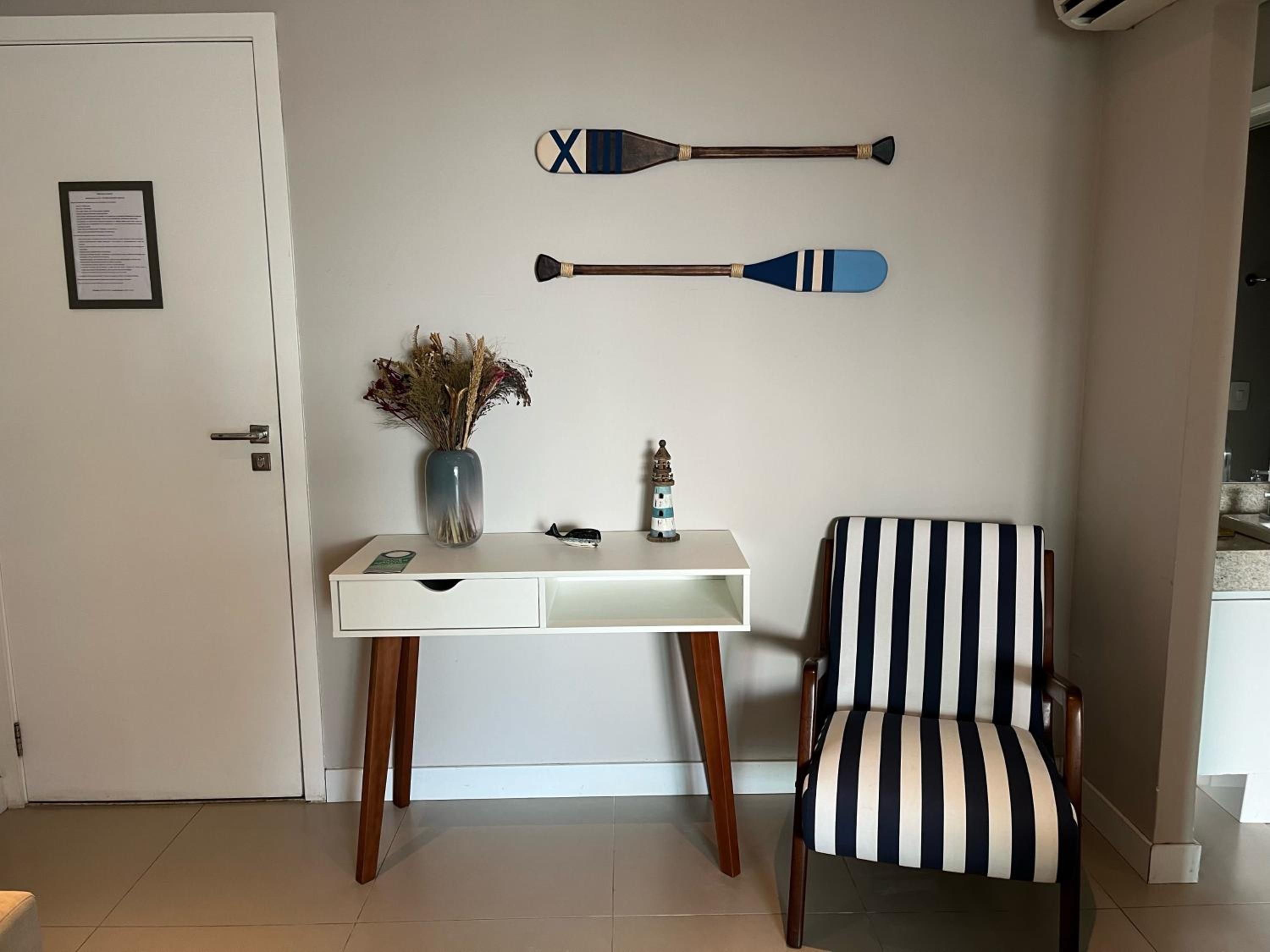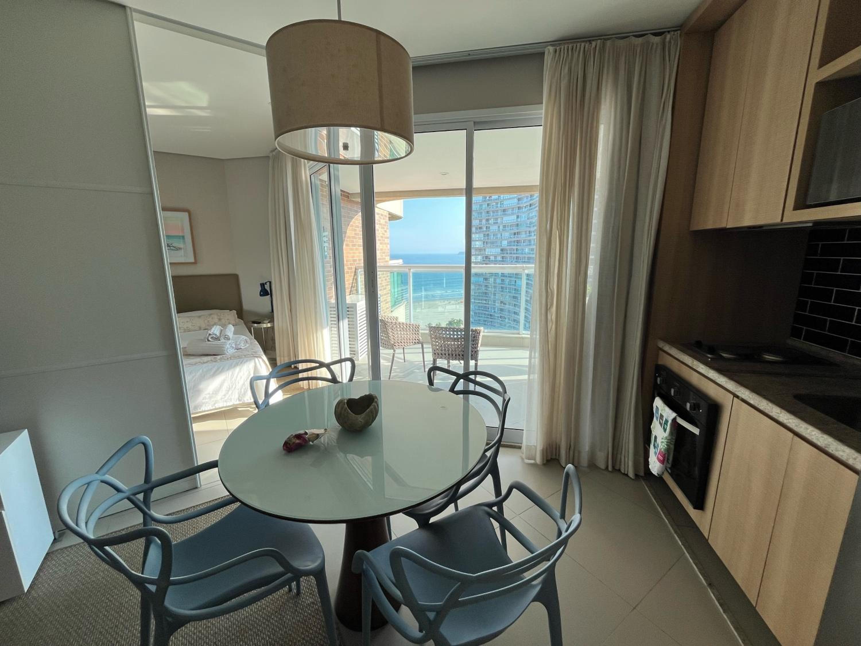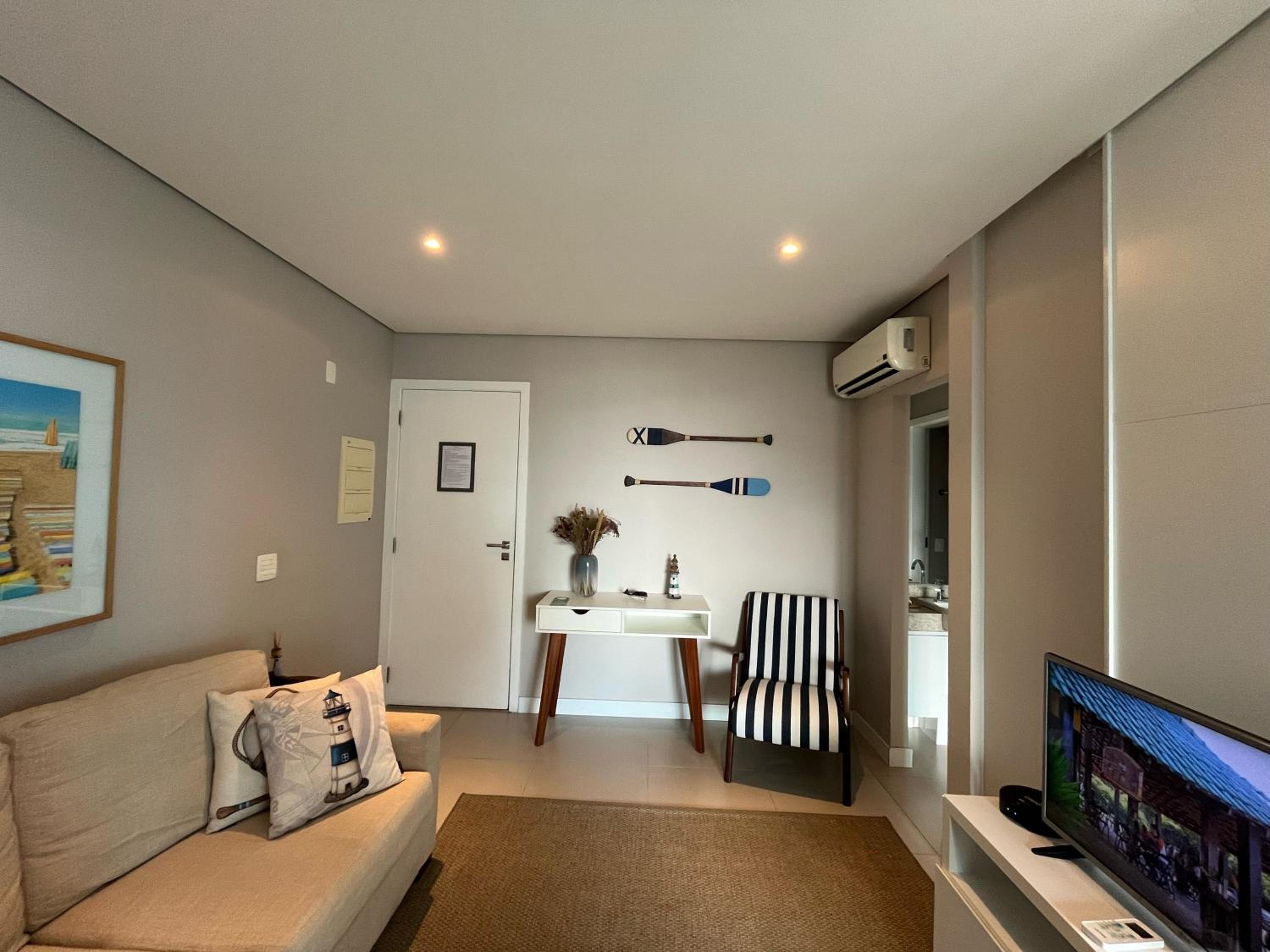 Apartamento com a decoração muito bonita, vista para o mar è um diferencial.