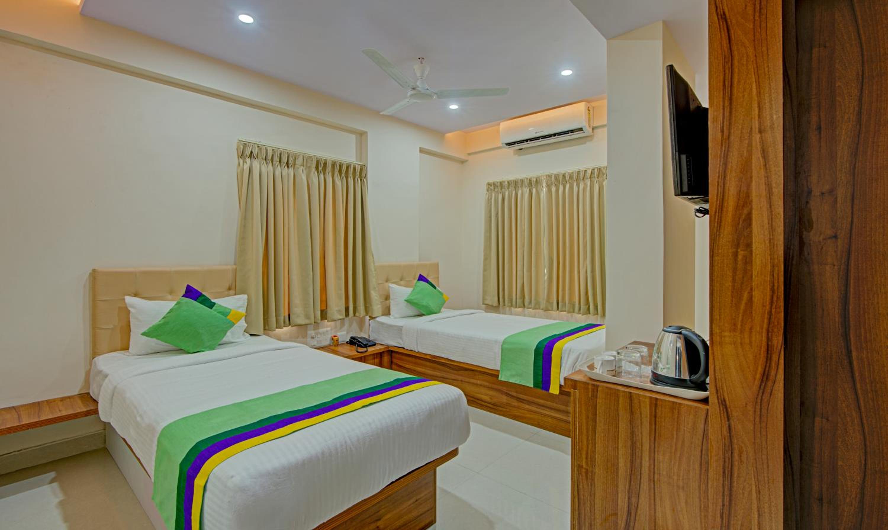 There was a broken switch board in bathroom, water pressure was not that great in shower or toilet bidet. TV’s were not working. They did not recharge Tata Sky it seems.
