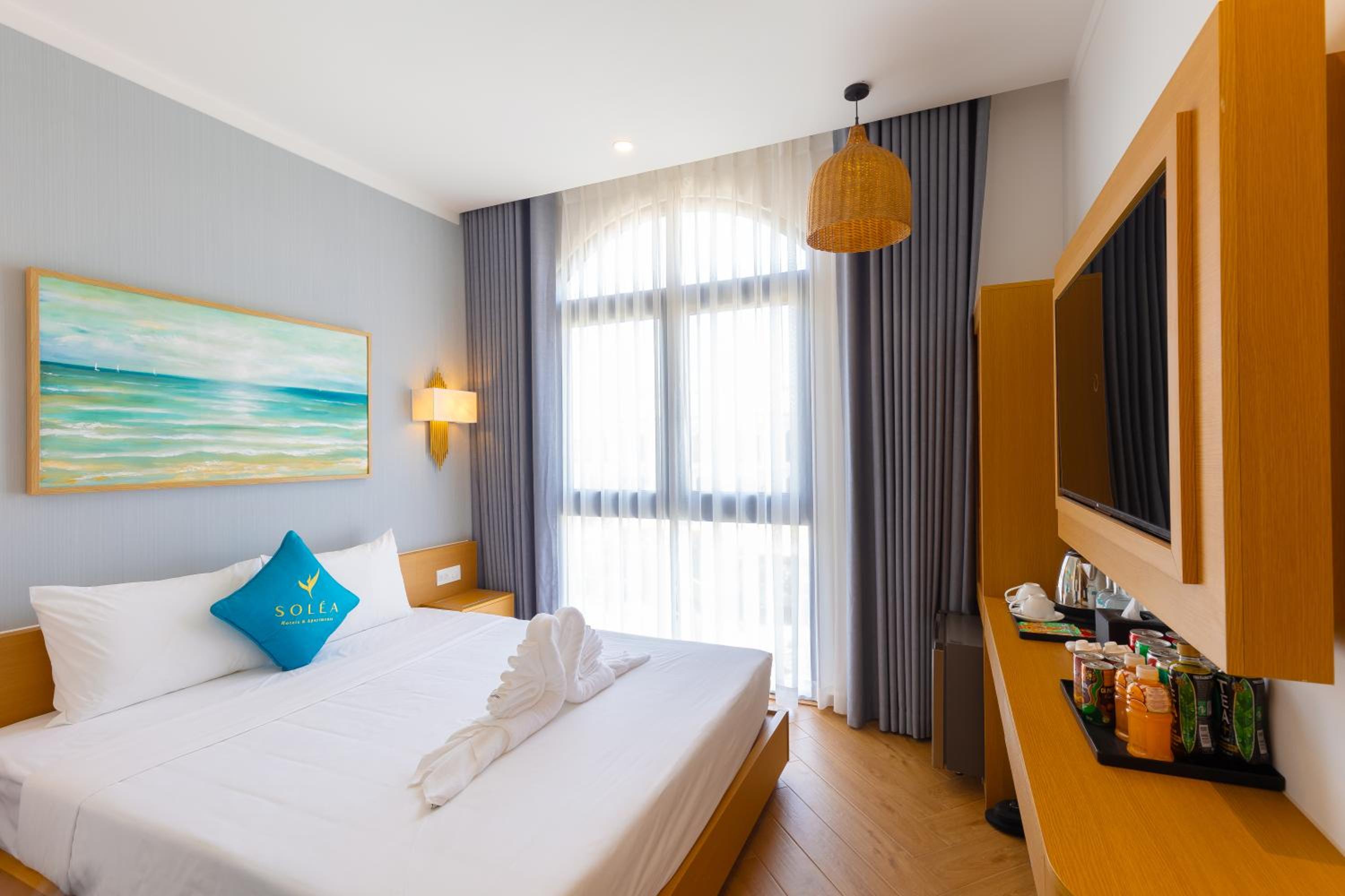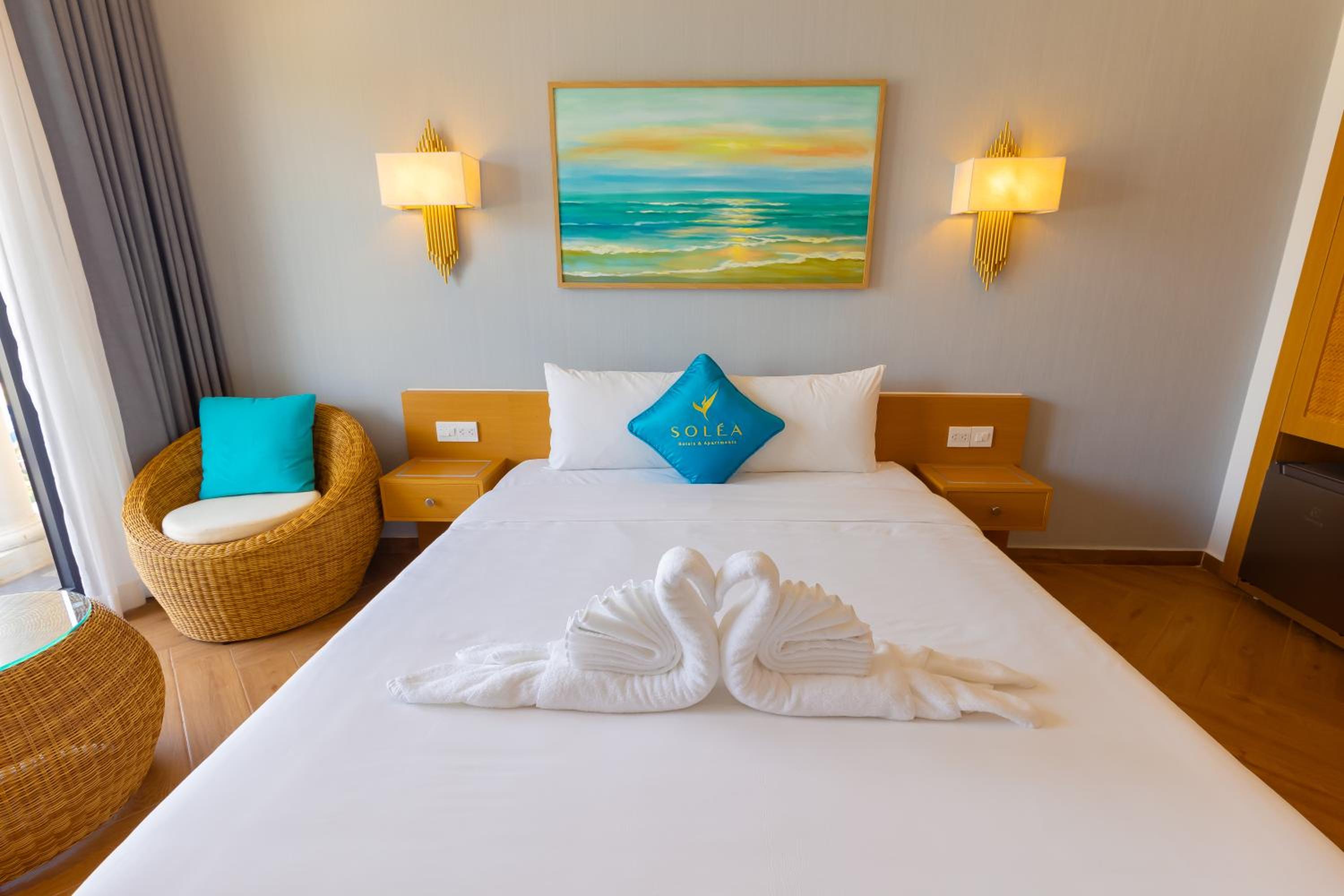 Perfect Getaway: Whether you're visiting Sung Hung Pagoda or Phu Quoc Night Market, SOLÉA Hotel GrandWorld Phú Quốc provides a convenient and luxurious stay. Book now for an unforgettable experience by the beach.