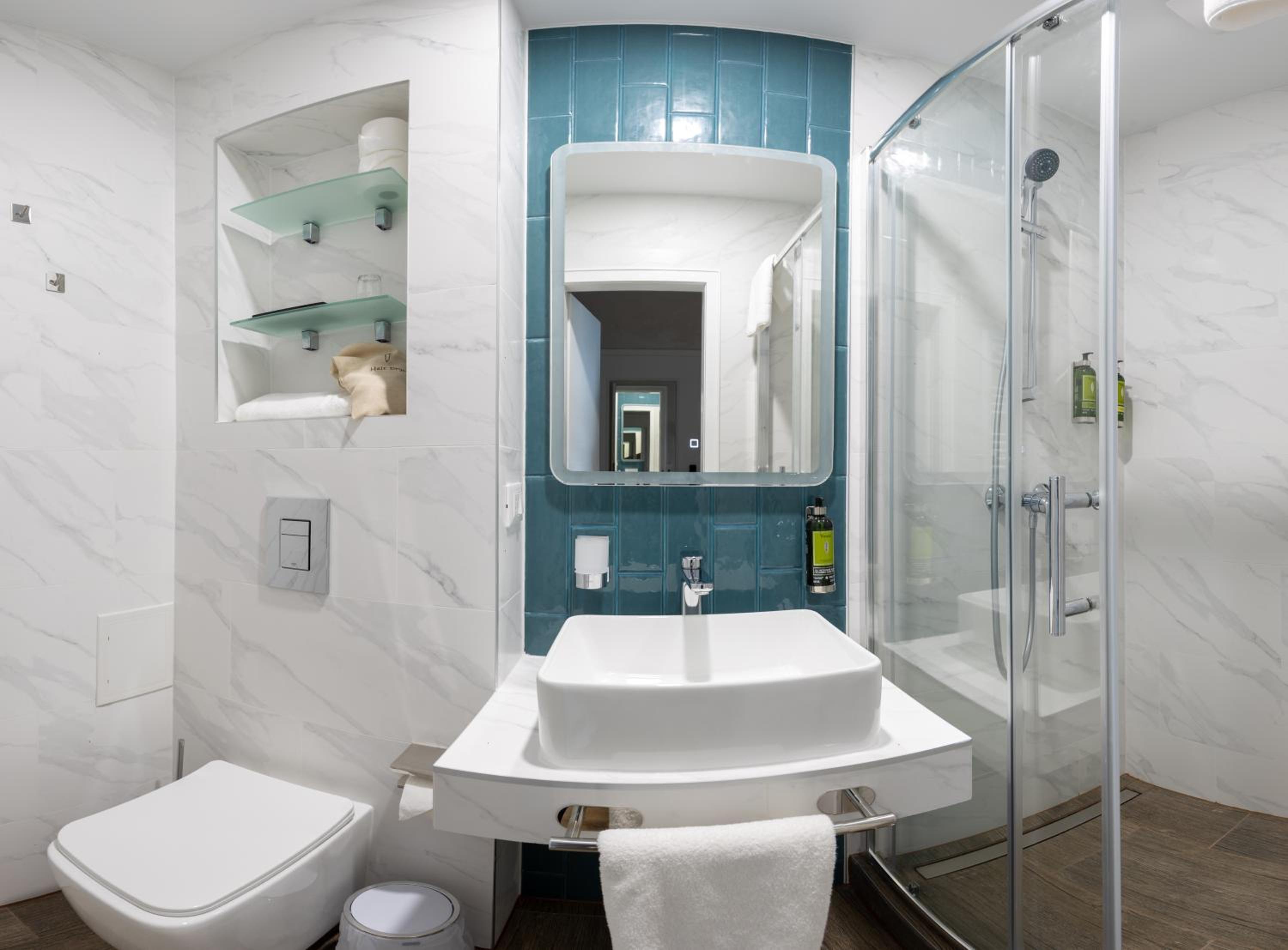 Bad etwas eng , Zimmer 002 liegt direkt über dem Freisitz des Lokals im Untergeschoss - bei unserem Aufenthalt kein Problem , aber vermutlich im Sommer .