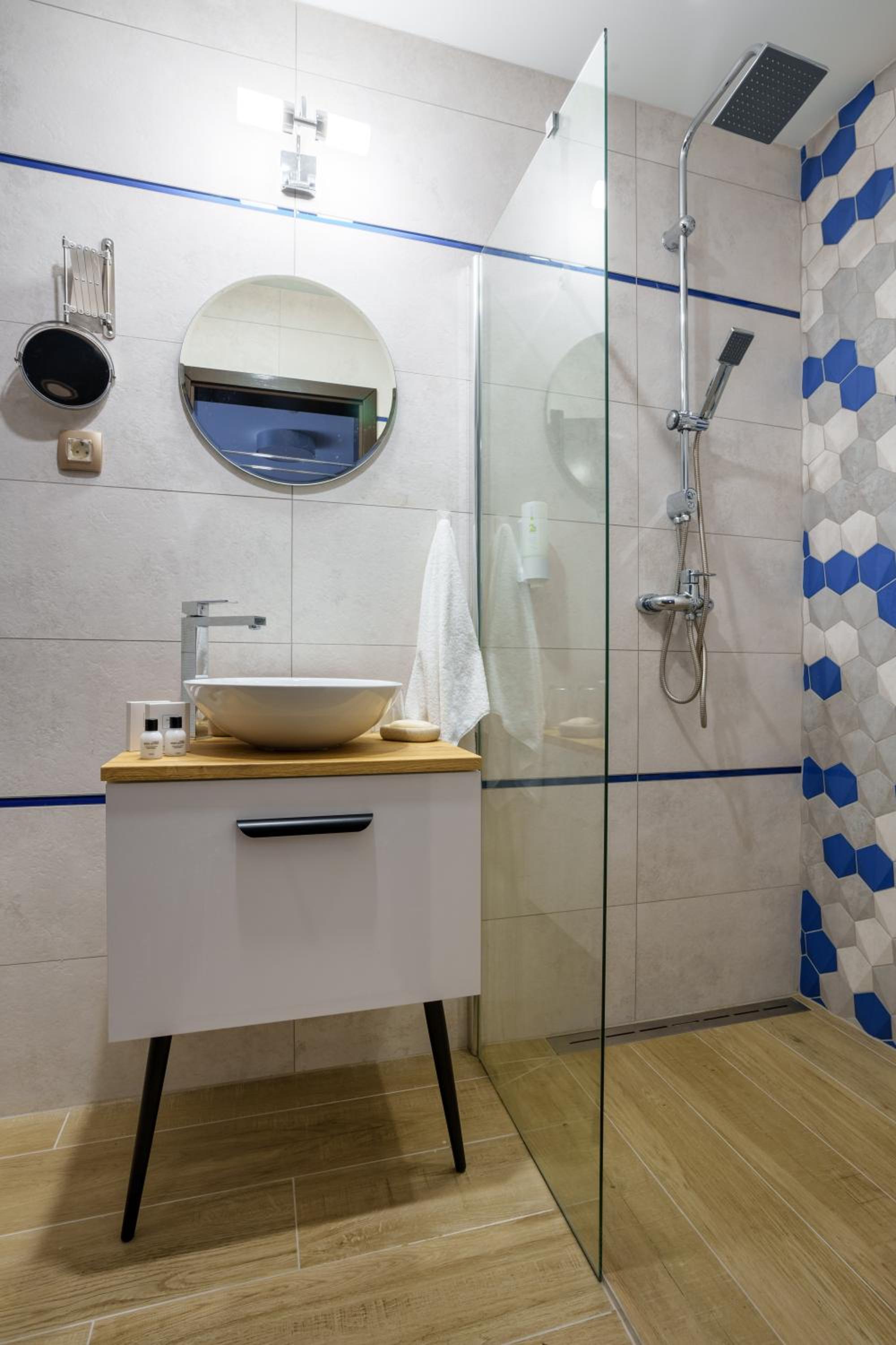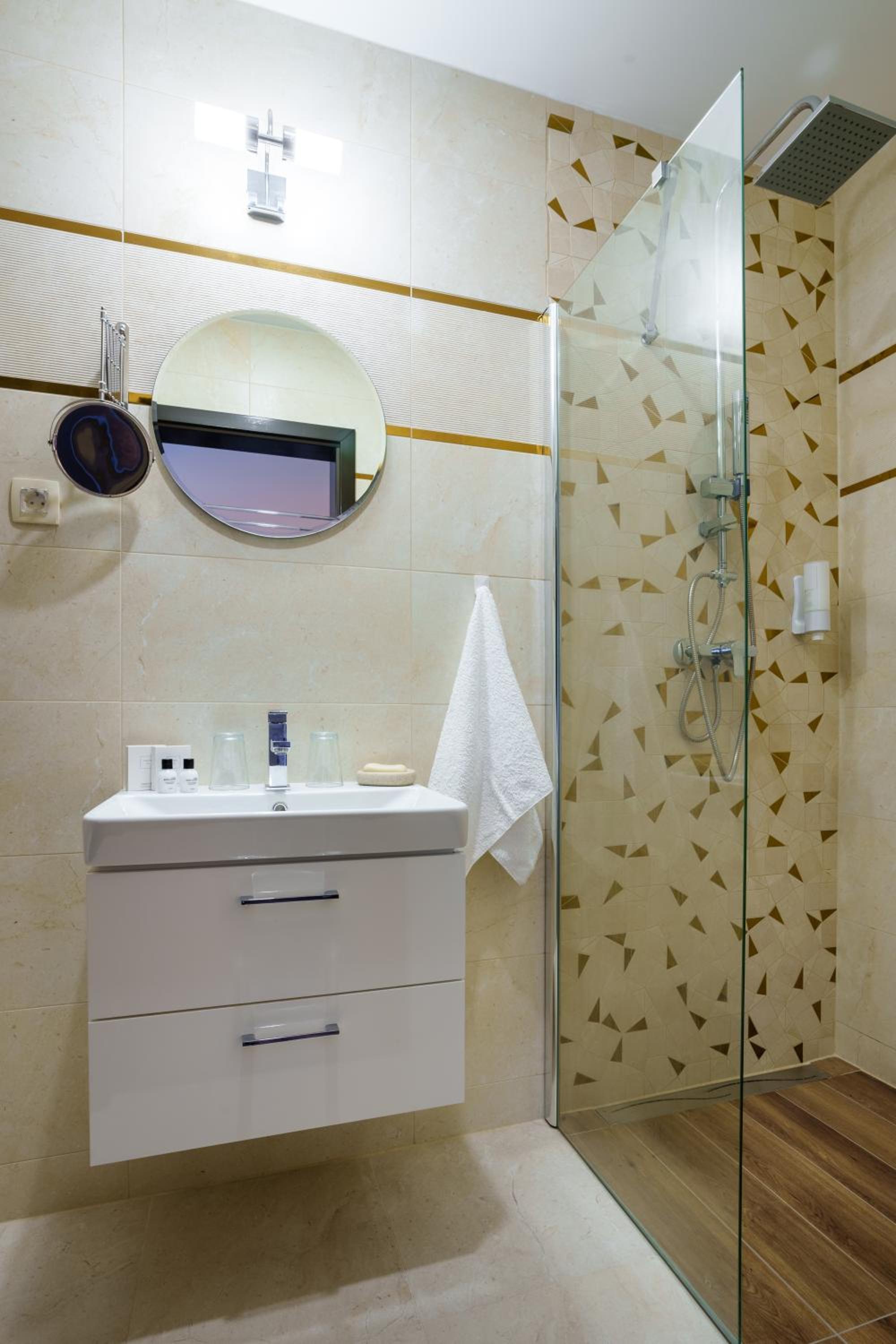 Room: electric boiler installed in the room (not in bathroom) and "hidden" behind a wardrobe - never seen anything like that in a hotel, see photo.