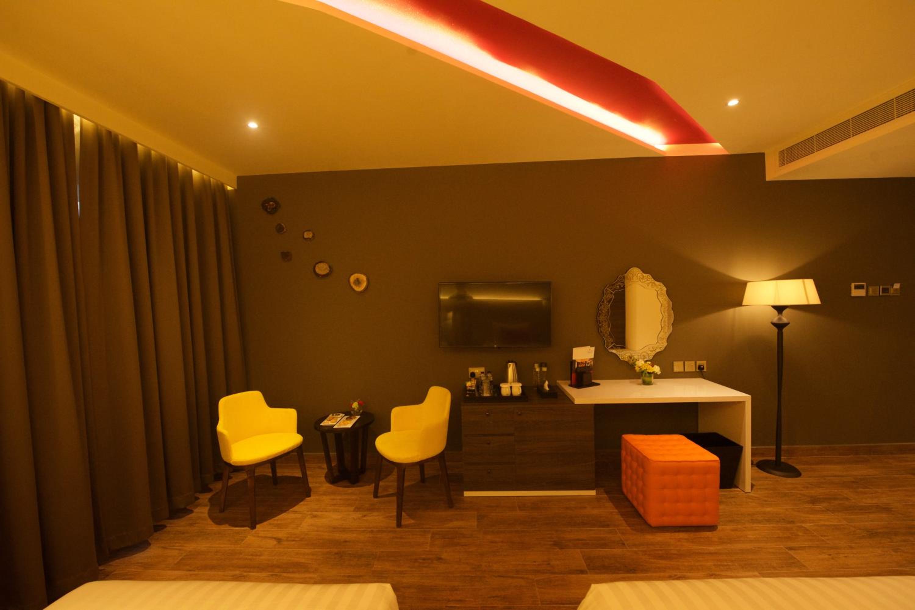Restaurants and cafes are nearby . Also nearby airport. Reception staffs and housekeeping staffs are kind and helpful . The hookah lounge is also nice and they offer affordable prices on the menu . The room i got is spacious and clean , the bathtub is what i like the most. Also good value of money .