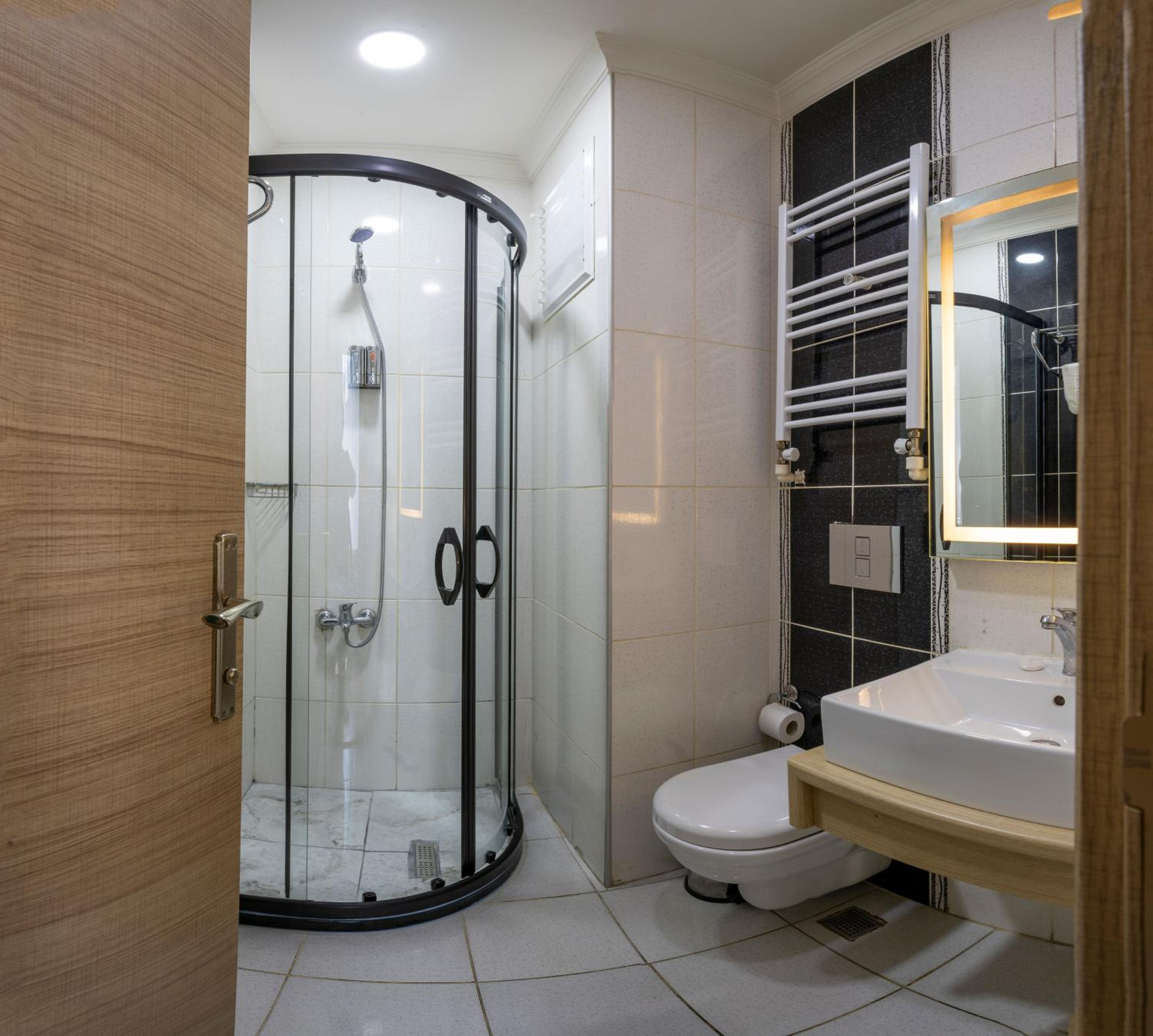 Alles. Deze foto's zijn misleidend. De indeling van de kamer en de kleuren van kamers kloppen, maar het is in verval. De kamers stinken naar oud en vies beddengoed, airconditioning rammelt als een kapotte wasmachine, er is geen parkeergelegenheid, je moet auto ergens in een tussenstraat weten te parkeren, lift is klein en de liftdeur is kapot wat het ook gevaarlijk maakt voor kinderen. Er zijn 2 andere hotels met 5 sterren in Fatih met de zelfde naam. Ik vermoed dat deze hotel leeft van de naamsbekendheid van die andere twee hotels.