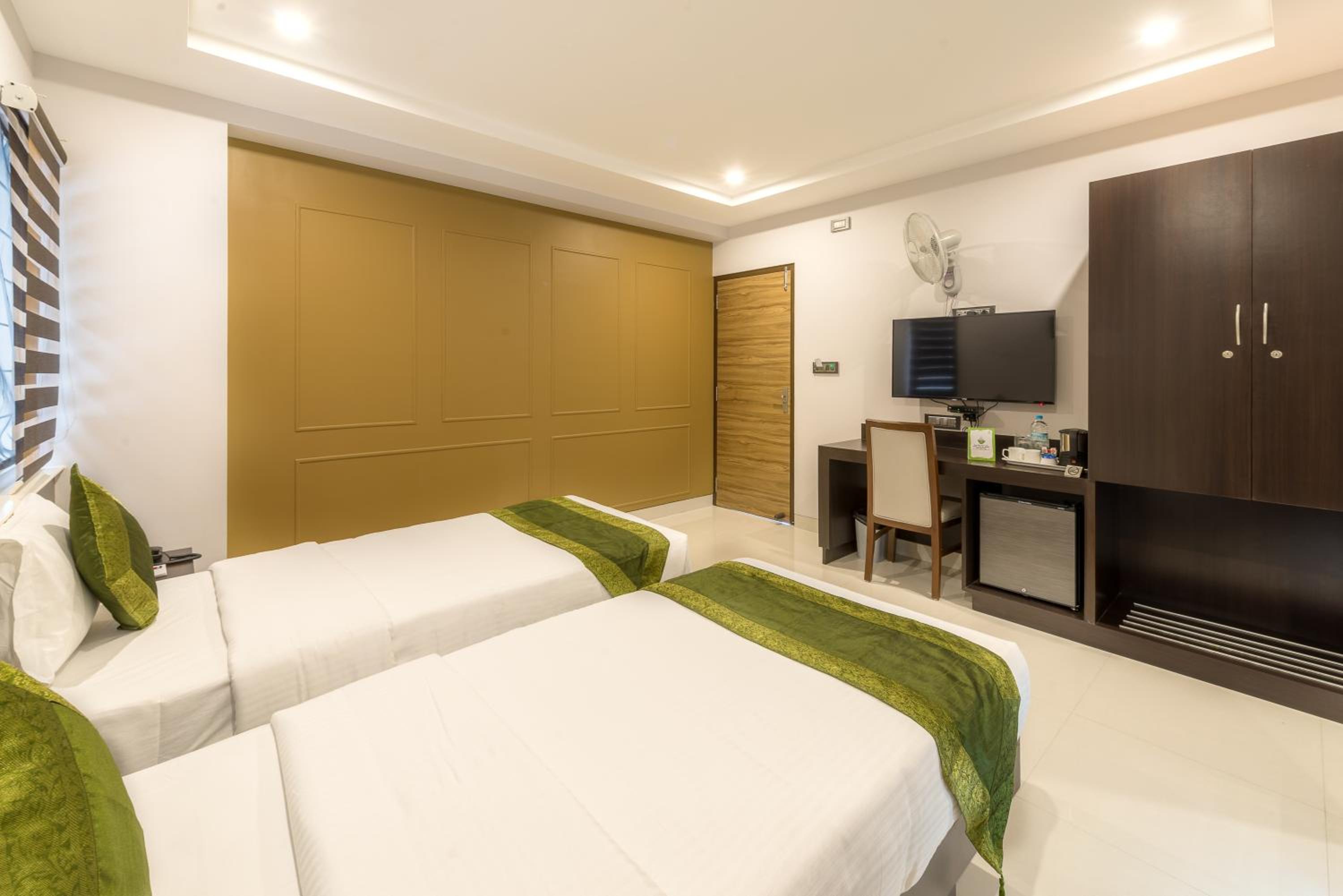 Experience modern comfort and convenience at Treebo Trend Raj Premier - Indiranagar. Relax in rooms with flat-screen TVs, cozy seating areas, and private bathrooms with complimentary bath robes and slippers. Indulge in our luxurious amenities including free WiFi, on-site restaurant, and complimentary private parking. Our 24-hour front desk is always available to assist you. Conveniently located just 5 km from Commercial Street and MG Road, our hotel offers easy access to popular attractions and shopping districts. Explore the city with bike hire services or opt for car hire to travel comfortably. Don't miss the chance to stay at our premier hotel for a memorable experience.