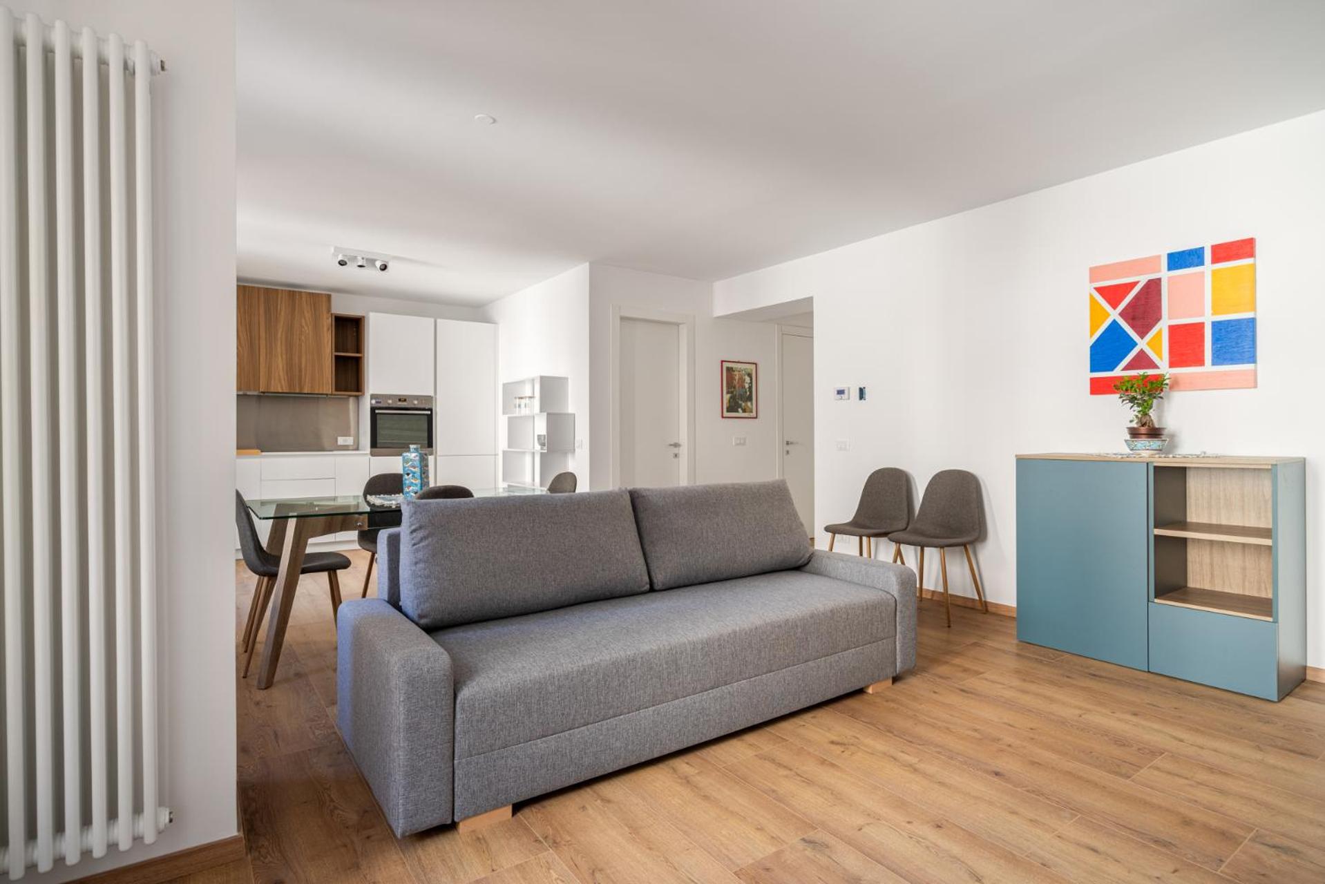 The kitchen is fully equipped with everything you need for cooking. There’s an espresso machine and you can buy coffee pods at the supermarket (LIDL) which is located about 400 meters from the apartment, on Via Roma.