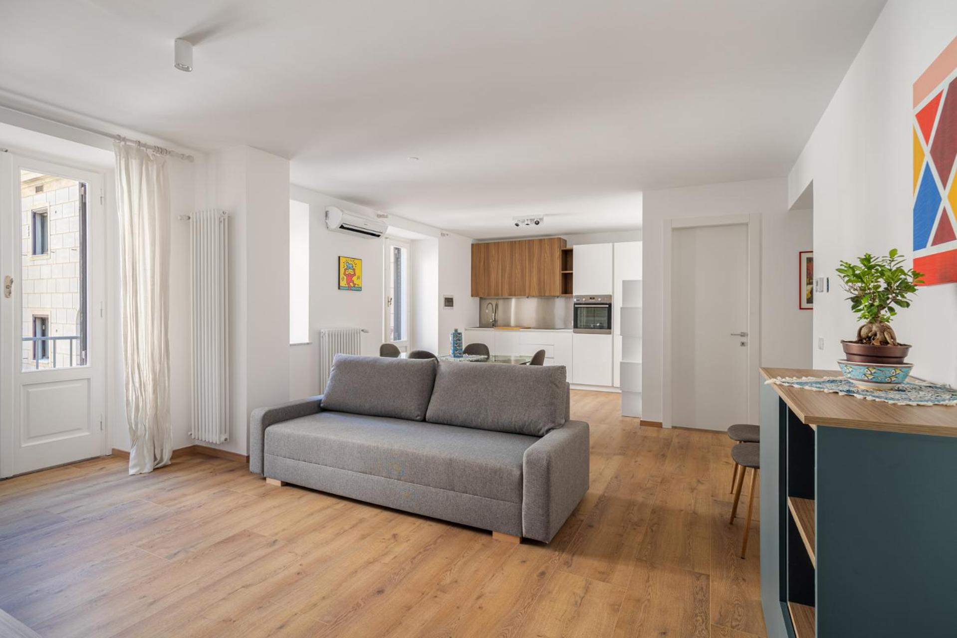 The only inconvenience would be that the street (Via Vittorio Emanuele) is packed with restaurants and cafes with tables outside on the sidewalk which means a lot of noise at night. I imagine during the high season it’s even worse than April. The bedroom windows face that way and there’s zero noise insulation because the windows are old style wood framed (huge beautiful windows, floor to ceiling but not sound proofed). The living room windows face an inner courtyard which means you hear the street noise less than in the bedroom.