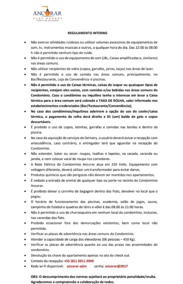 Dono do flat bastante atencioso. Ótima estrutura do Ancorar