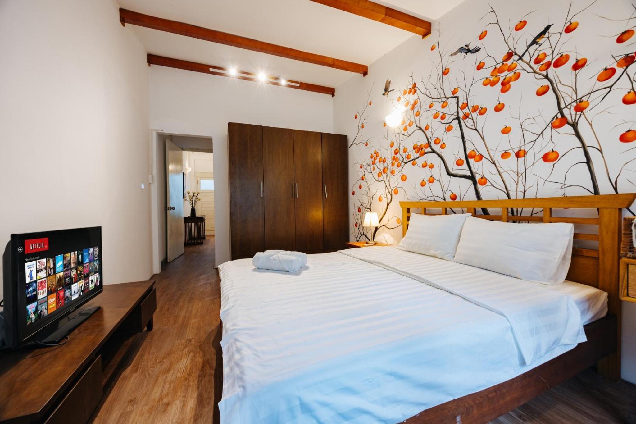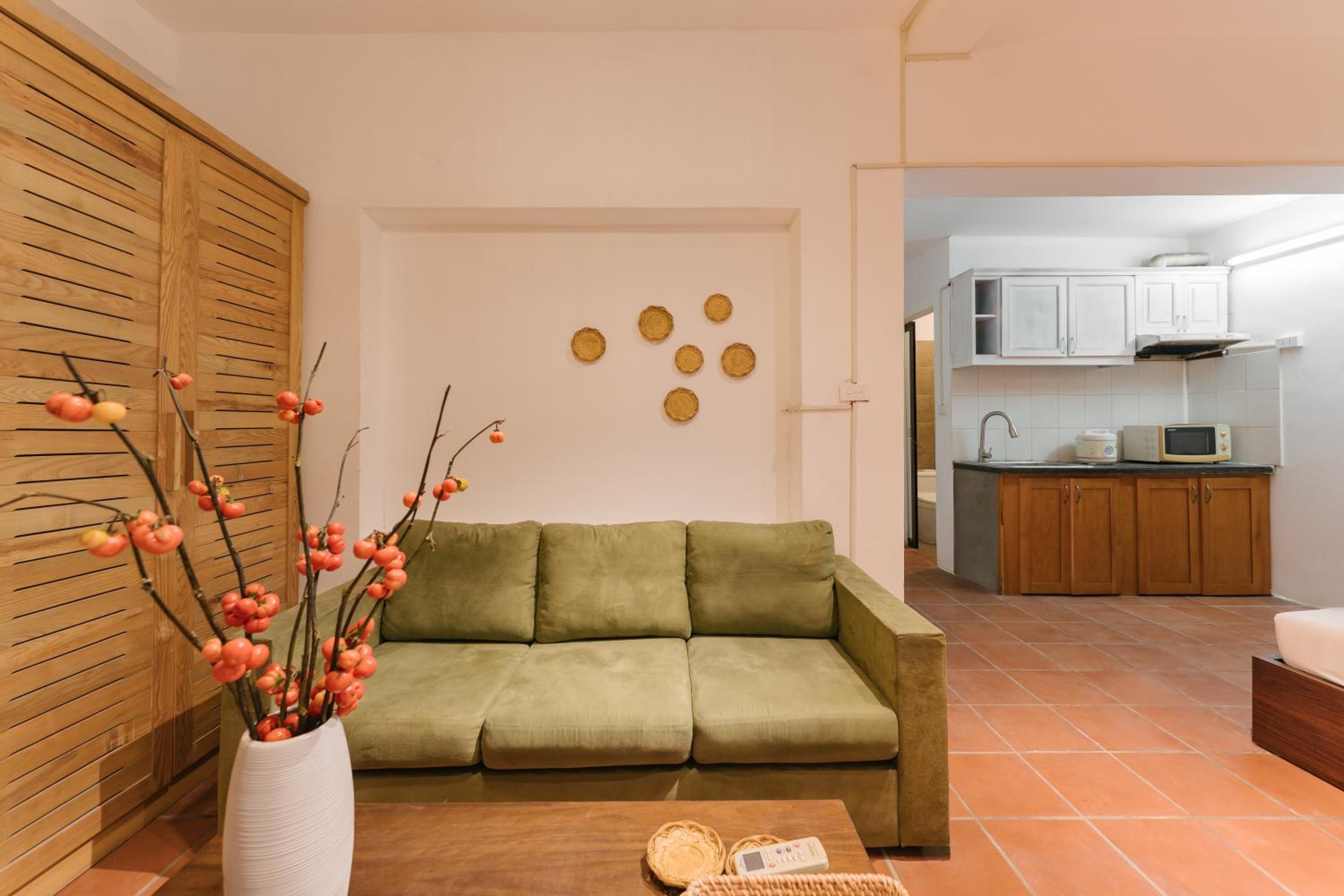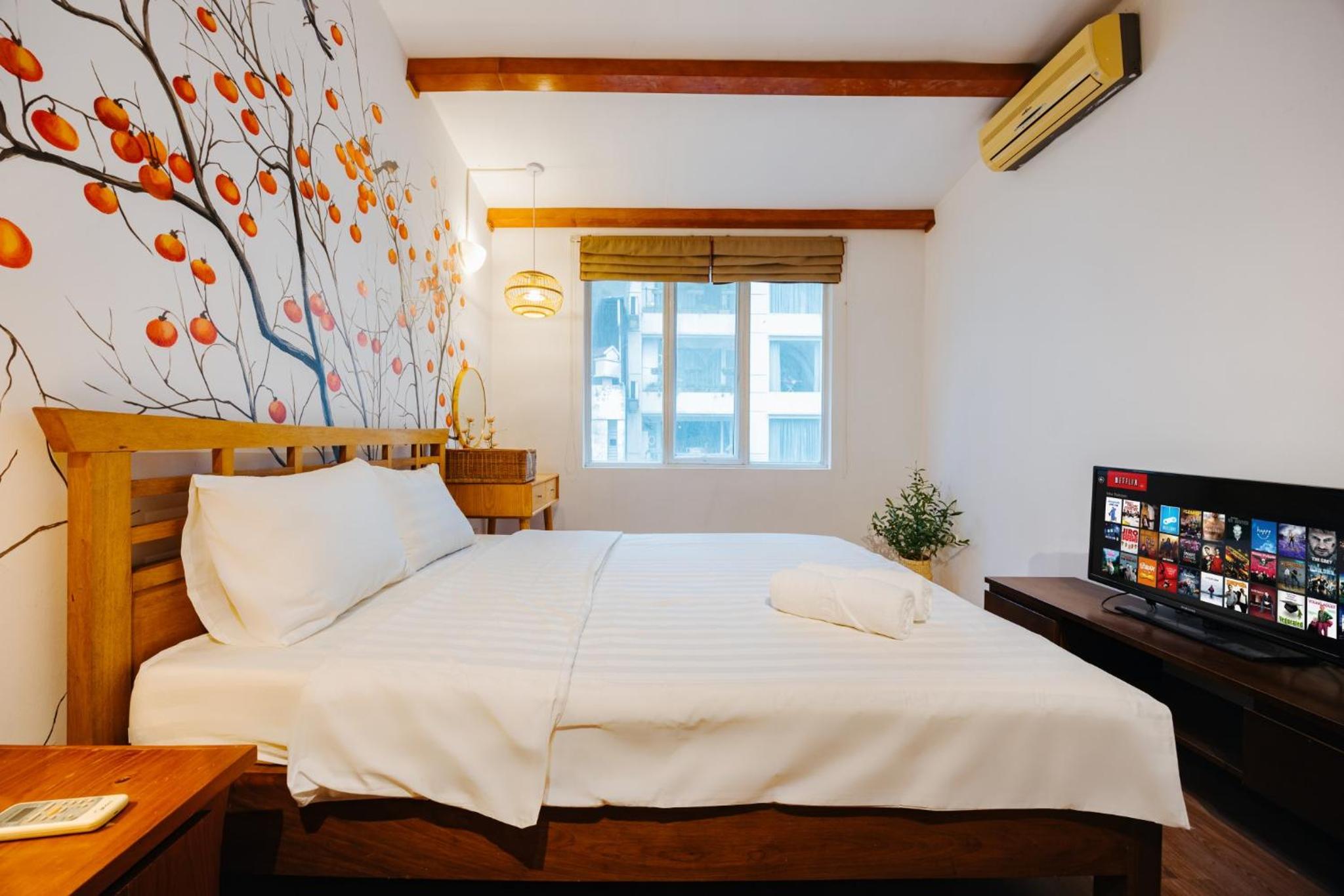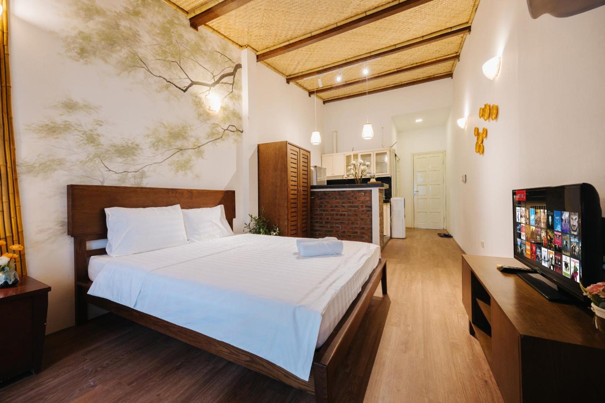 Modern Amenities & Services - Enjoy the convenience of air conditioning, fully equipped kitchen, flat-screen TV, and free WiFi during your stay.