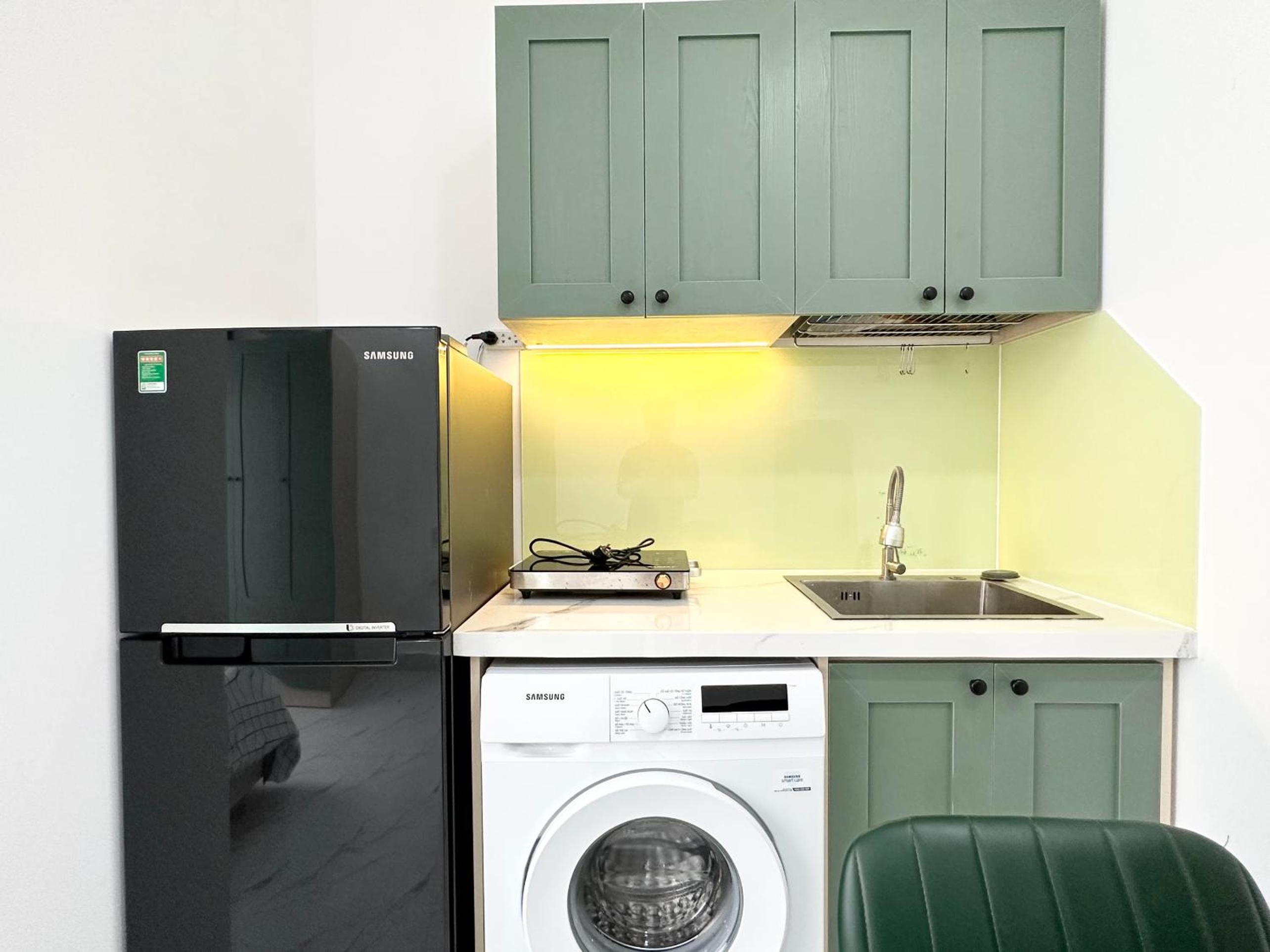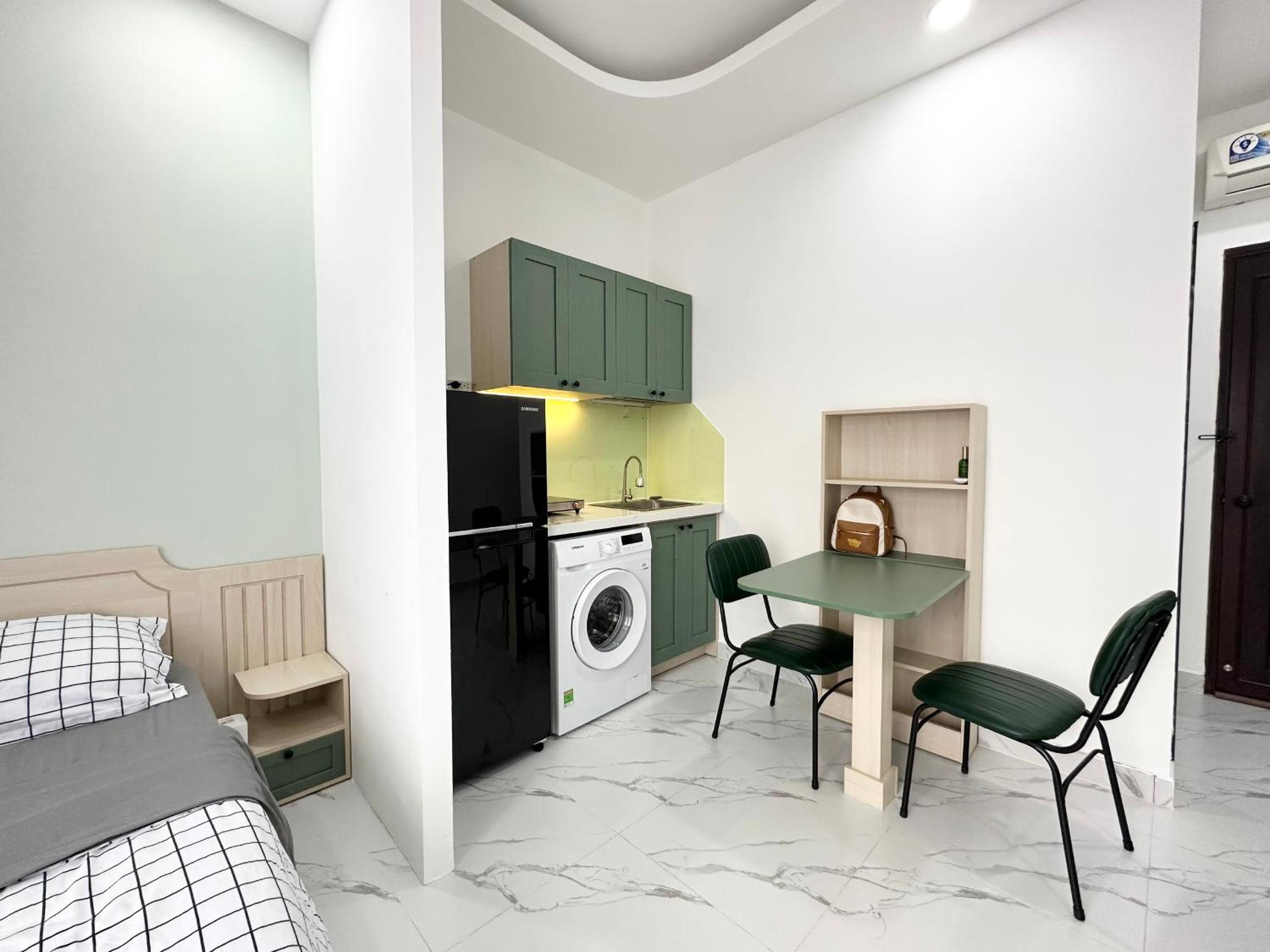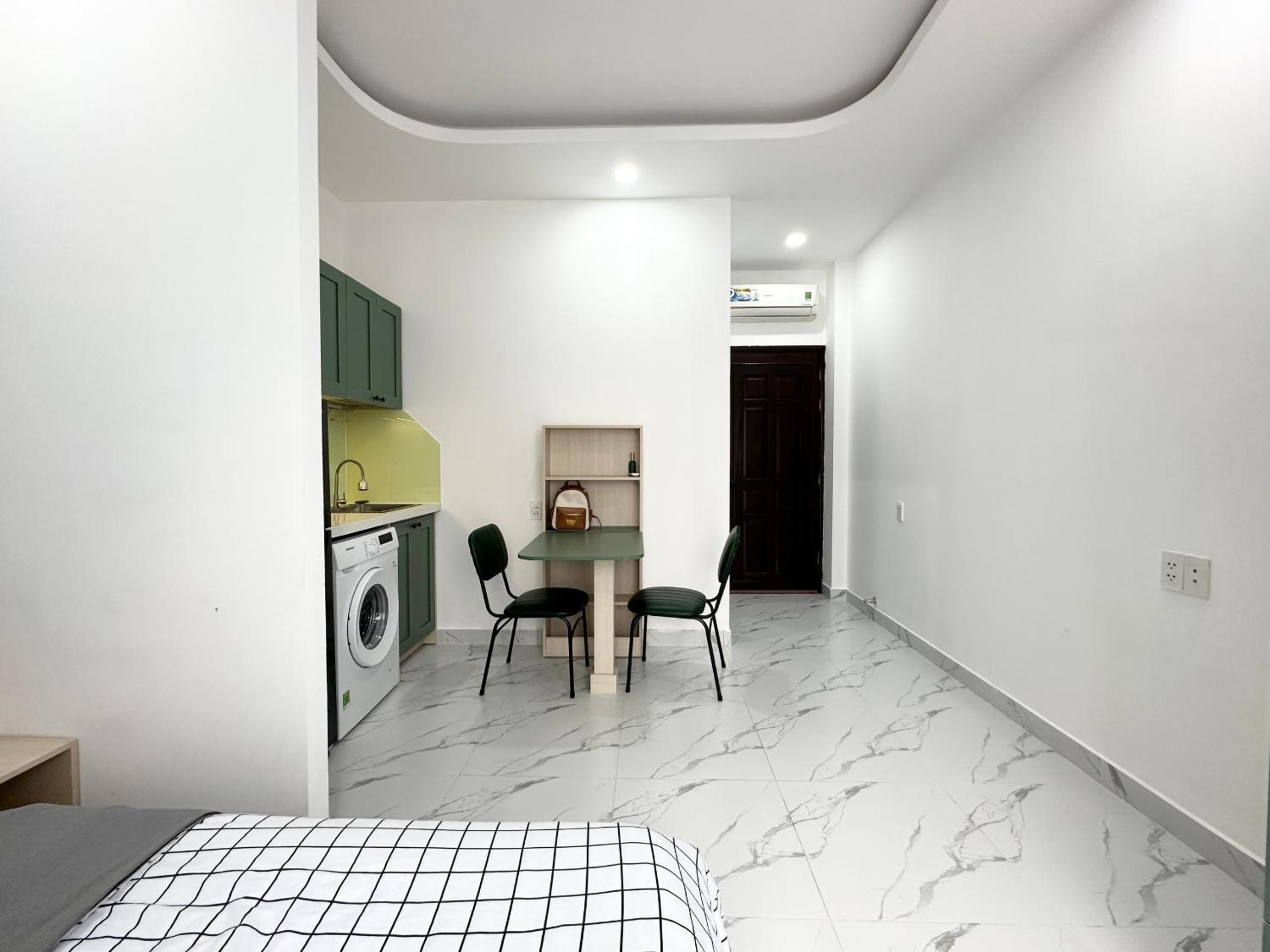 Has even washing machine, close to shopping center and to all the awesome 24/7 coffee.