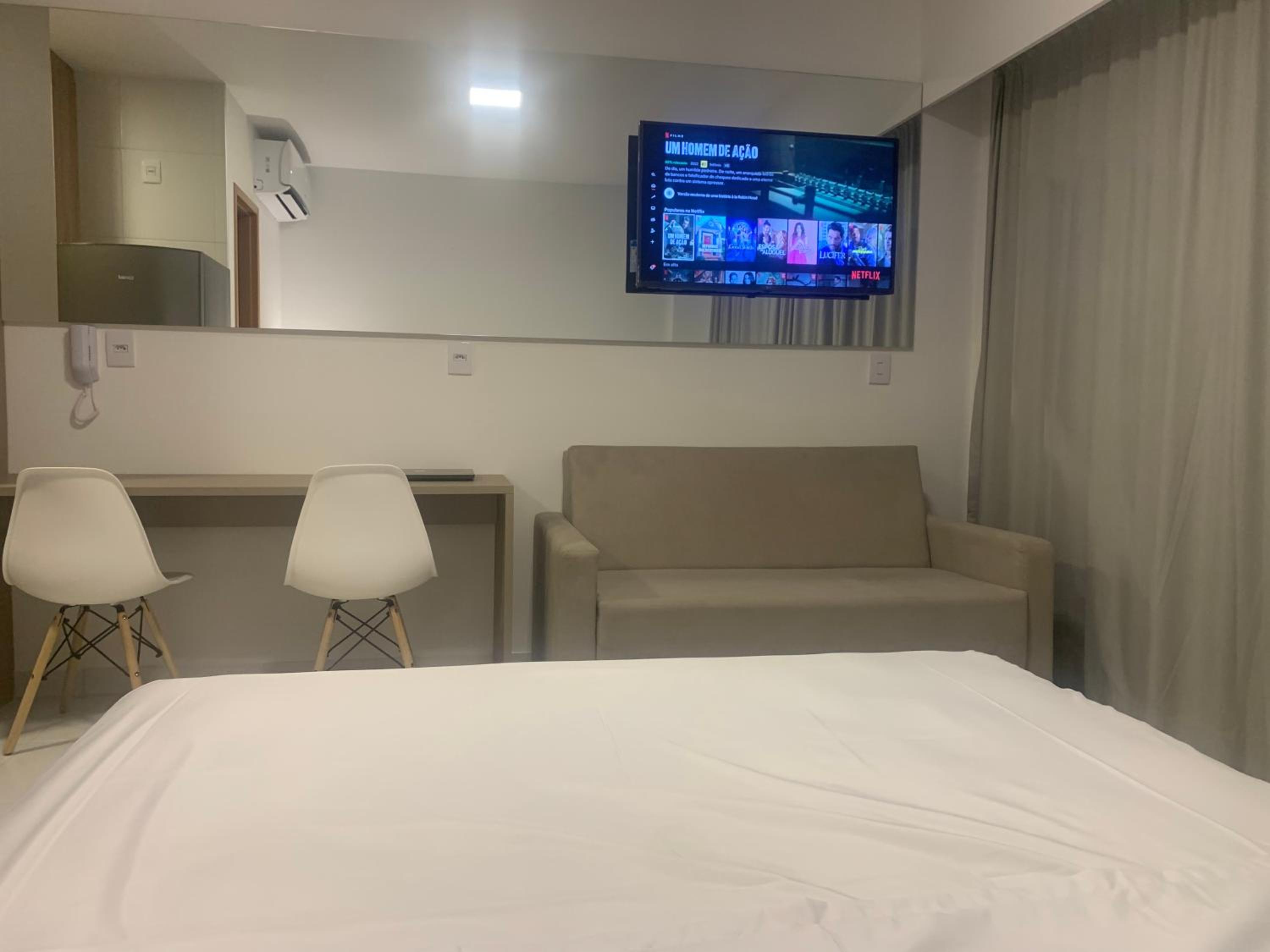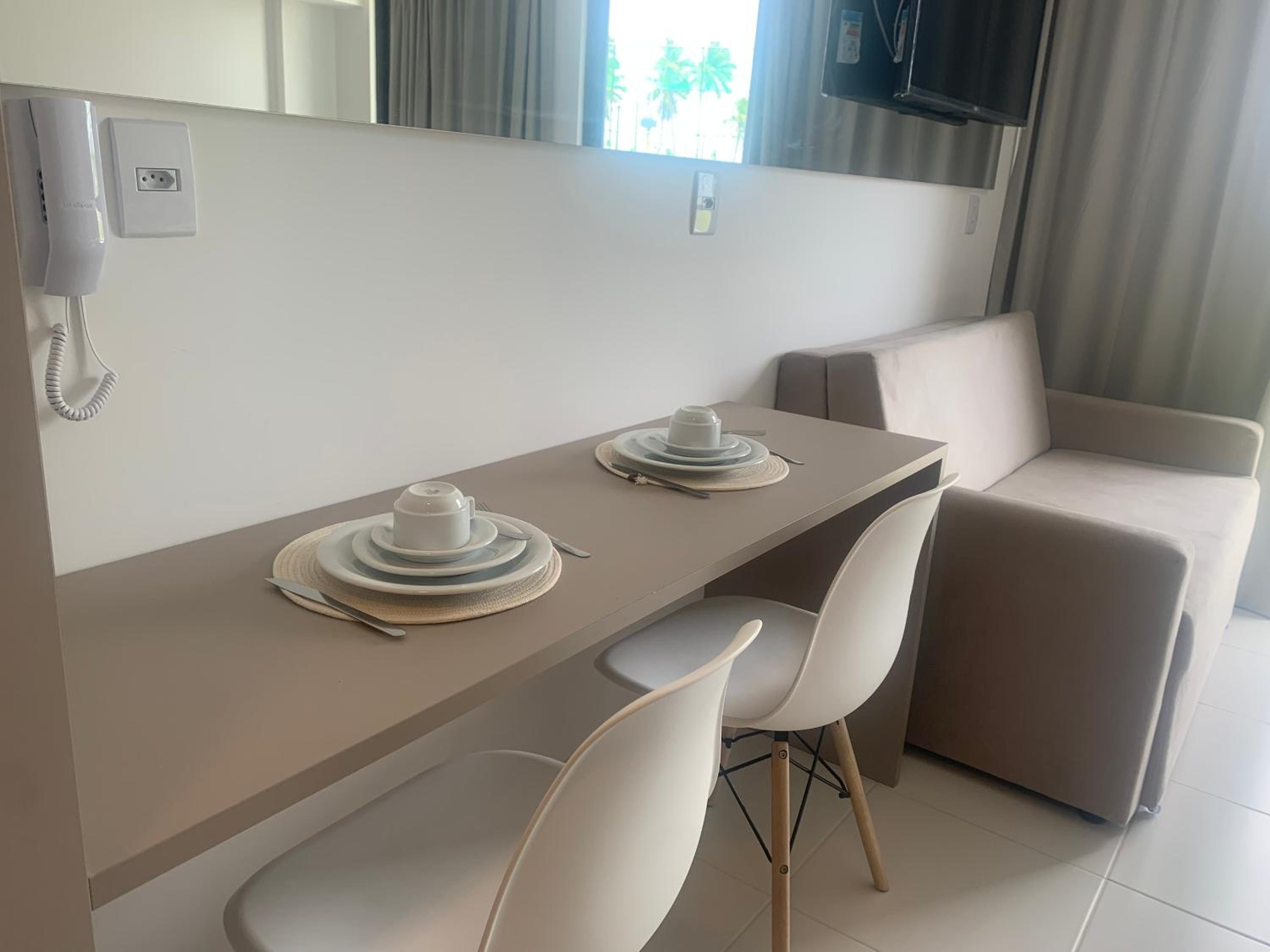 A experiência do flat superou nossa expectativa! Tudo muito limpo, organizado, utensílios de cozinha novos, ar condicionado em perfeito estado que esfriava o dormitório em segundos. Sobre o condomínio, piscinas amplas, limpas diariamente pela manhã, os jardins muito bem cuidados, plantas regadas com sistema de tempo em tempo, trazendo um visual belo de paz e tranquilidade para cada hóspede. Meu filho se divertiu muito com as atividades oferecidas. Academia de qualidade, café da manhã com muitas variedades, além de poder ir a pé para praia diariamente.