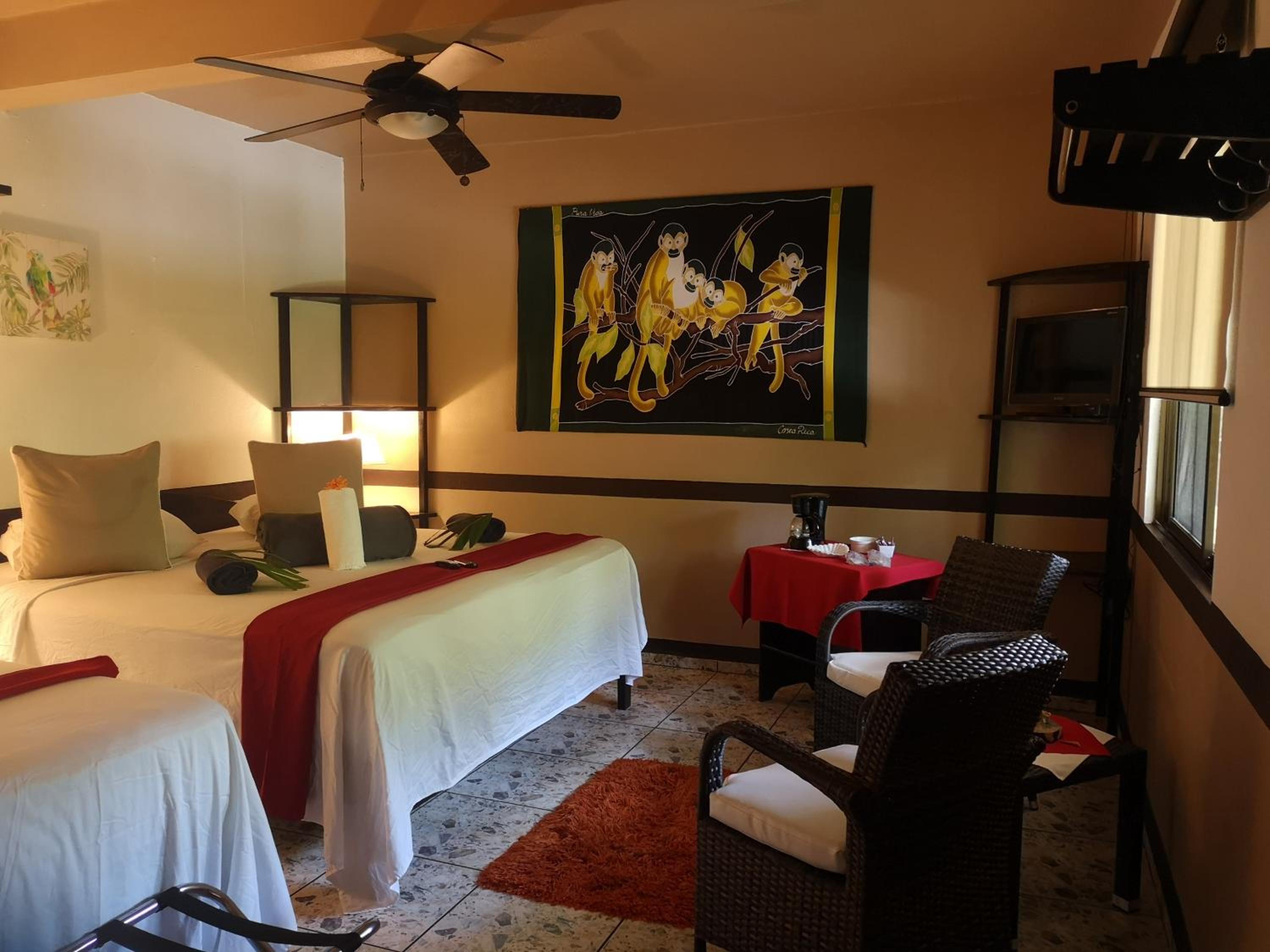 Hotel Belvedere Playa Samara Costa Rica offers a luxurious stay with air-conditioned rooms equipped with modern amenities like free WiFi, cable TV, and a safety deposit box. Relax on the terrace with pool views and enjoy the convenience of a fridge and work desk in your room.