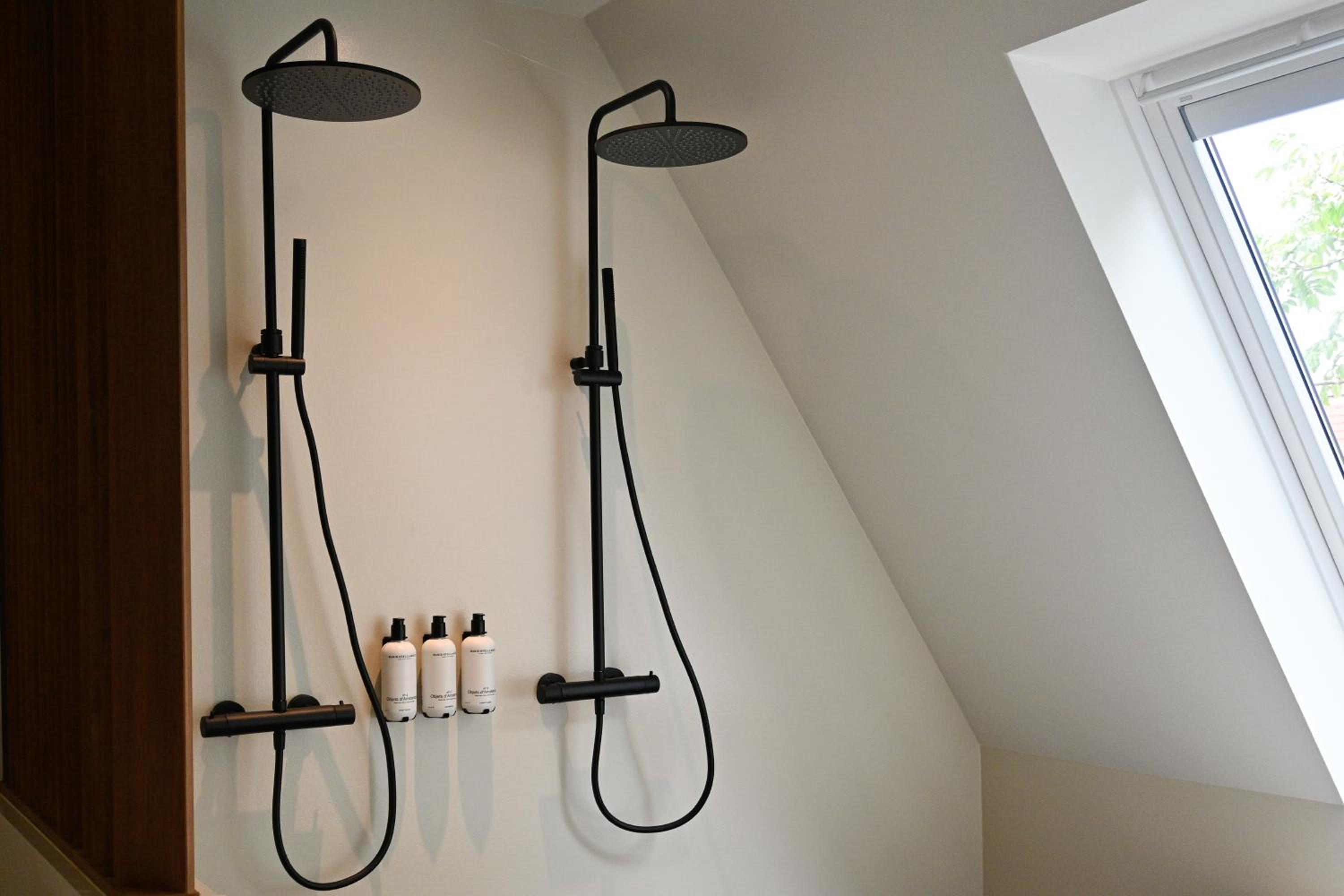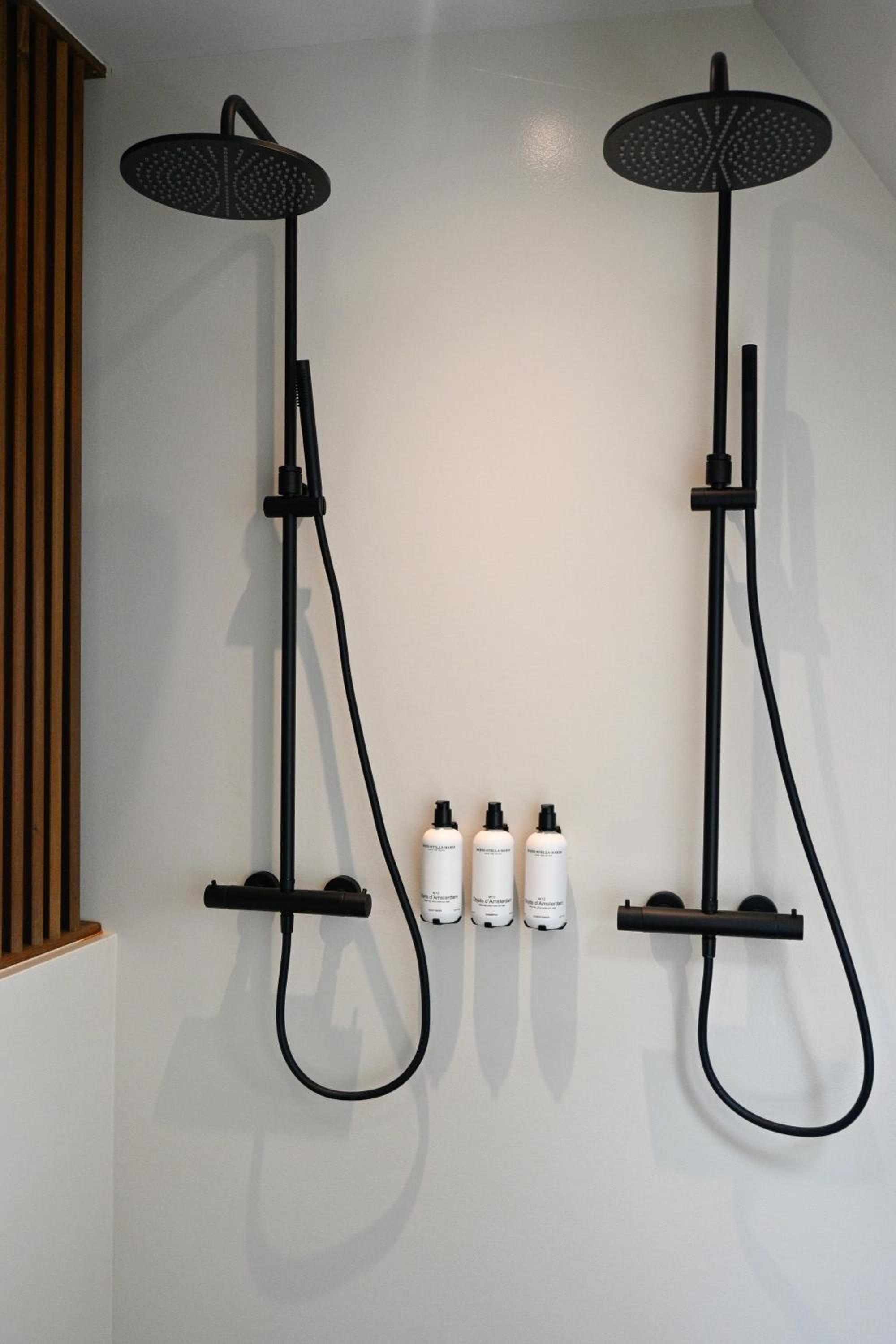 Douchegelegenheid had met scherm kunnen worden afgeschermd ,nu was alles "open".