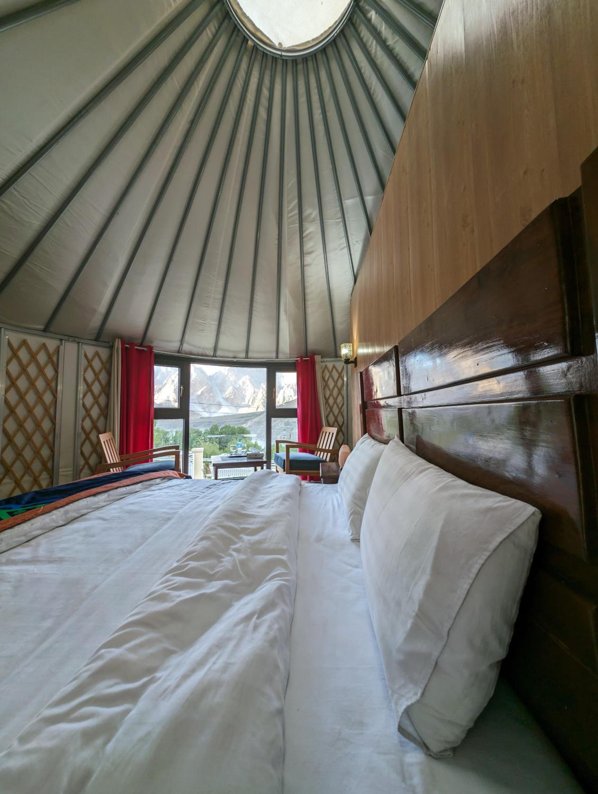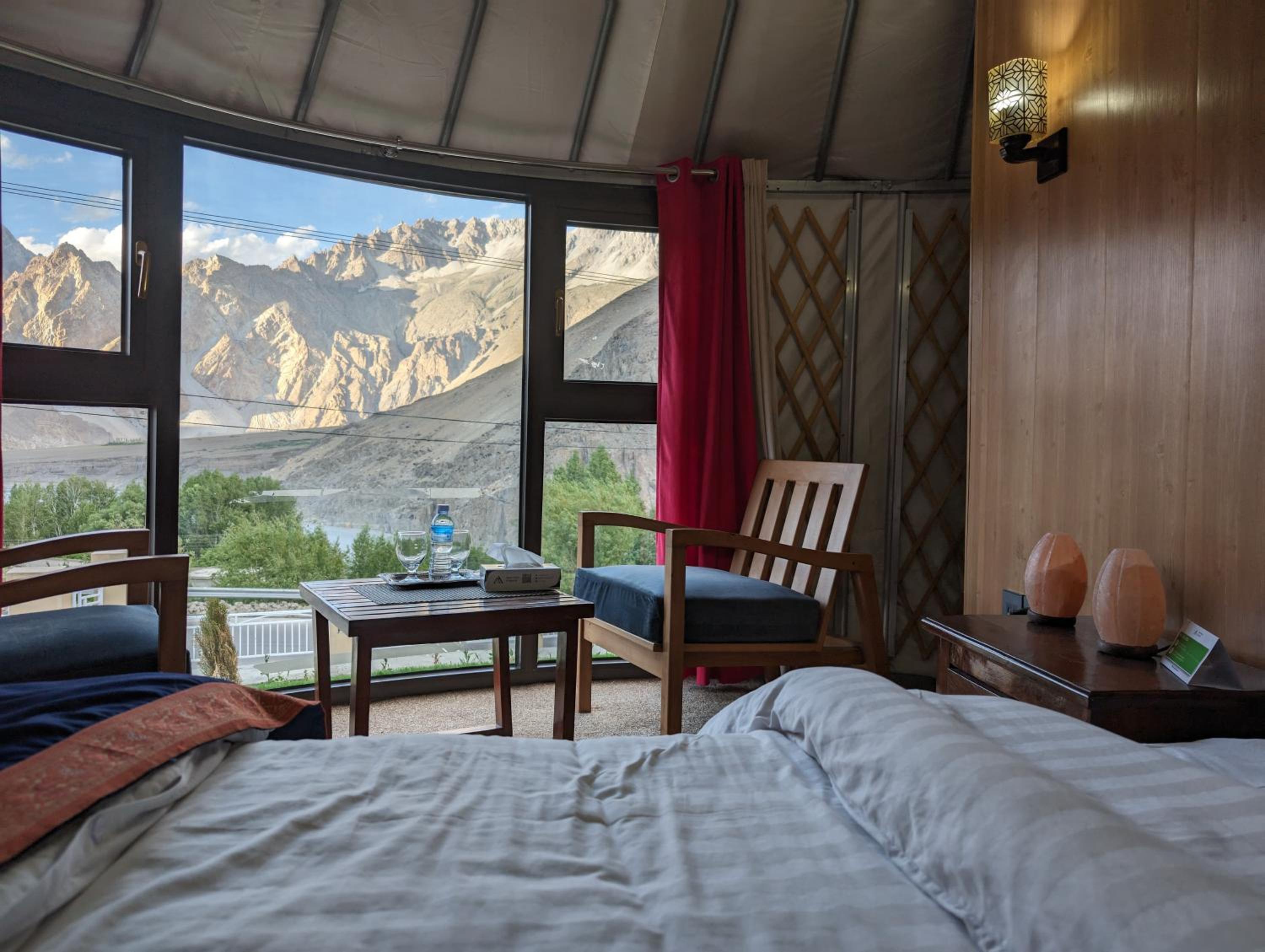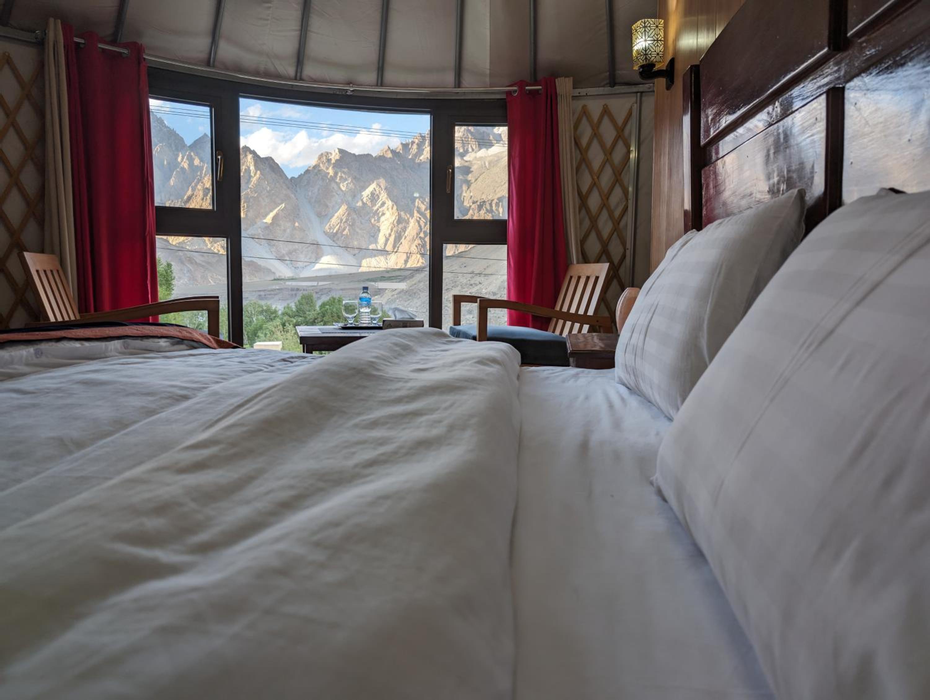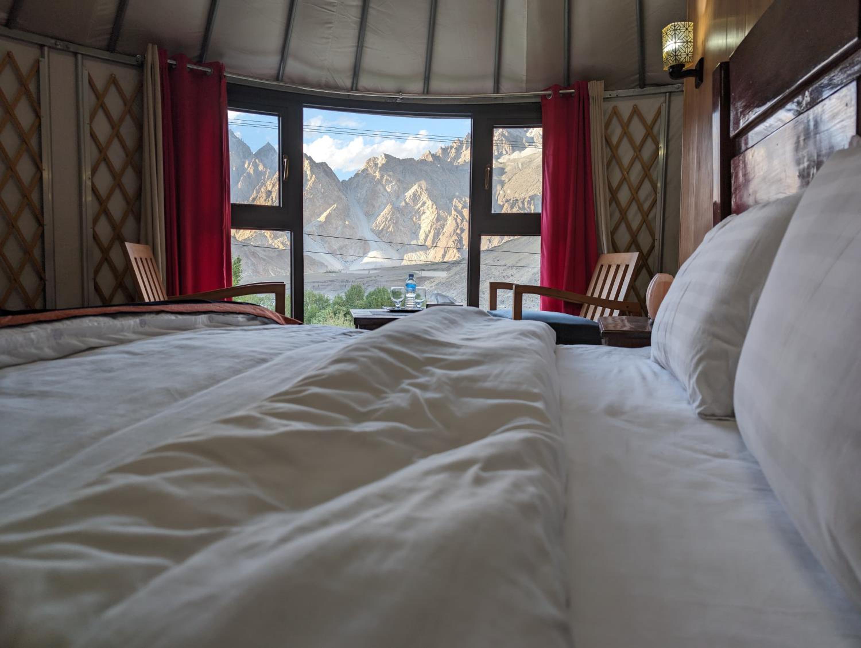 The view from our yurt's window was breathtaking, with the majestic Passu Cones creating a stunning backdrop. It was a perfect blend of traditional charm and modern comfort.