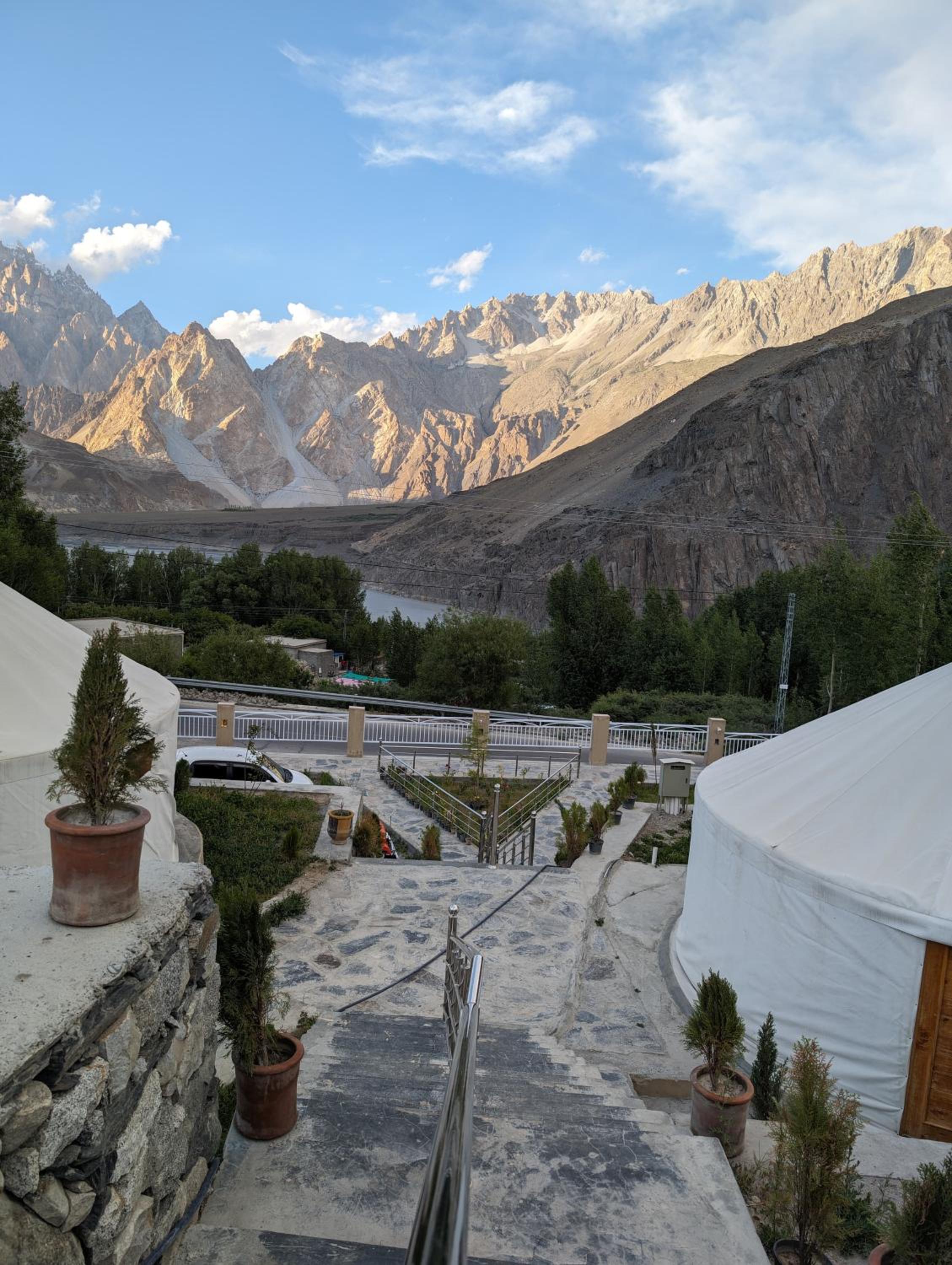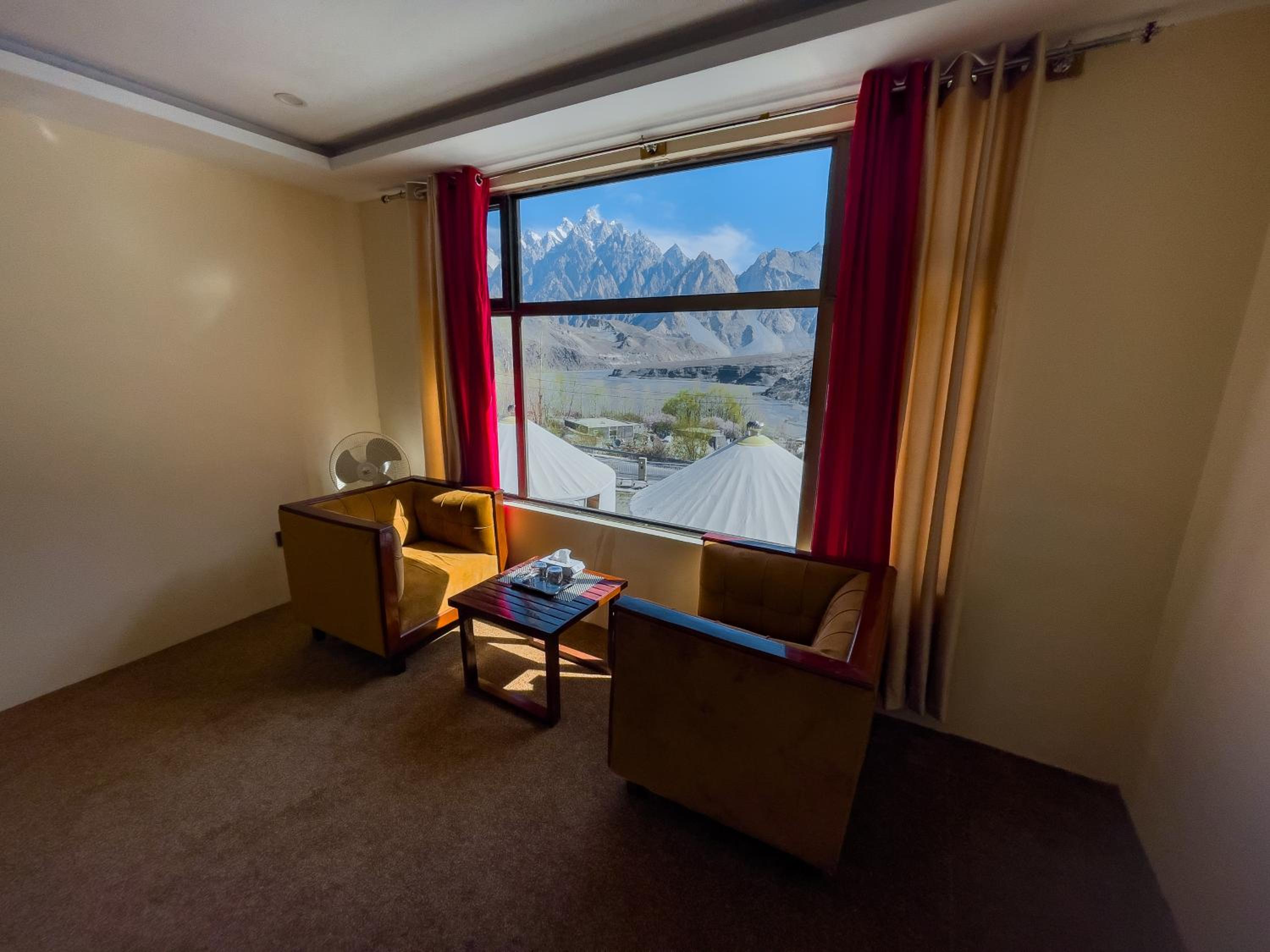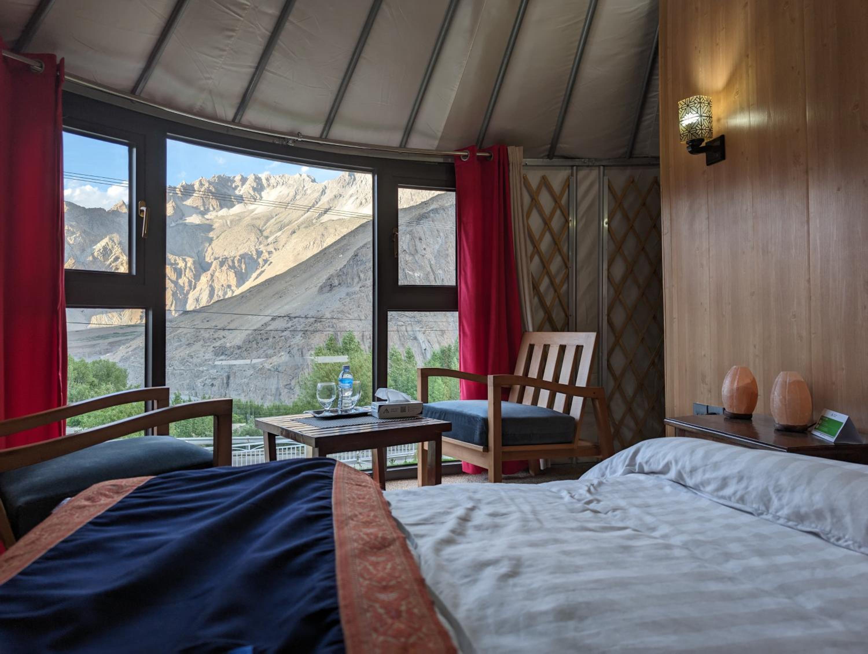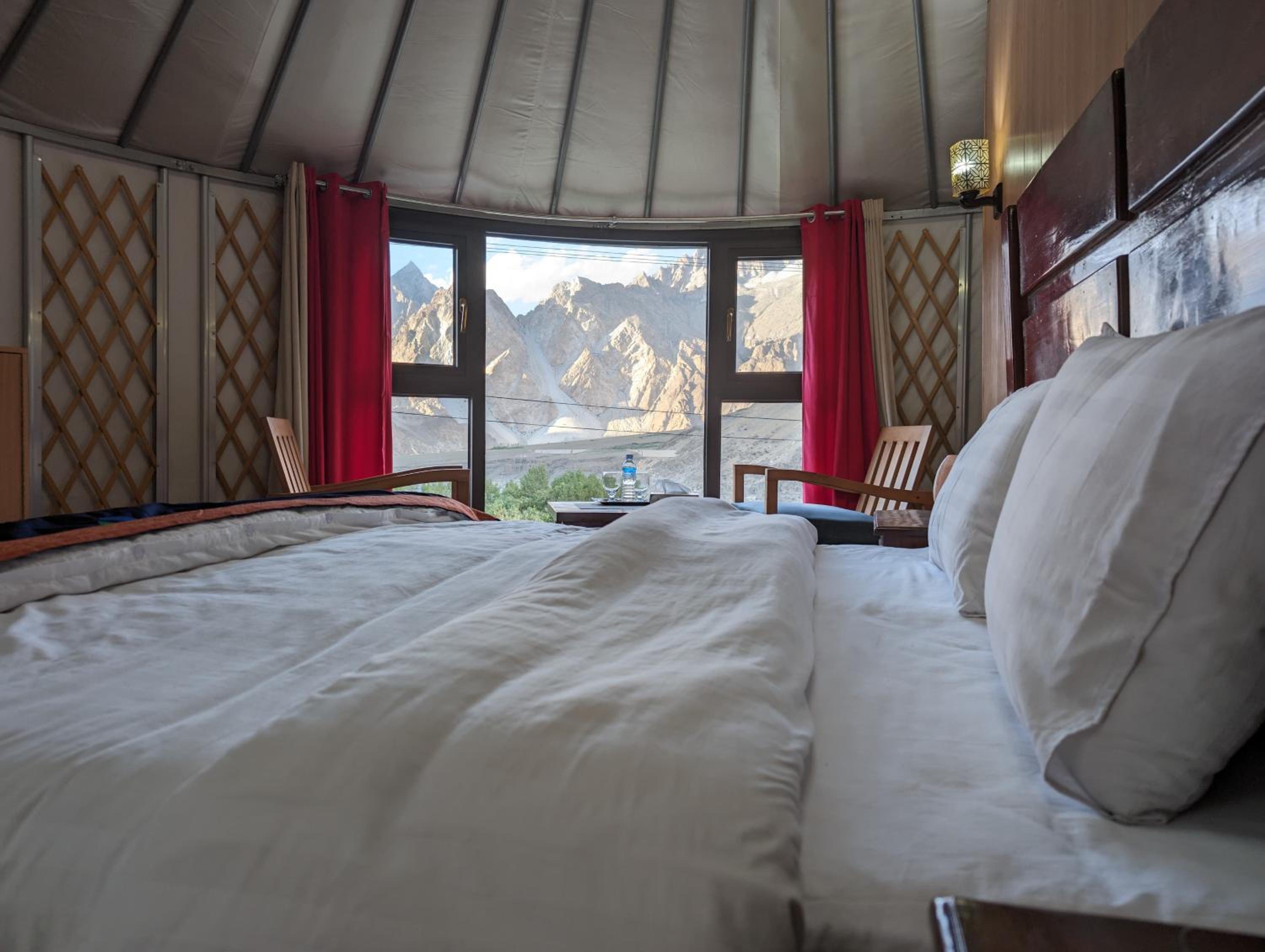 The view from our yurt's window was breathtaking, with the majestic Passu Cones creating a stunning backdrop. It was a perfect blend of traditional charm and modern comfort.